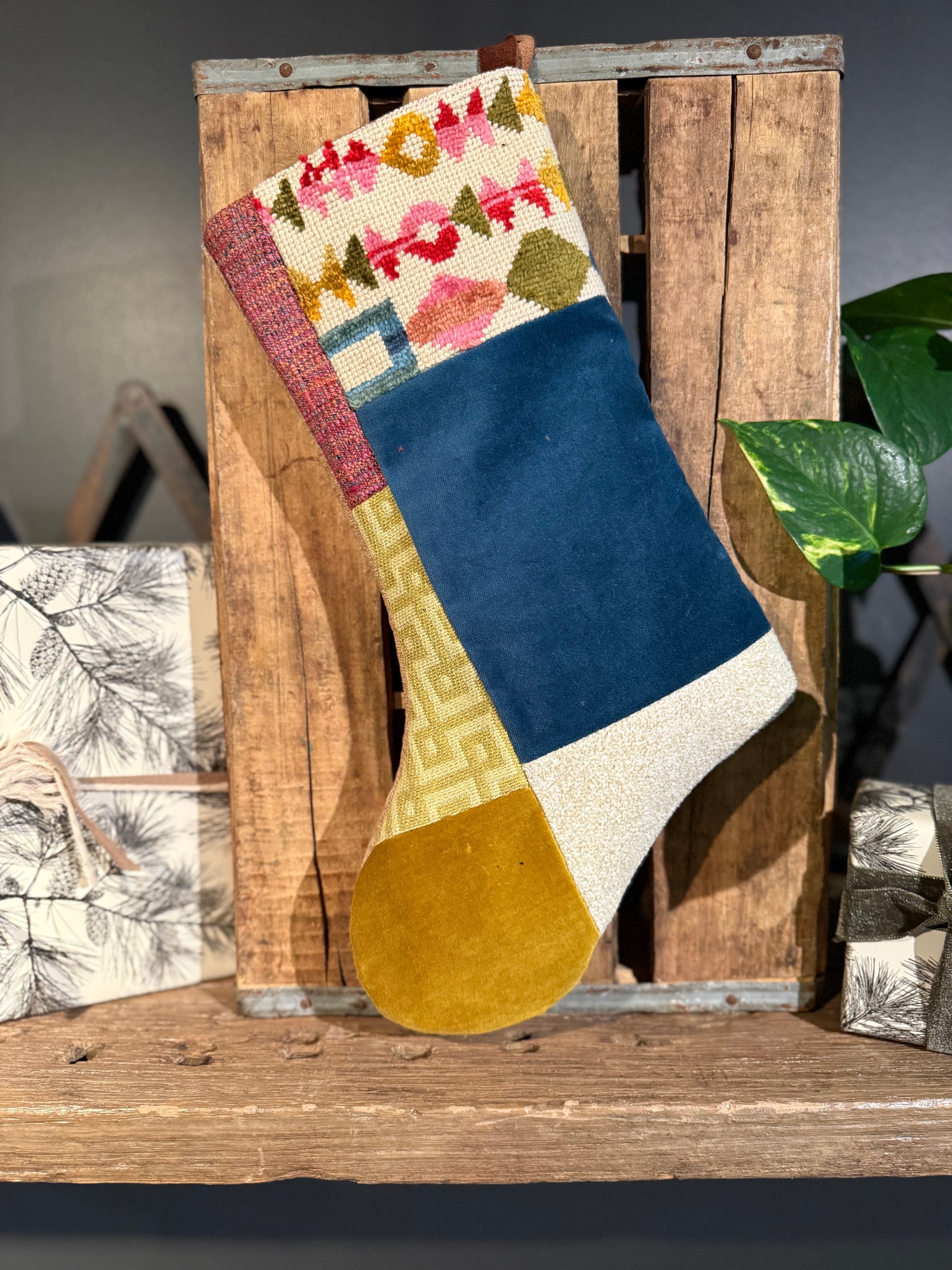 Get in the holiday spirit with our Holiday Stockings! Made with upcycled fabric remnants, each stocking is unique and environmentally friendly. The patched design adds a touch of whimsy, while the leather hook (upcycled from scraps) adds a rustic charm. Don't settle for ordinary this year, our stockings will make a perfect one-of-a-kind gift!