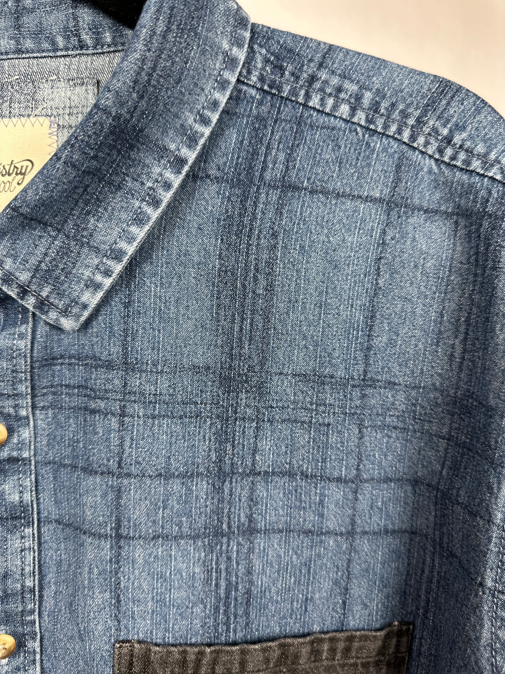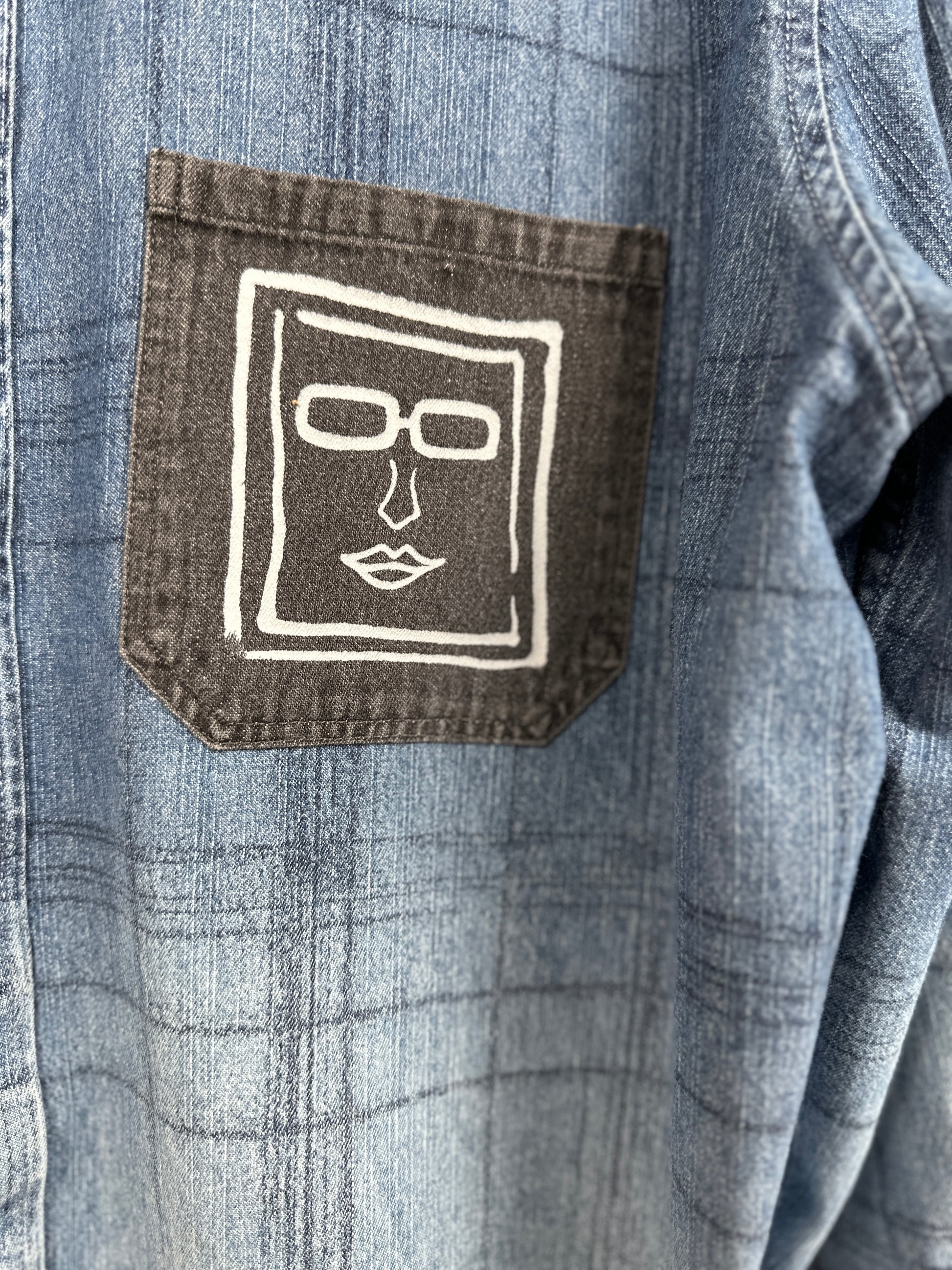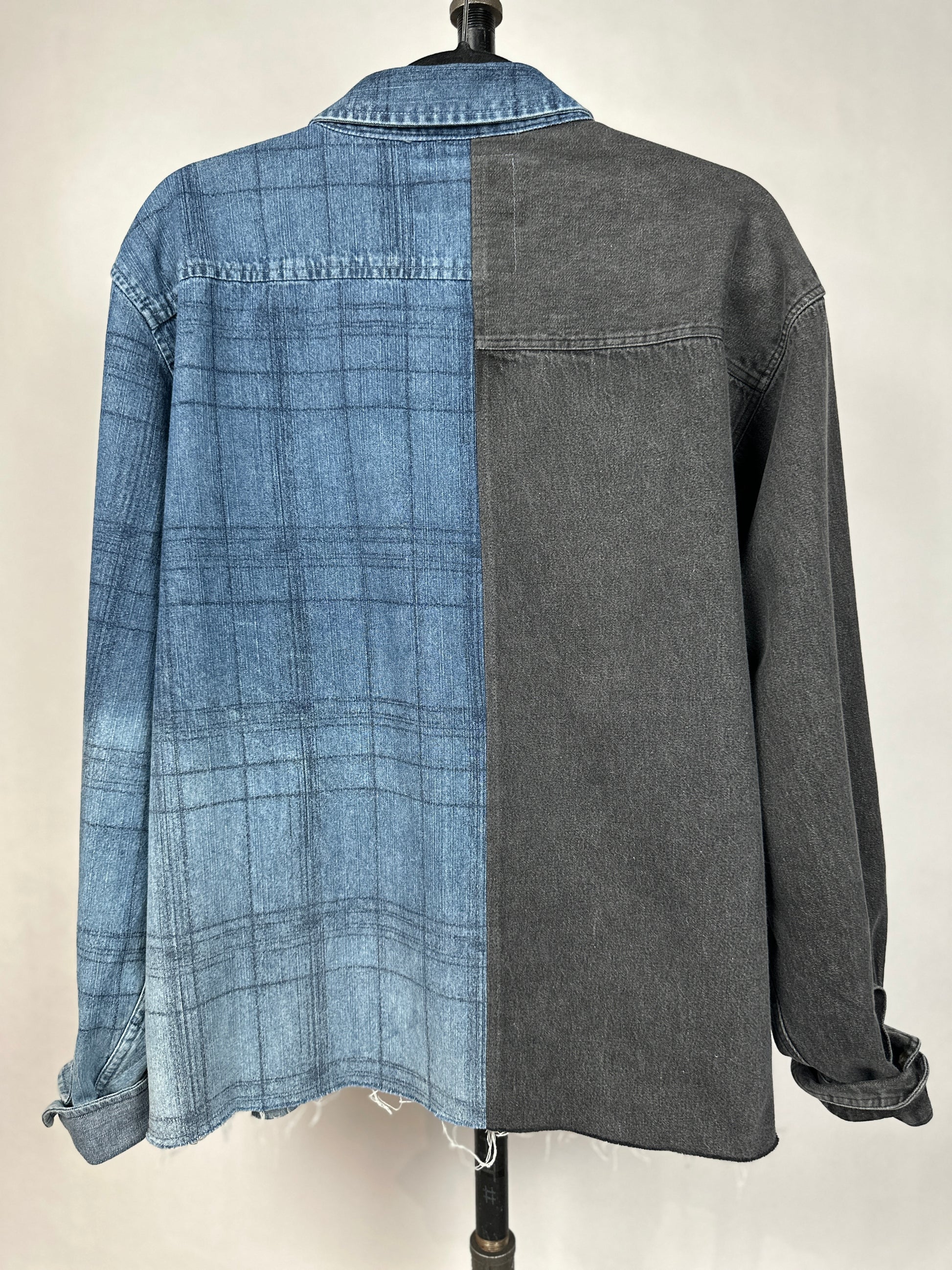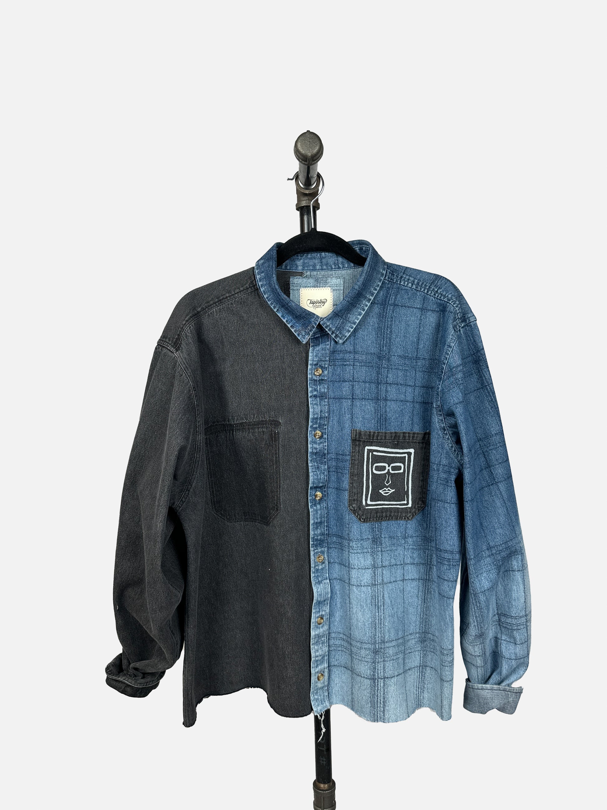 Introducing The Billie, the perfect shirt for those with a playful edge. Made from upcycled denim, this shirt features a unique half-and-half design and a one-of-a-kind pocket. Stay effortlessly stylish and environmentally-conscious with this quirky must-have.