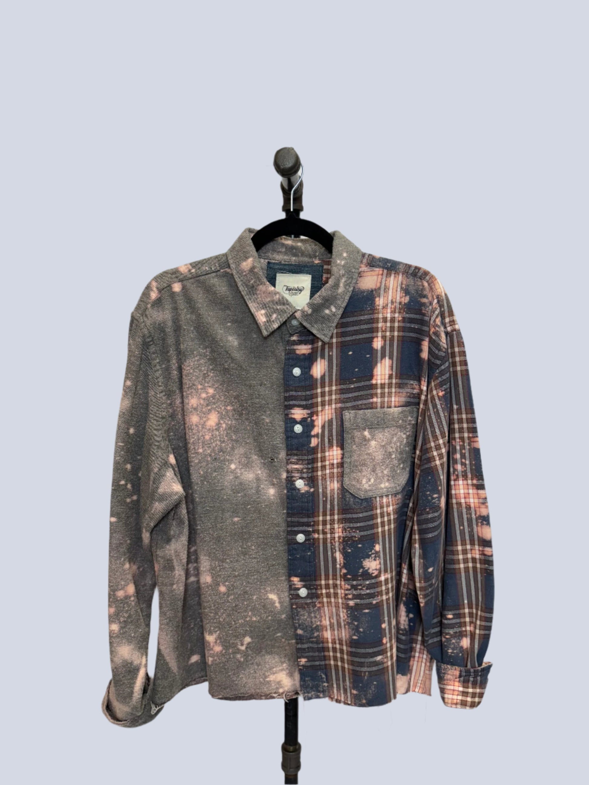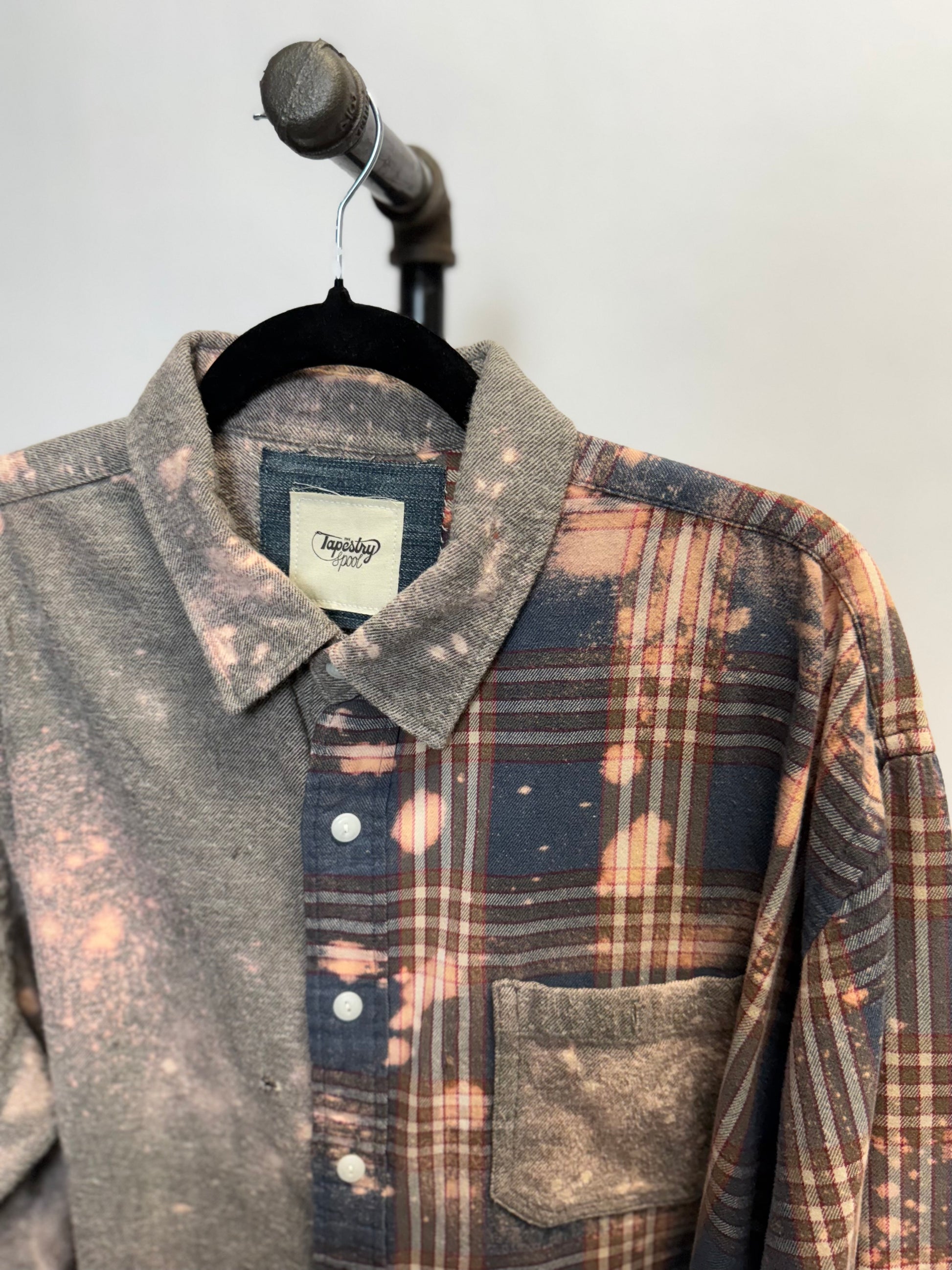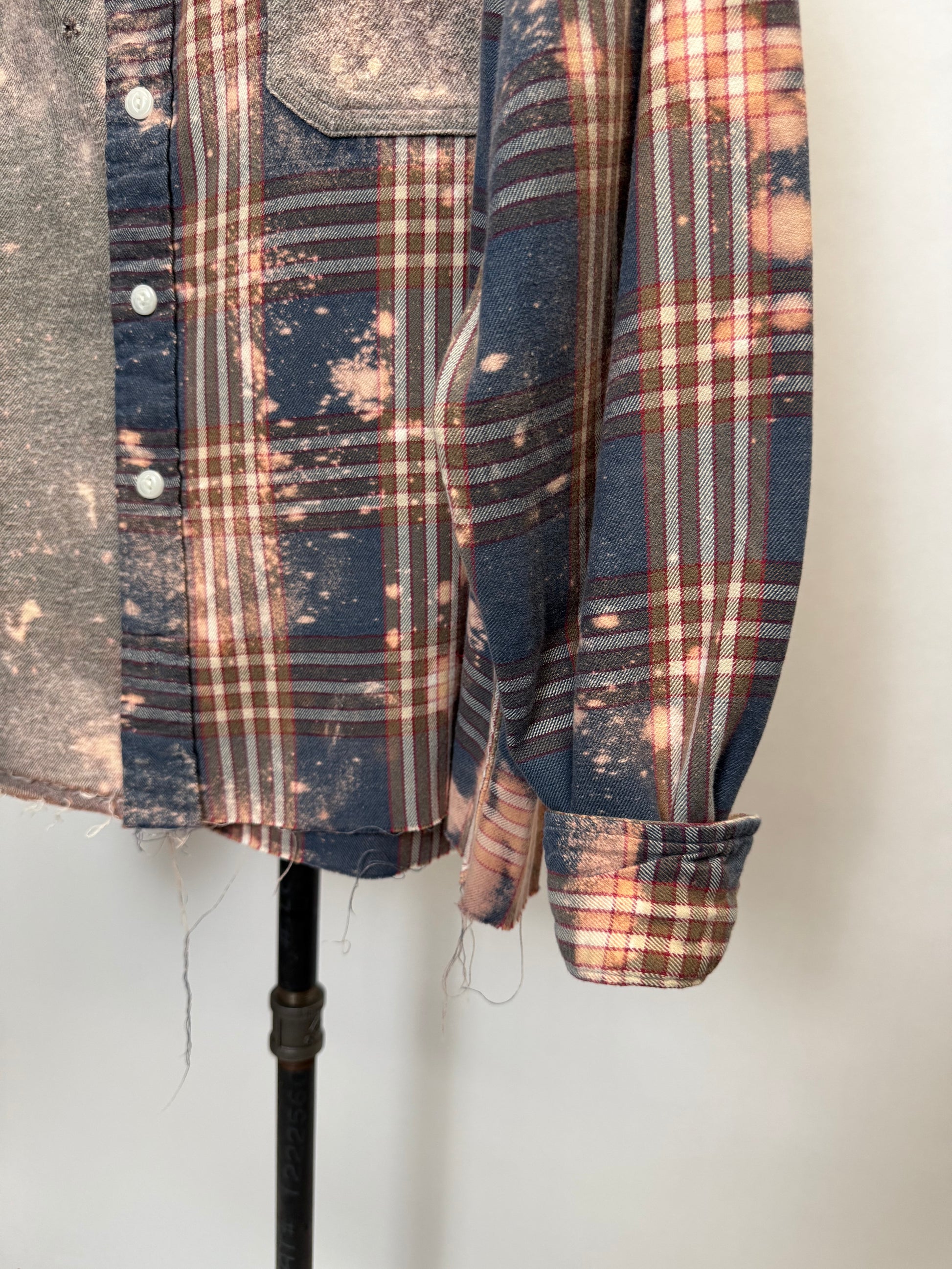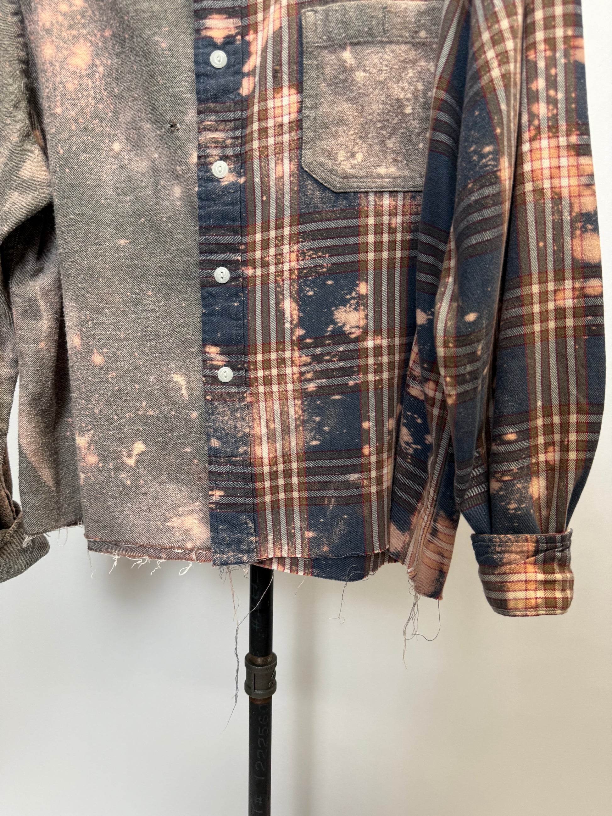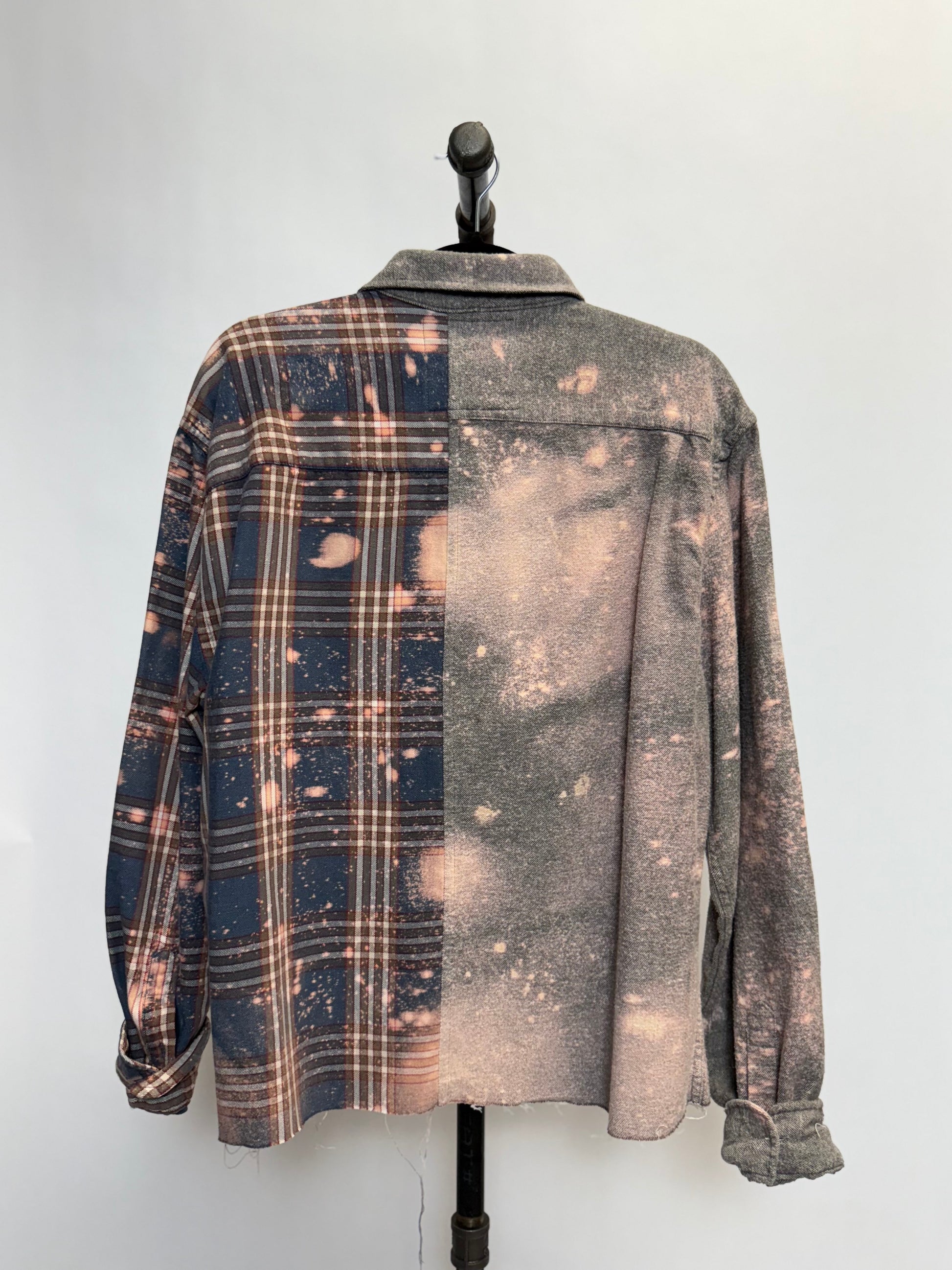 Introducing The Bennett - the ultimate in eco-friendly fashion! Made from upcycled flannel shirts, 1/2 solid and 1/2 plaid, both super soft and have that worn in feeling. Added bleach details make this one even more unique. Oversized and comfy, sure to be a favorite in your closet!