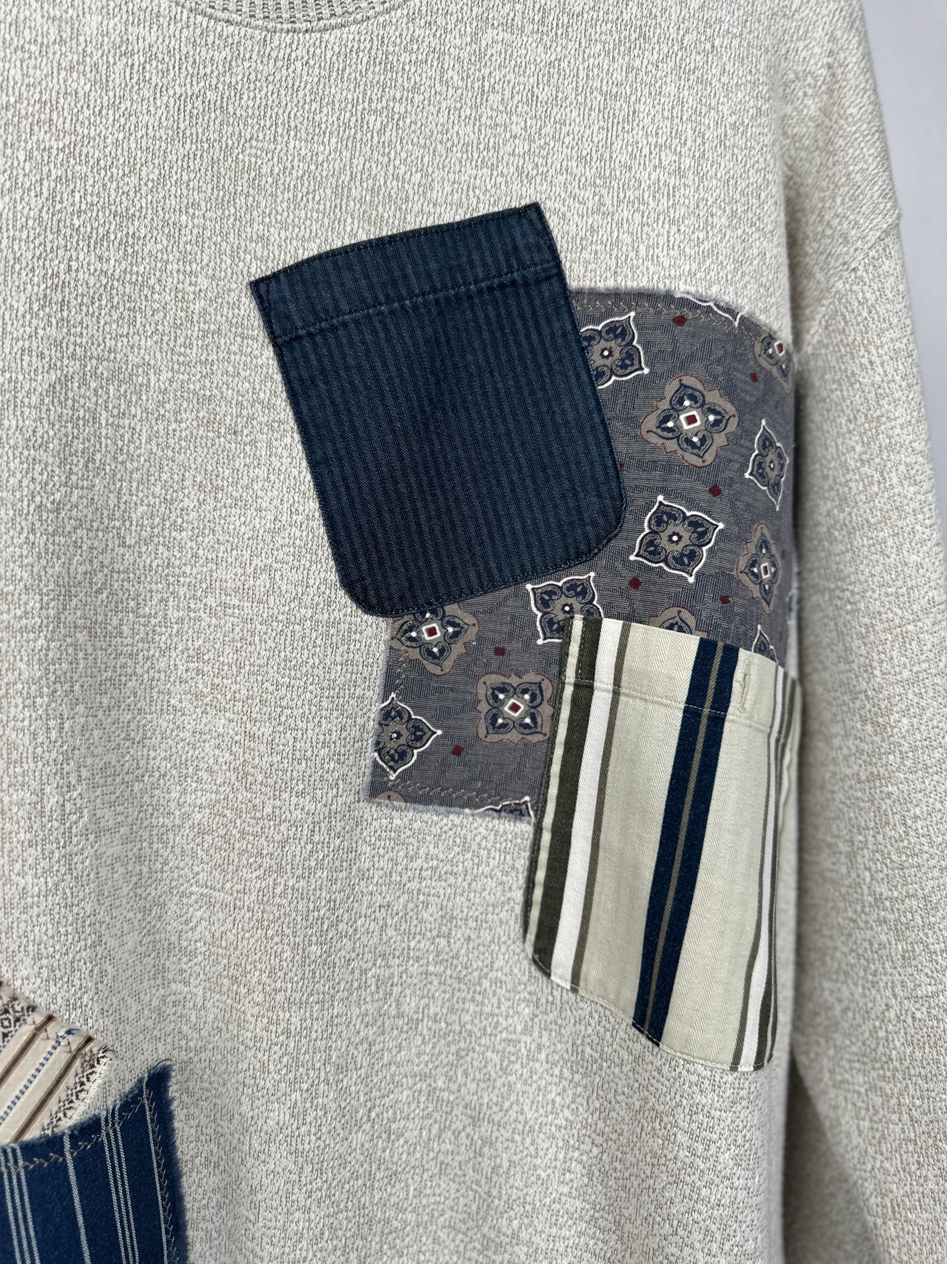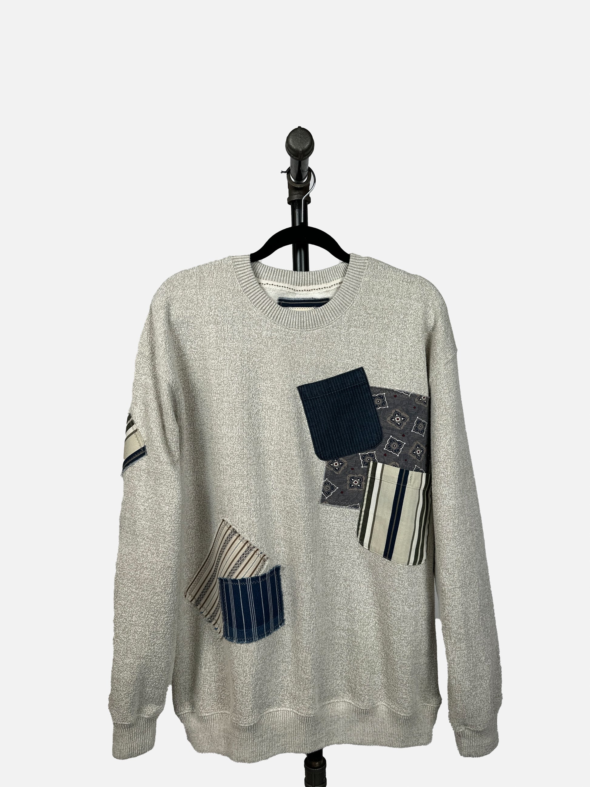 The Brynn is the perfect combination of style and comfort. This upcycled crewneck sweatshirt features a unique contrasting fabric and pocket design, along with a sweater-like look but is actually a sweatshirt! Stay cozy and stylish in this super soft knit fabric piece.