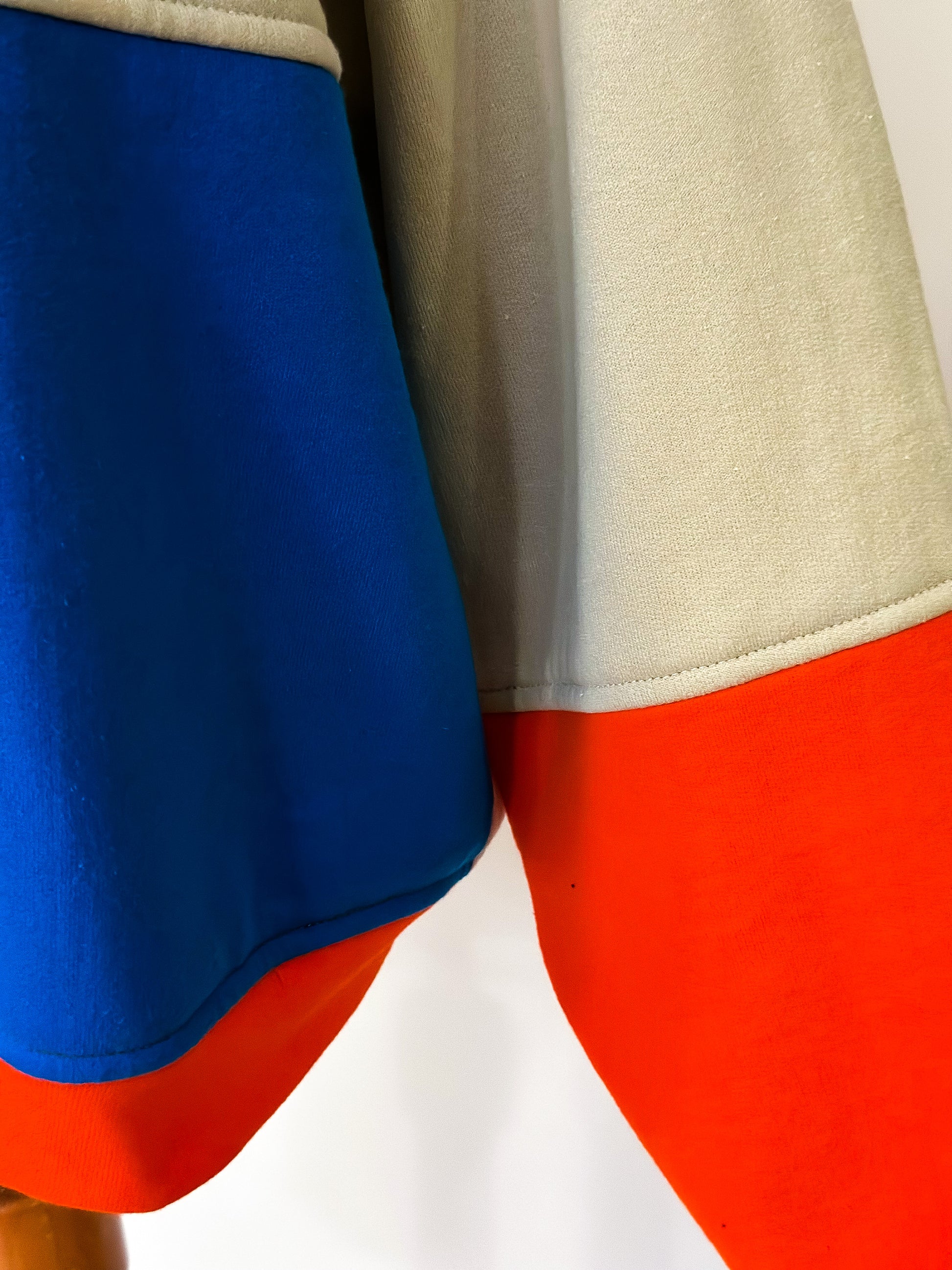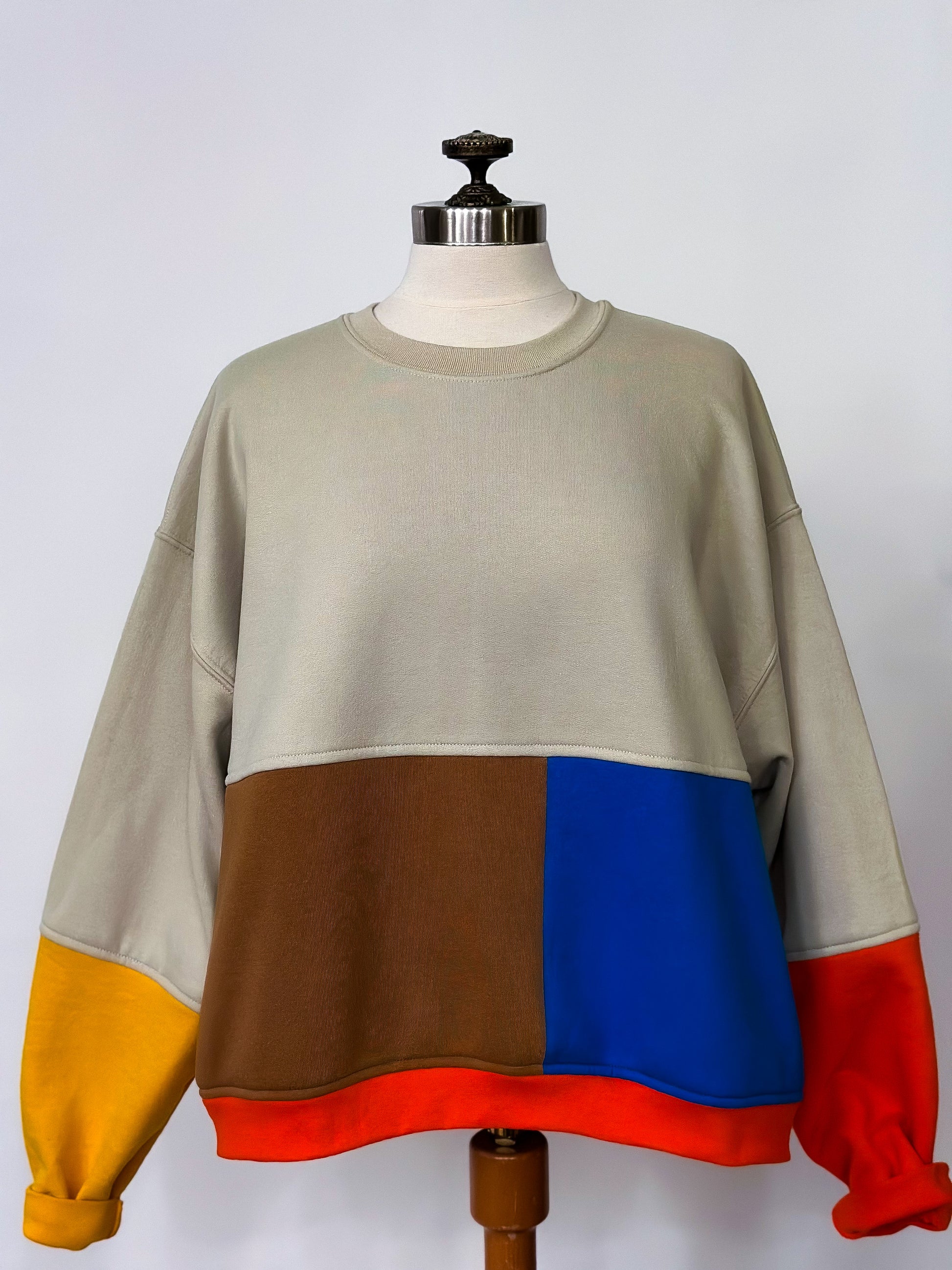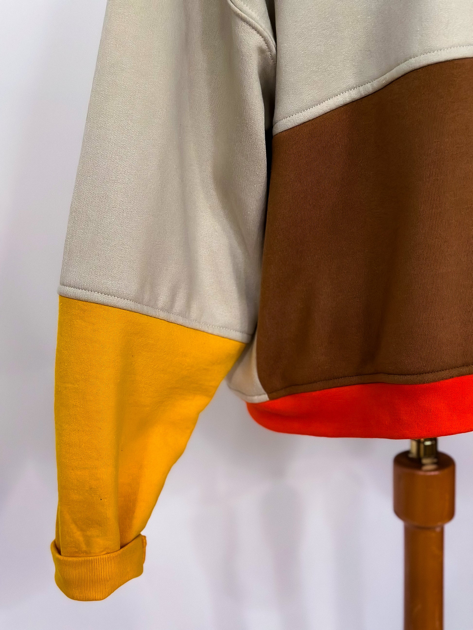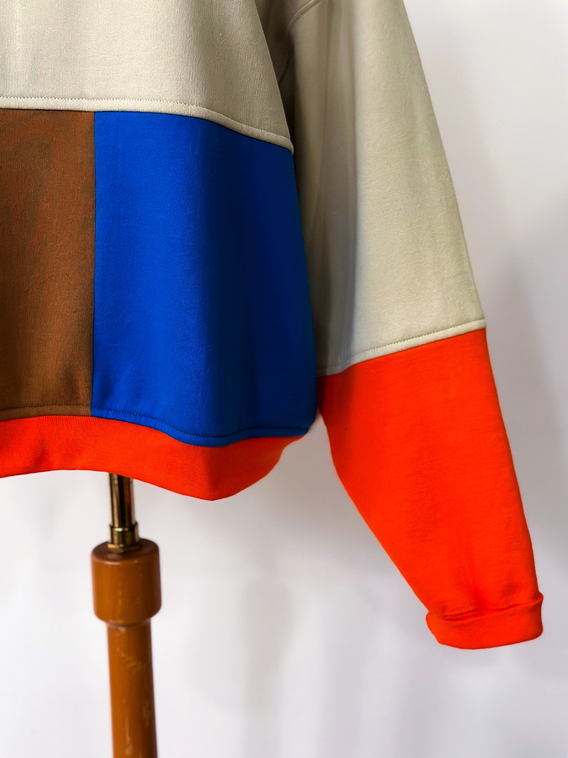 Introducing The Screech: a pop of color to brighten up your wardrobe. Upcycled and constructed with a color block pattern, it's the perfect way to make a statement. So put some life back into your look and add a splash of color!