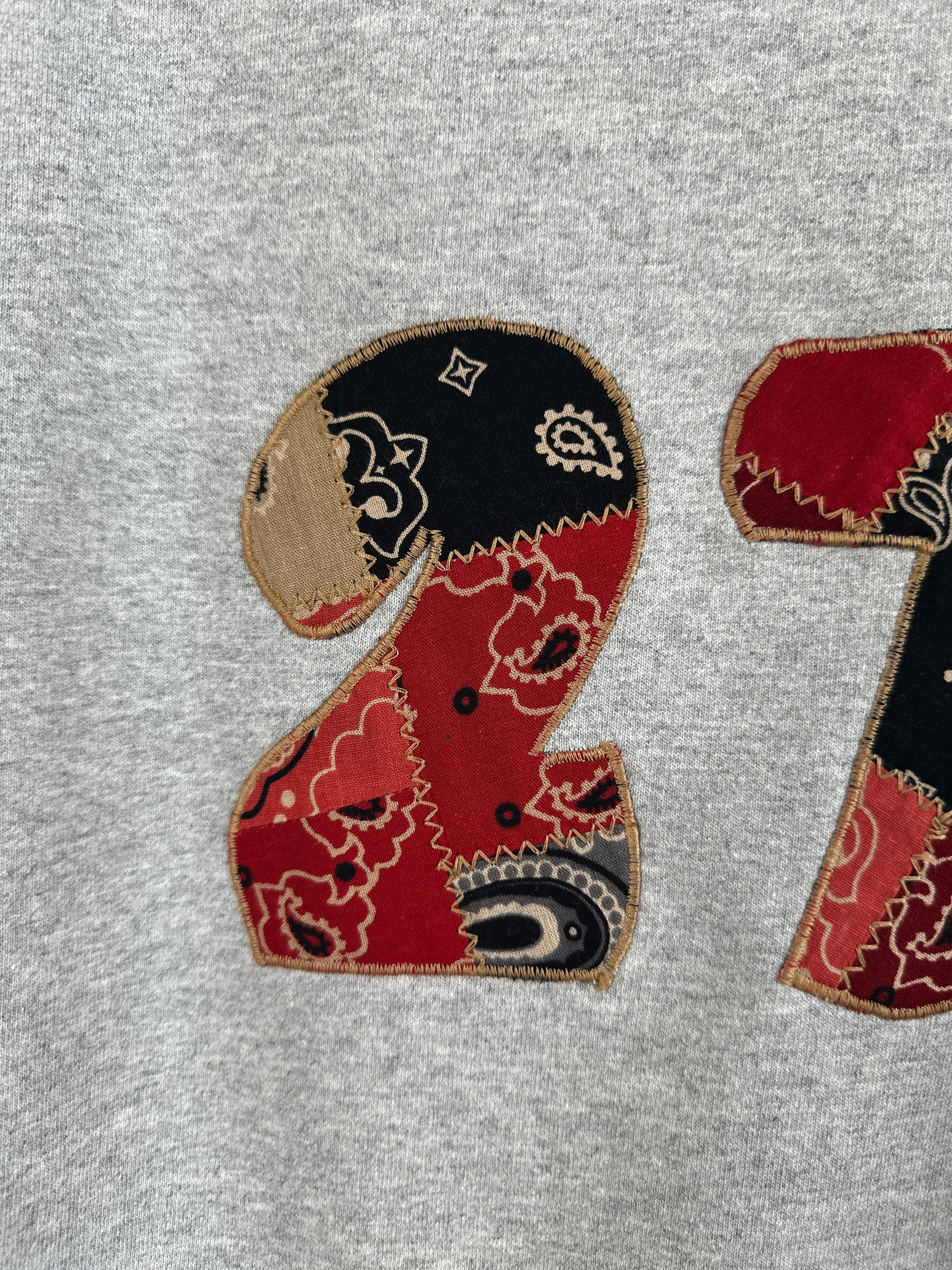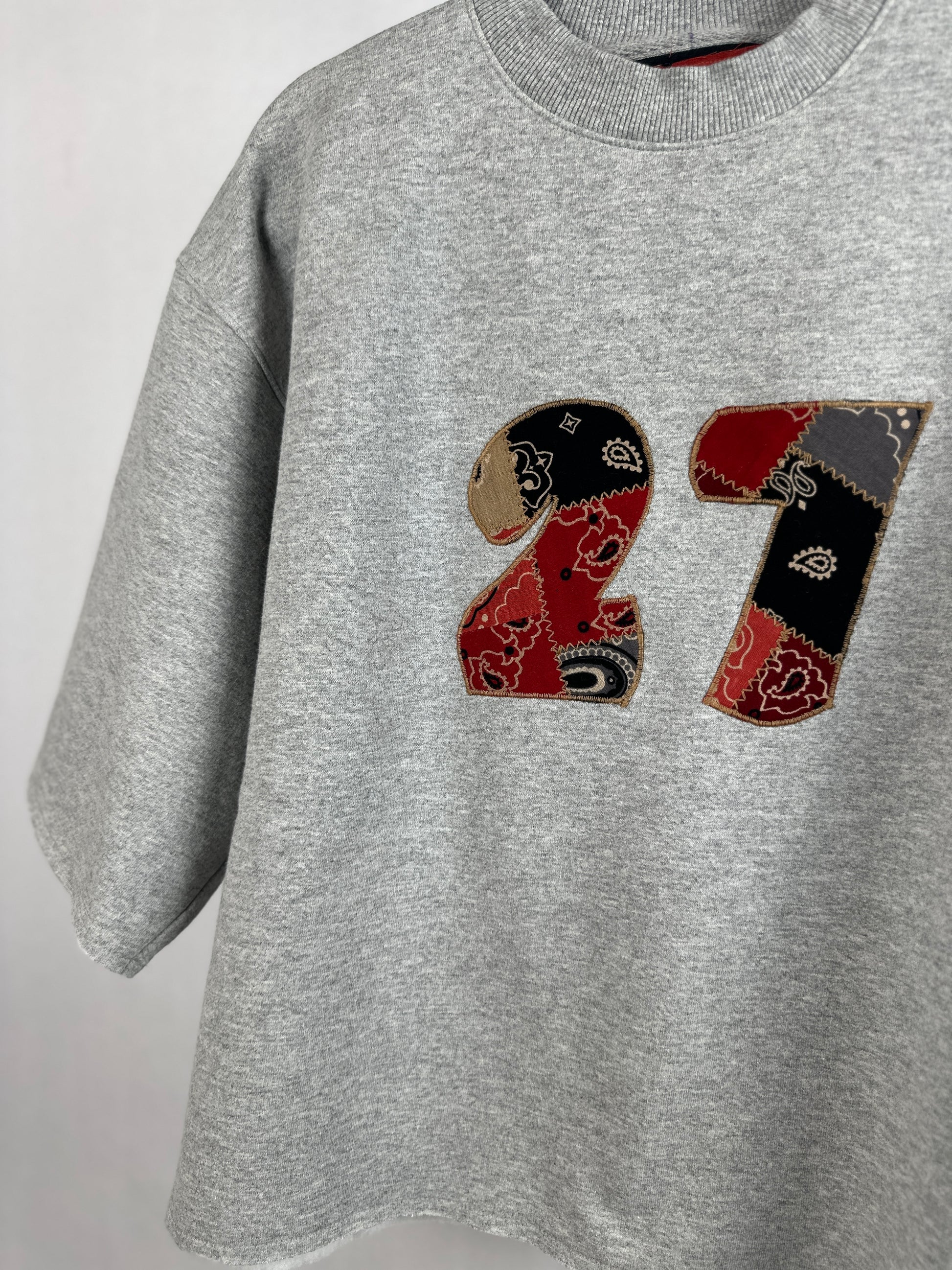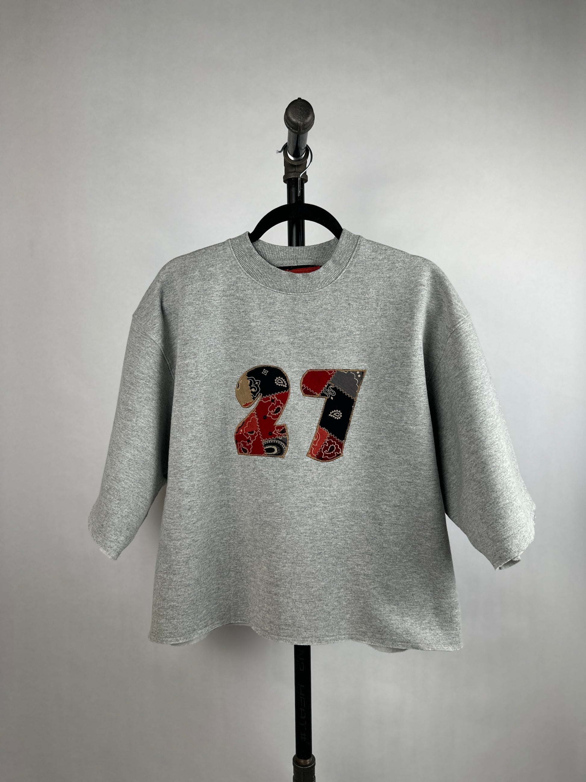 Get ready to rock the streets in The 27, our upcycled crewneck sweatshirt with 3/4 sleeves and a boxy fit. Featuring an appliqued #27 on the front made from a mix of fun patched fabric, this sweatshirt is both eco-friendly and stylish. Join the fashion revolution with The 27!