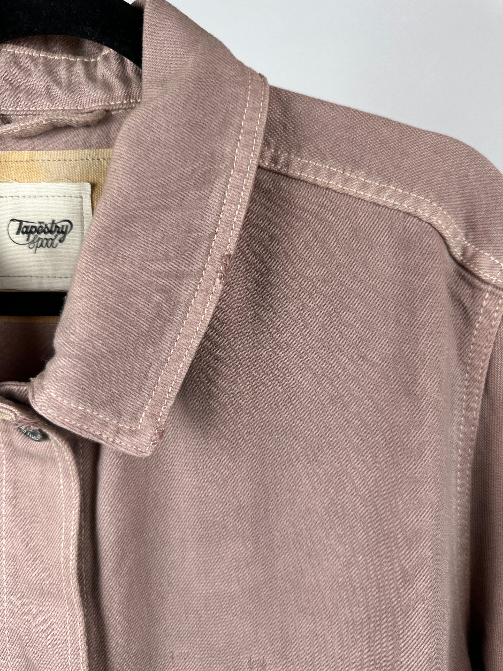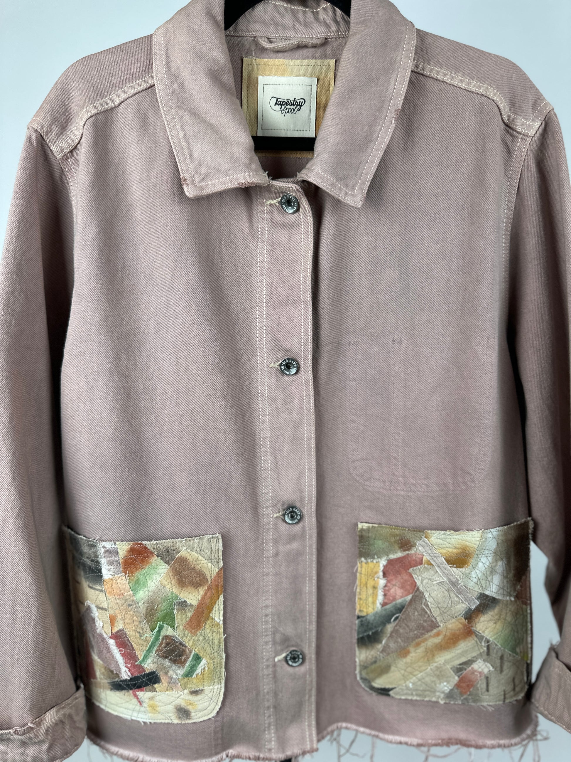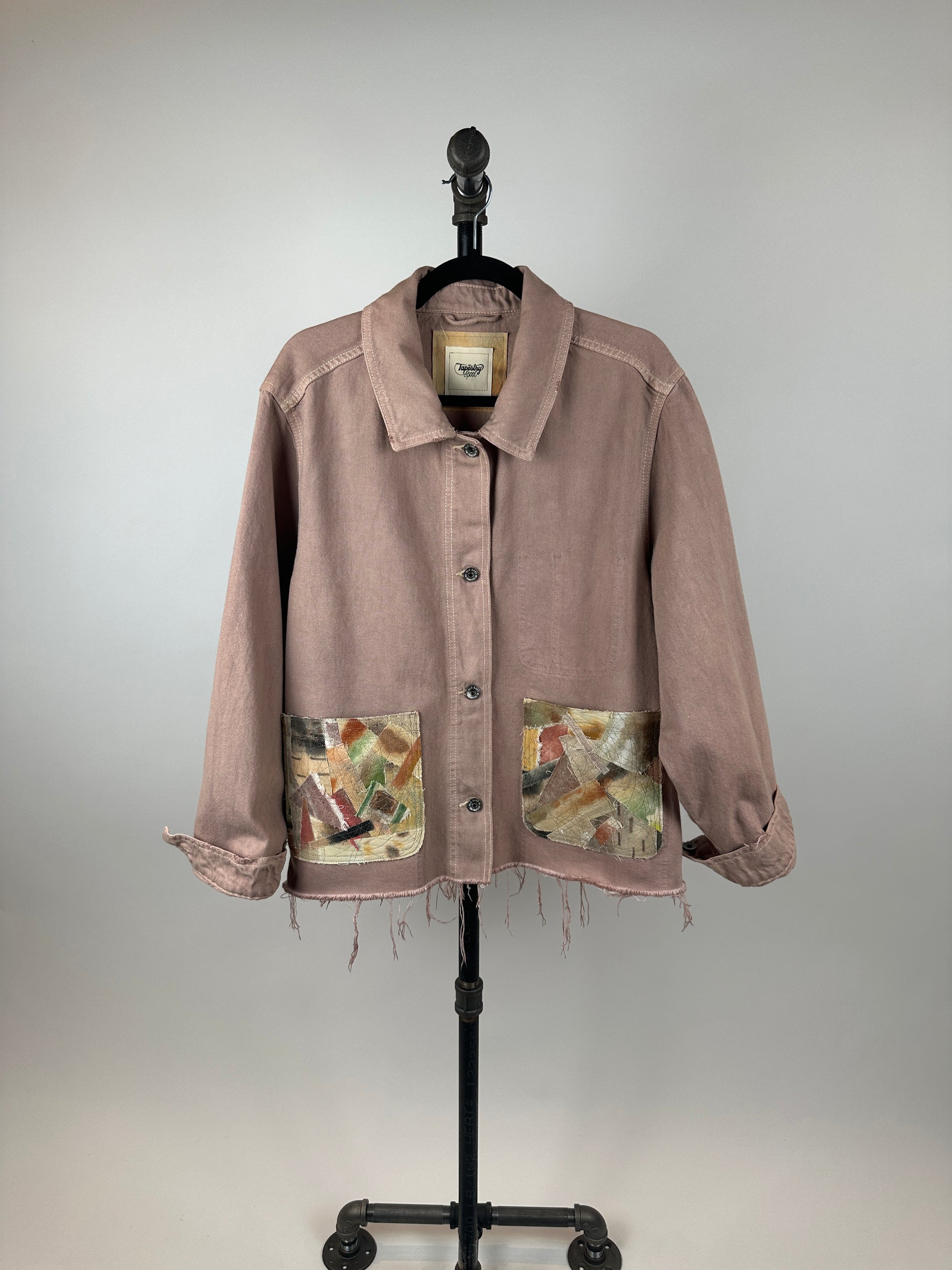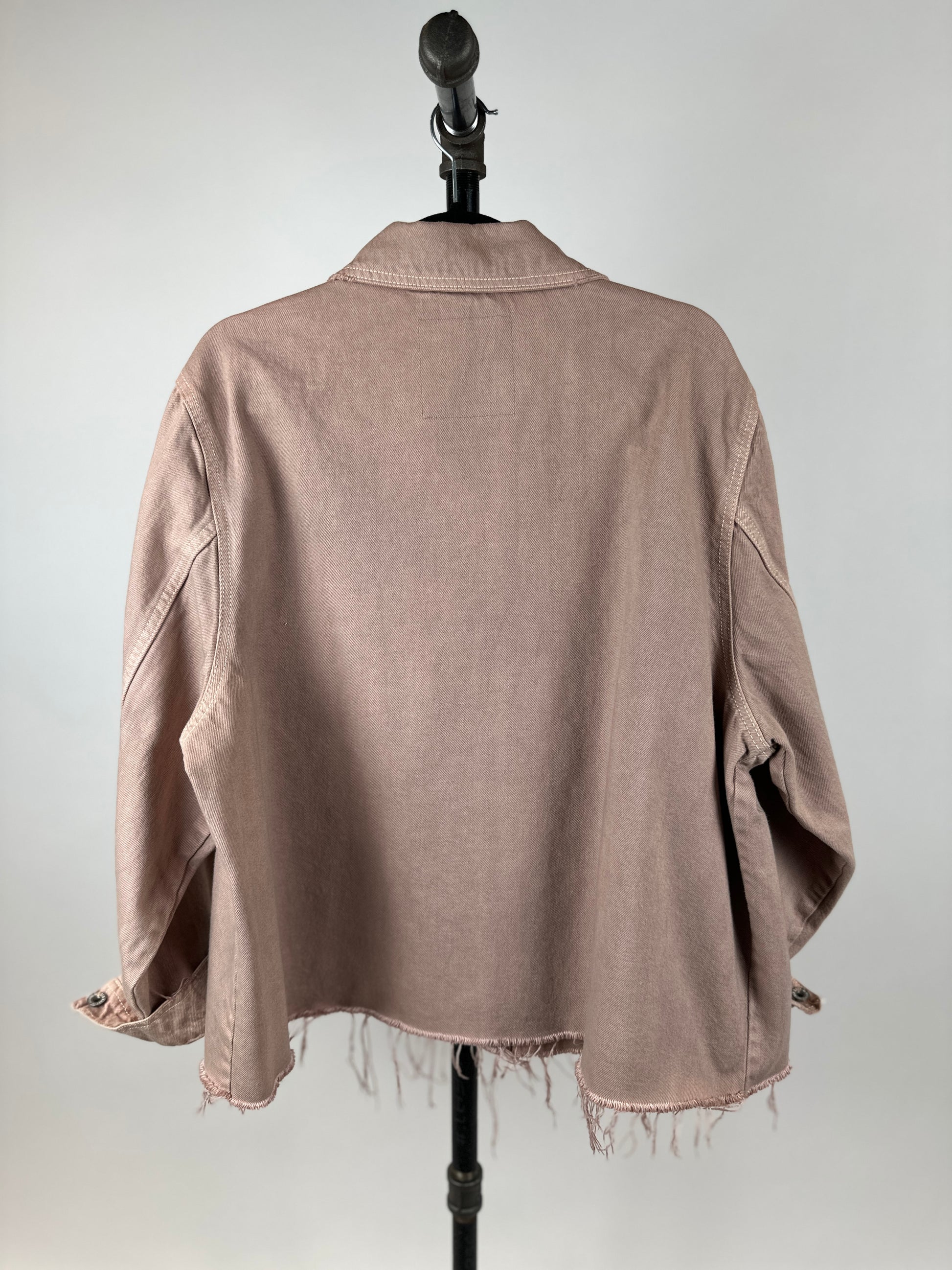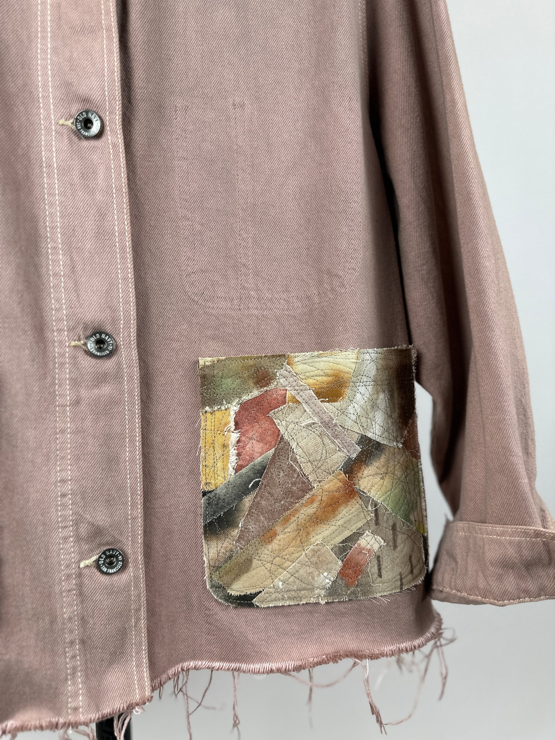 Meet The Ash, your new favorite jacket. Made from upcycled denim and hand-dyed for a one-of-a-kind look. Featuring an oversized fit and unique pockets made from fabric scraps that were used in a previous collection to avoid any waste of fabric. Distressed hemline and intentionally at the collar and on cuffs for added detail. Join the sustainable fashion movement with The Ash!