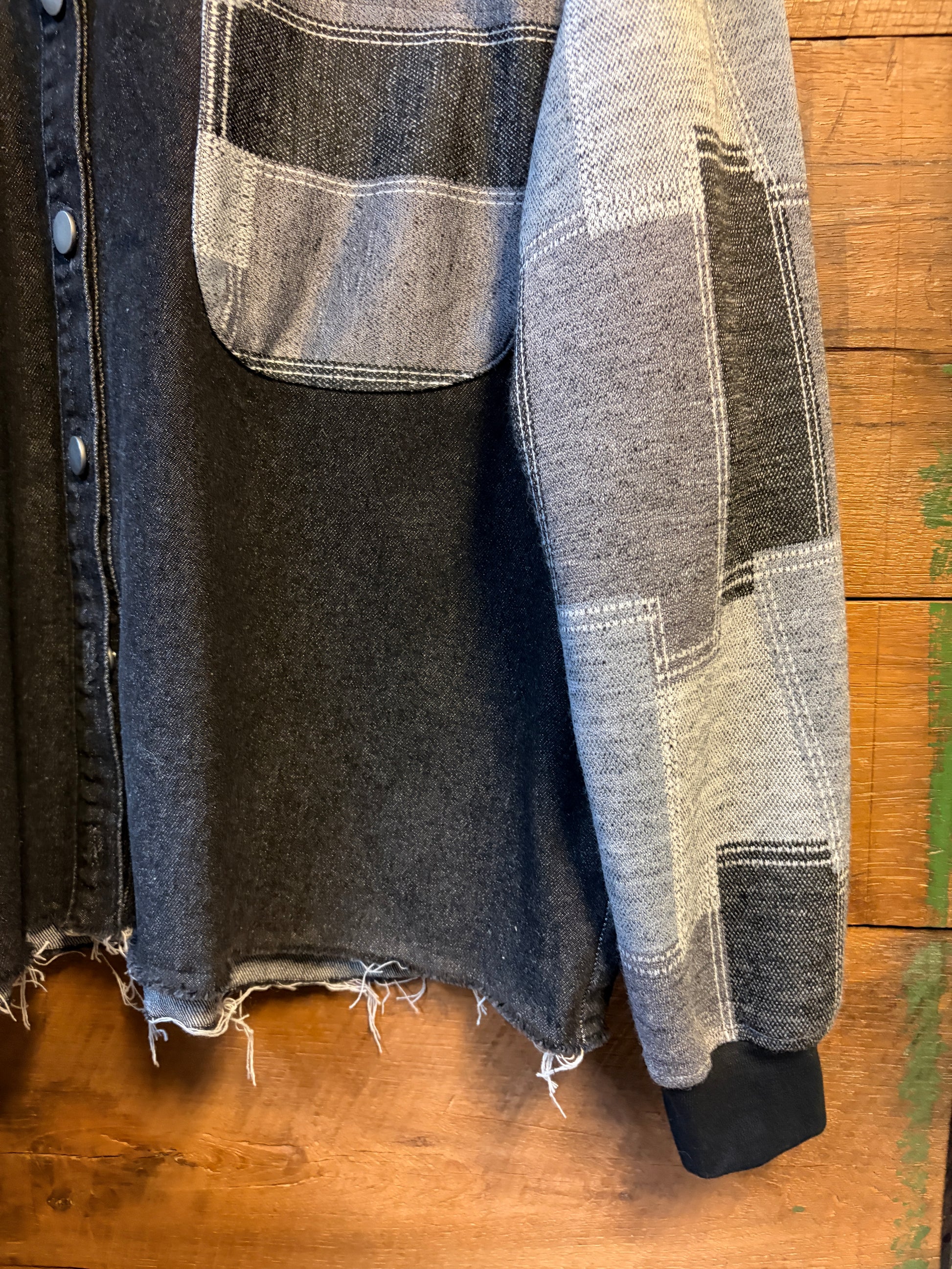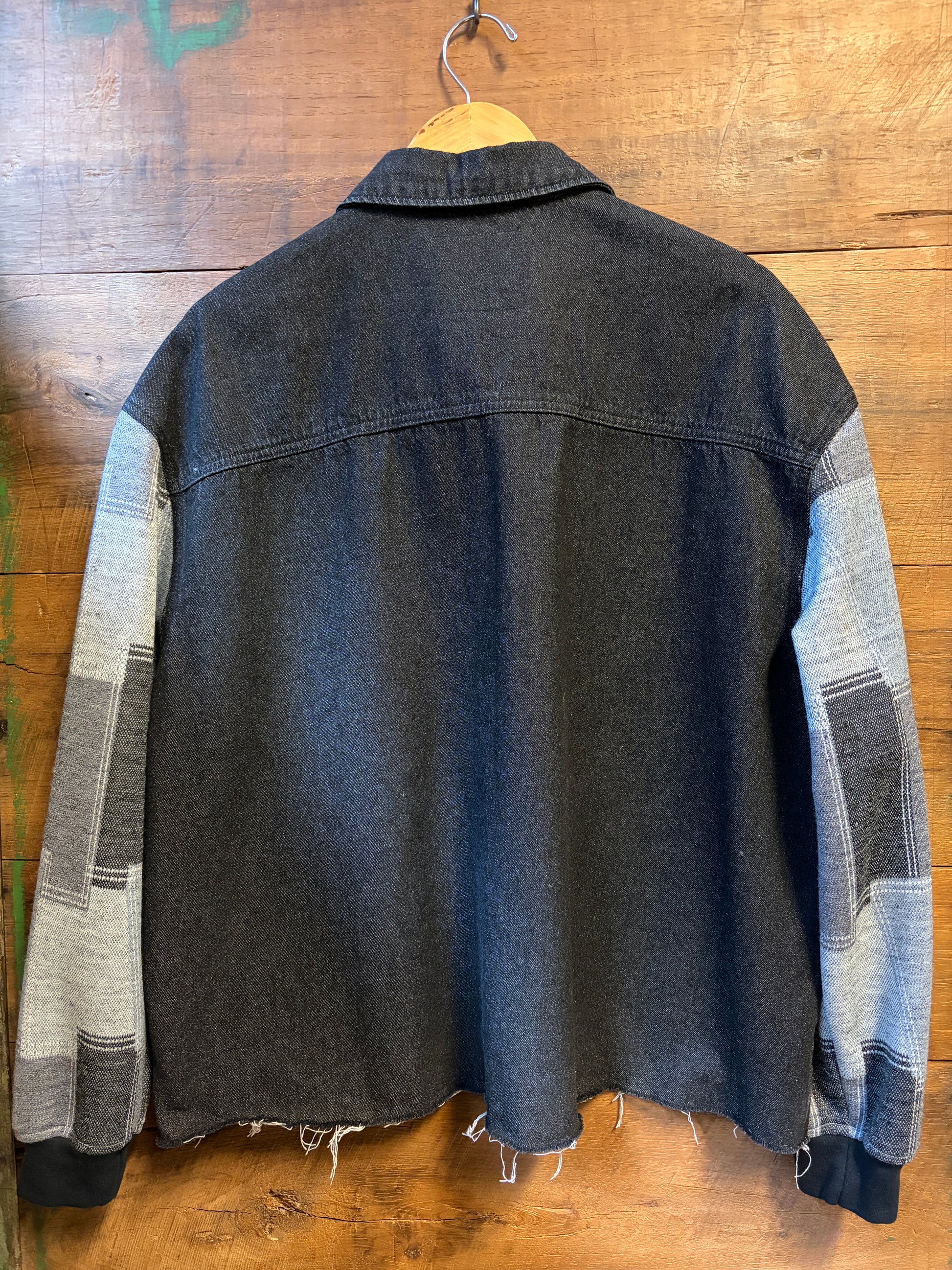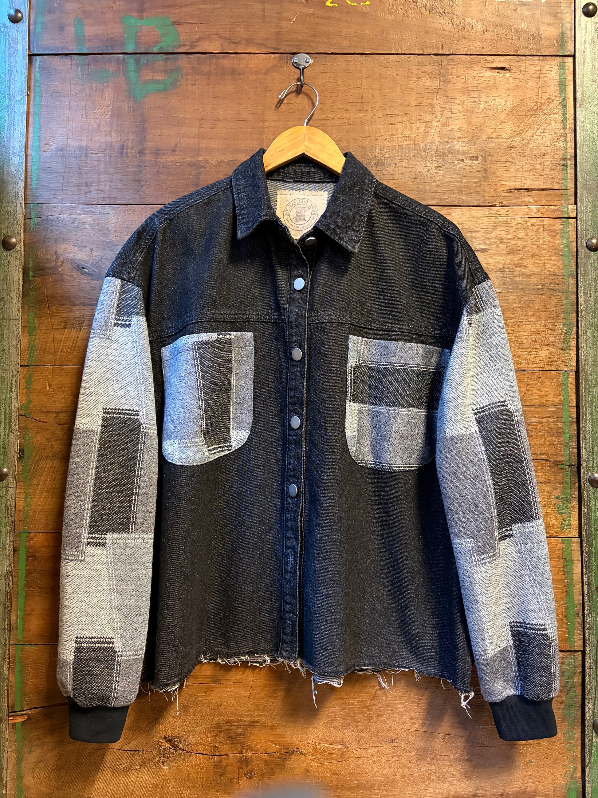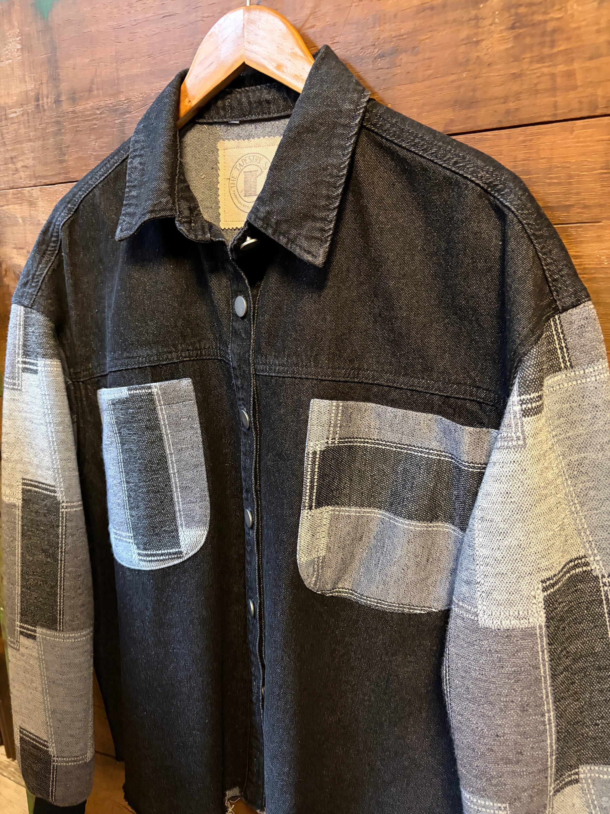 Meet The Athena, your new favorite upcycled denim shacket that’s as bold as your style. Featuring an oversized fit, raw edge hemline, and eye-catching contrasting sleeves and pockets, this playful piece turns classic denim into a statement maker. Perfect for layering, it adds a cool, carefree vibe to any outfit while championing sustainable fashion.