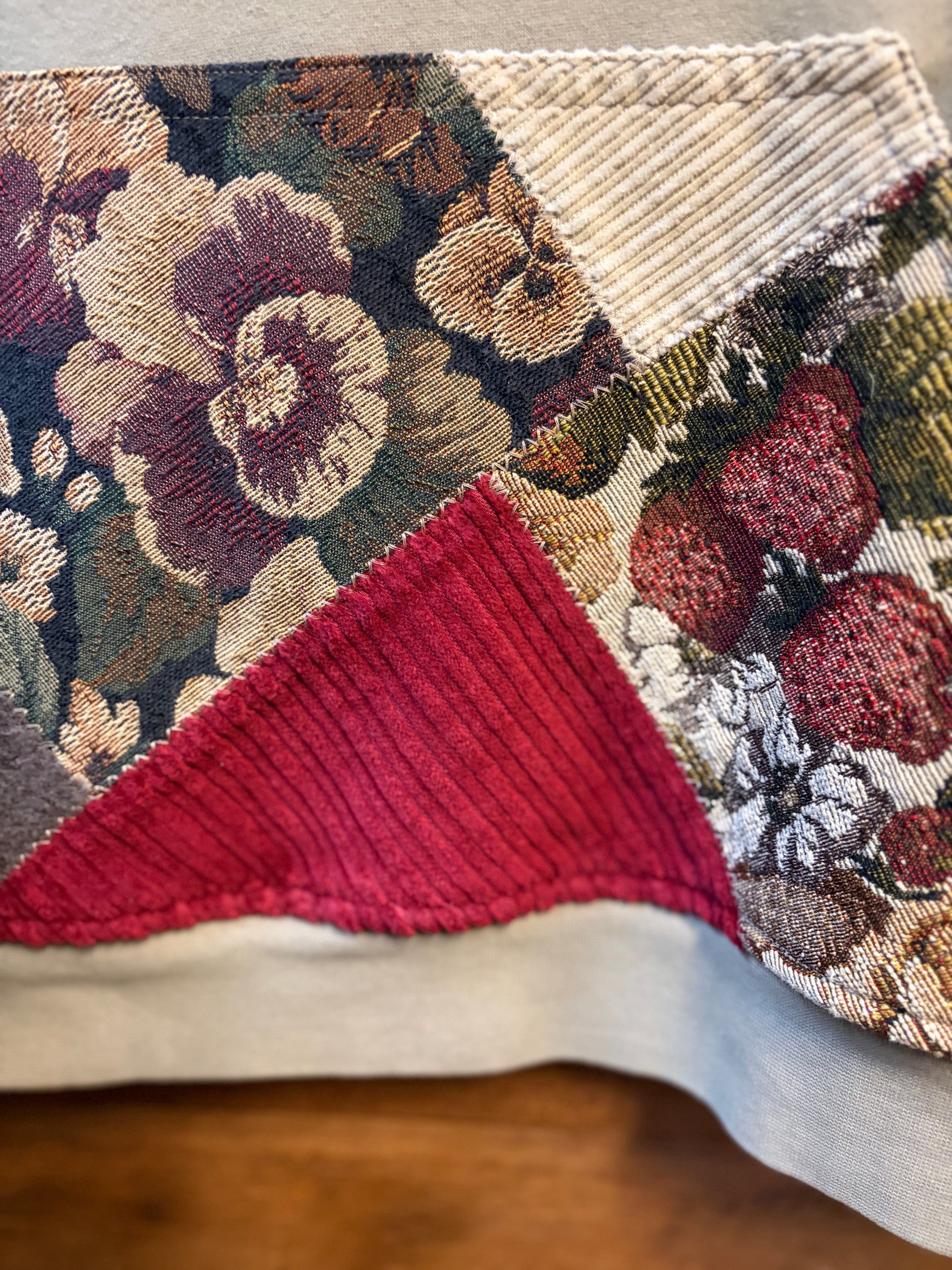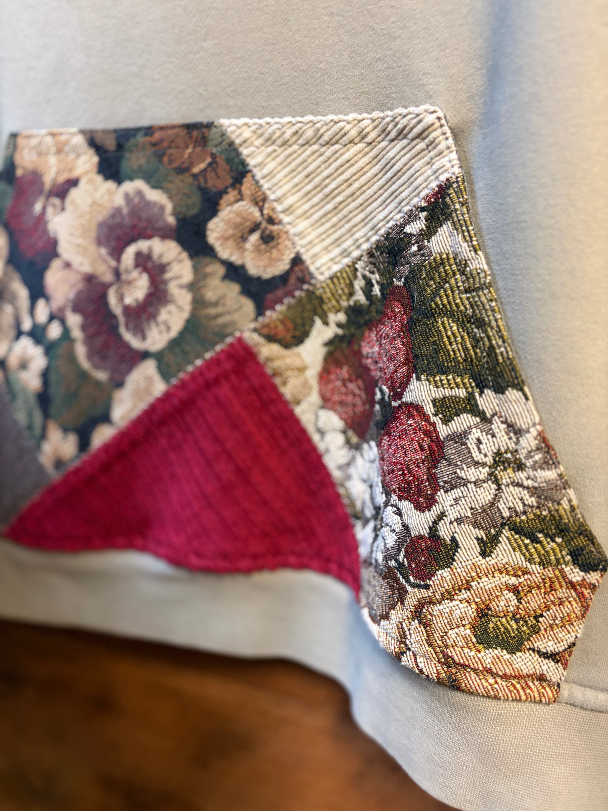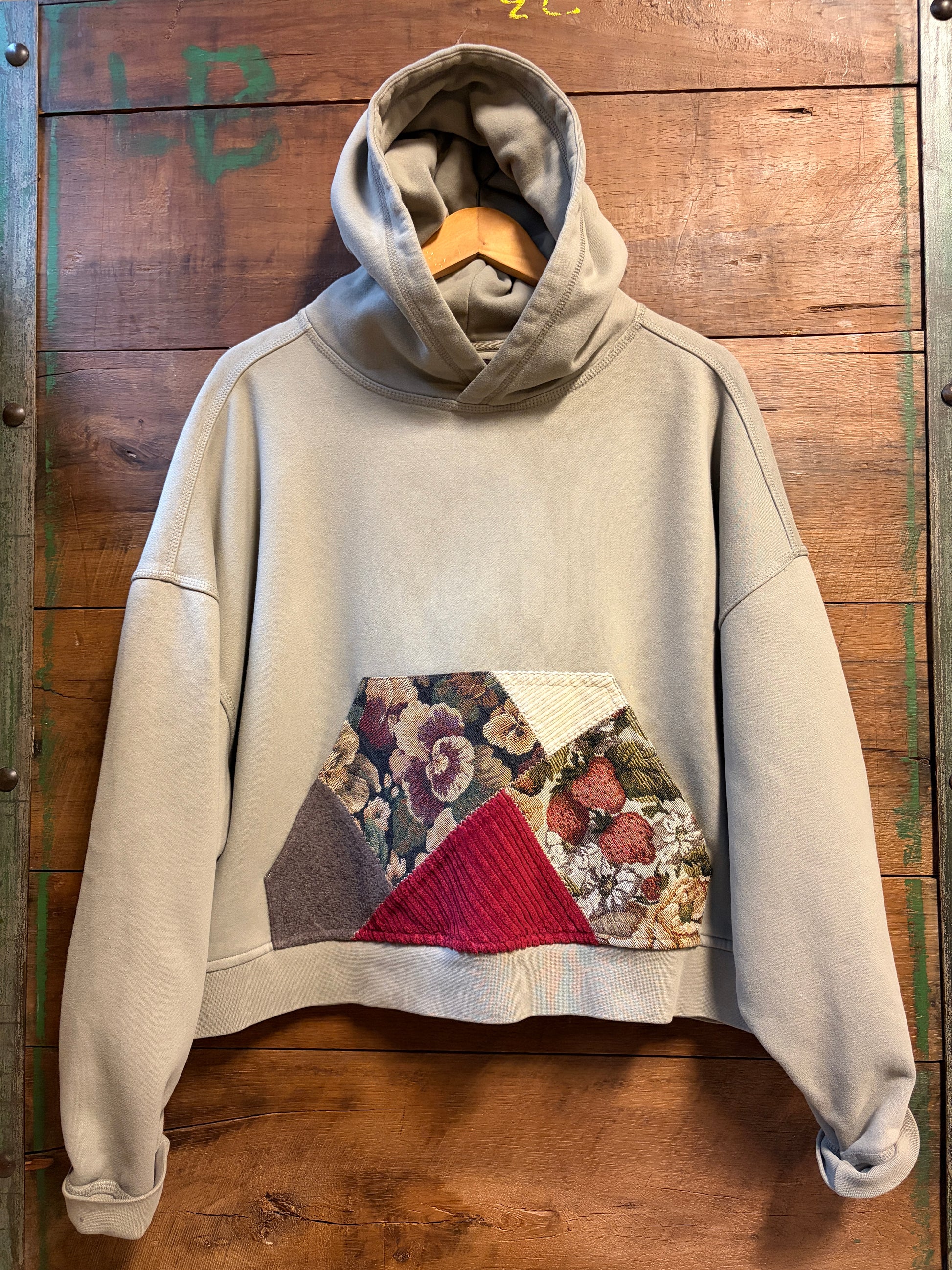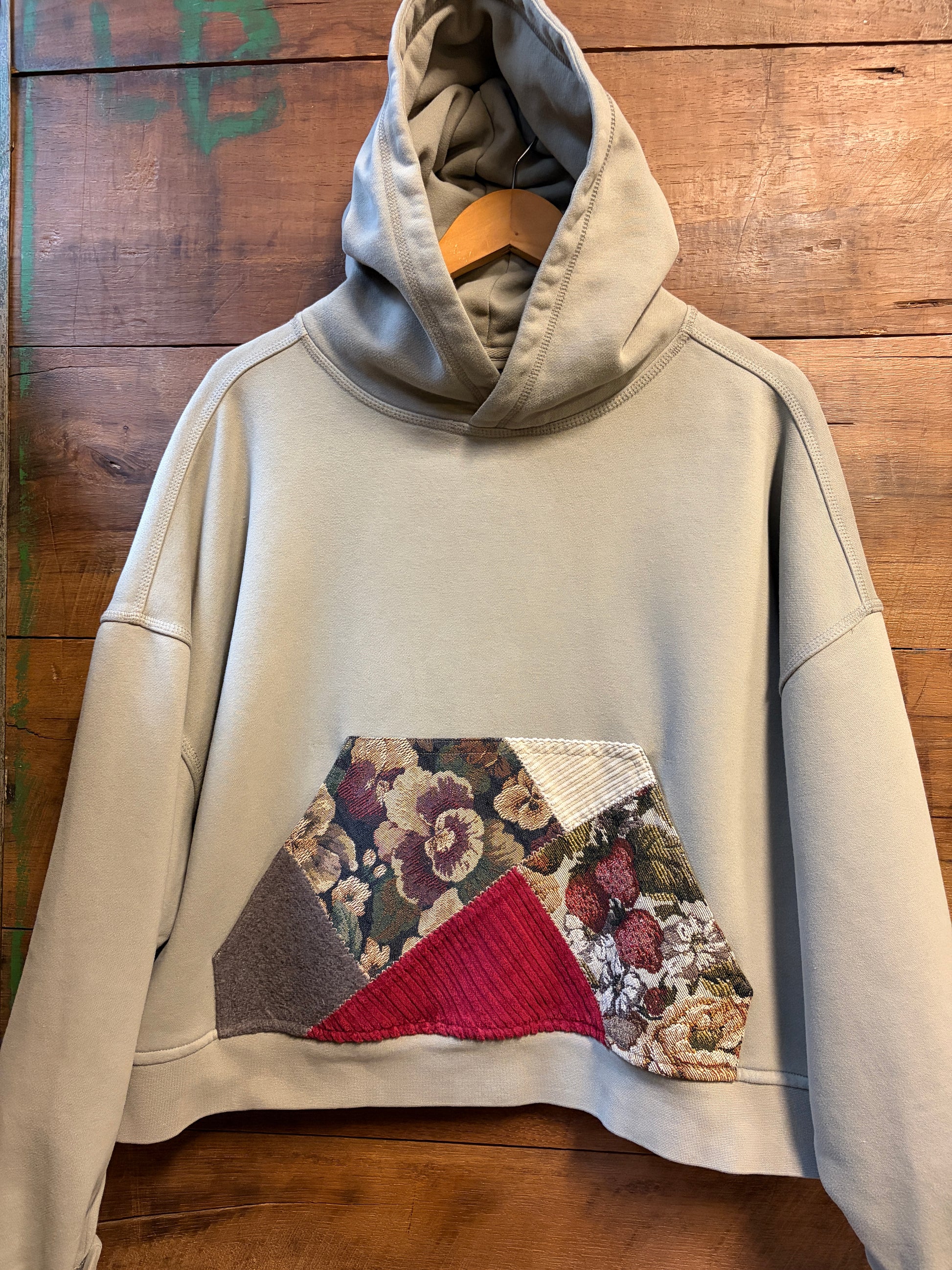 Throw on The Berry and embrace your quirky side. This upcycled hoodie rocks a boxy silhouette with a slightly cropped cut that hits just right. The star of the show? A one-of-a-kind patchwork kanga pocket that adds serious character. Perfect for layering, lounging, or making a sustainable fashion statement. Each piece is unique, so you're getting something truly special.