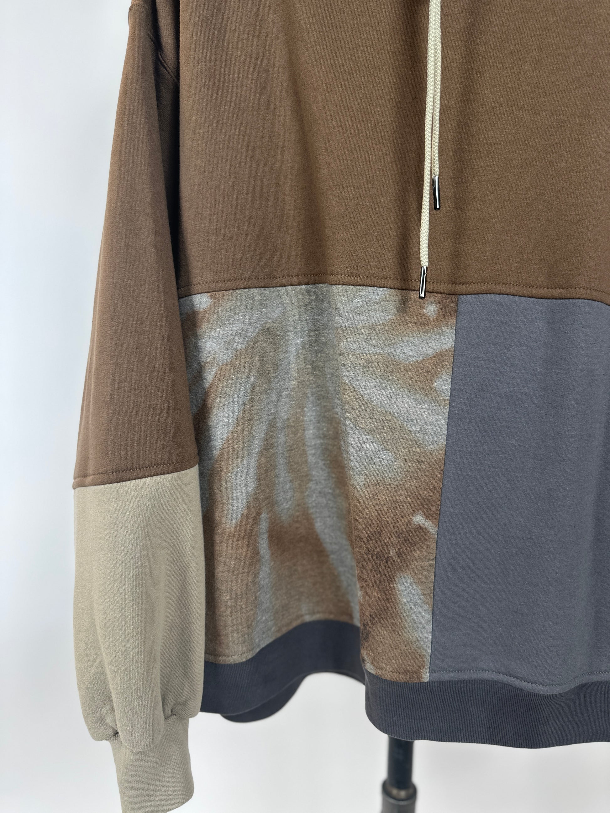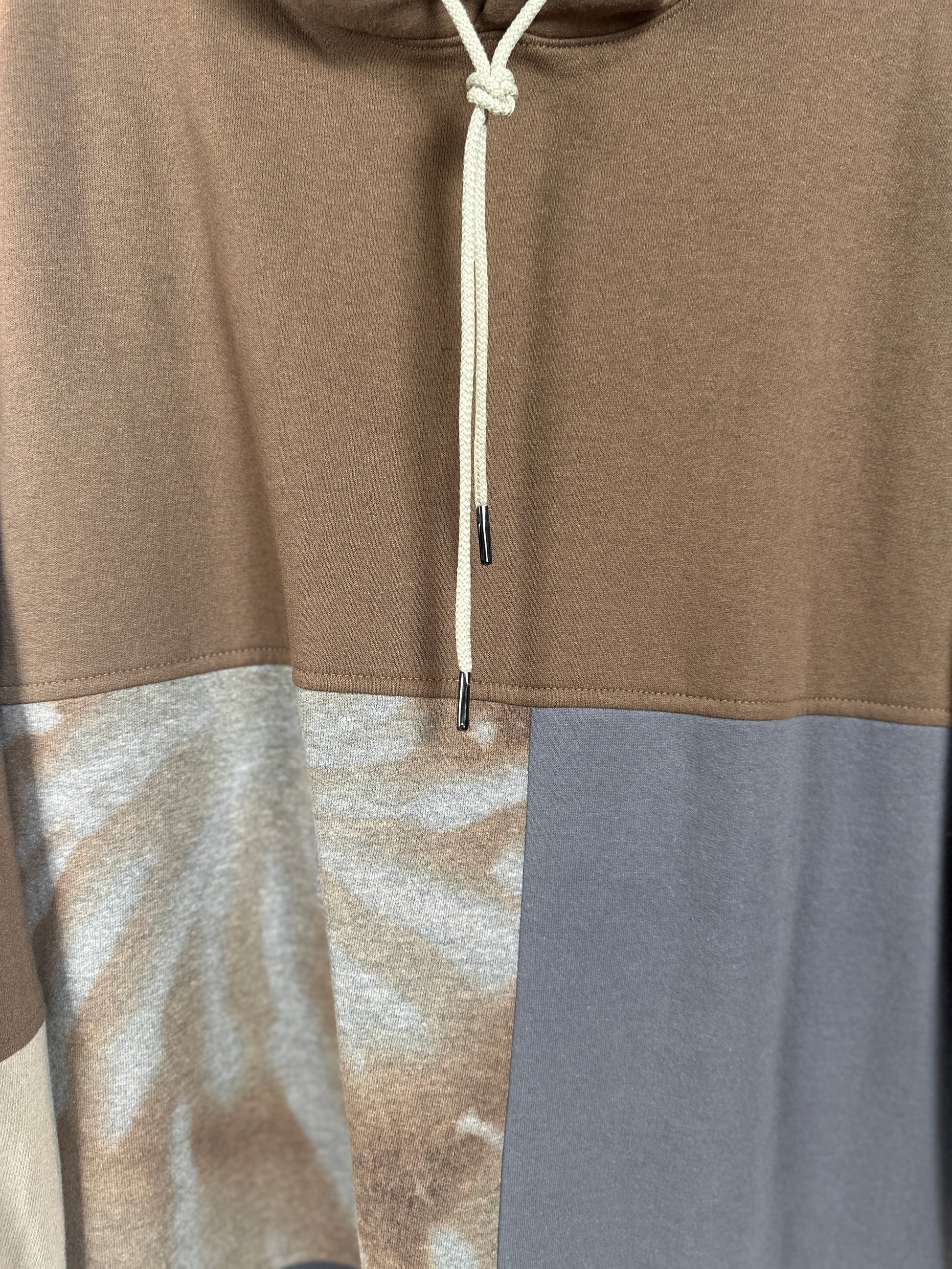 Introducing The Brownie - a playful twist on the classic hoodie! With its unique color-blocking and tie-dye design, made from upcycled materials, you're sure to stand out from the crowd. Perfectly neutral colors are sure to make this one your favorite!