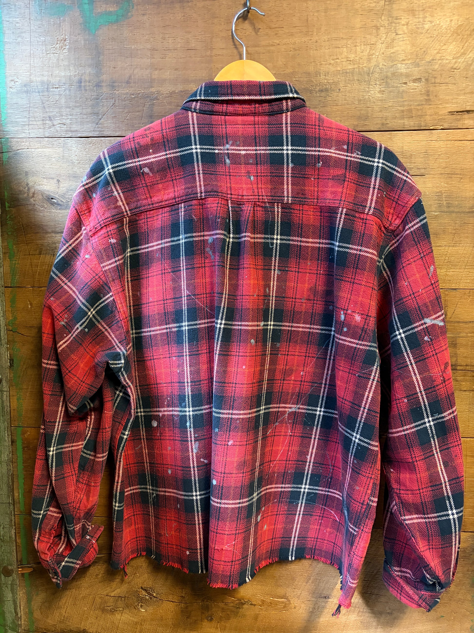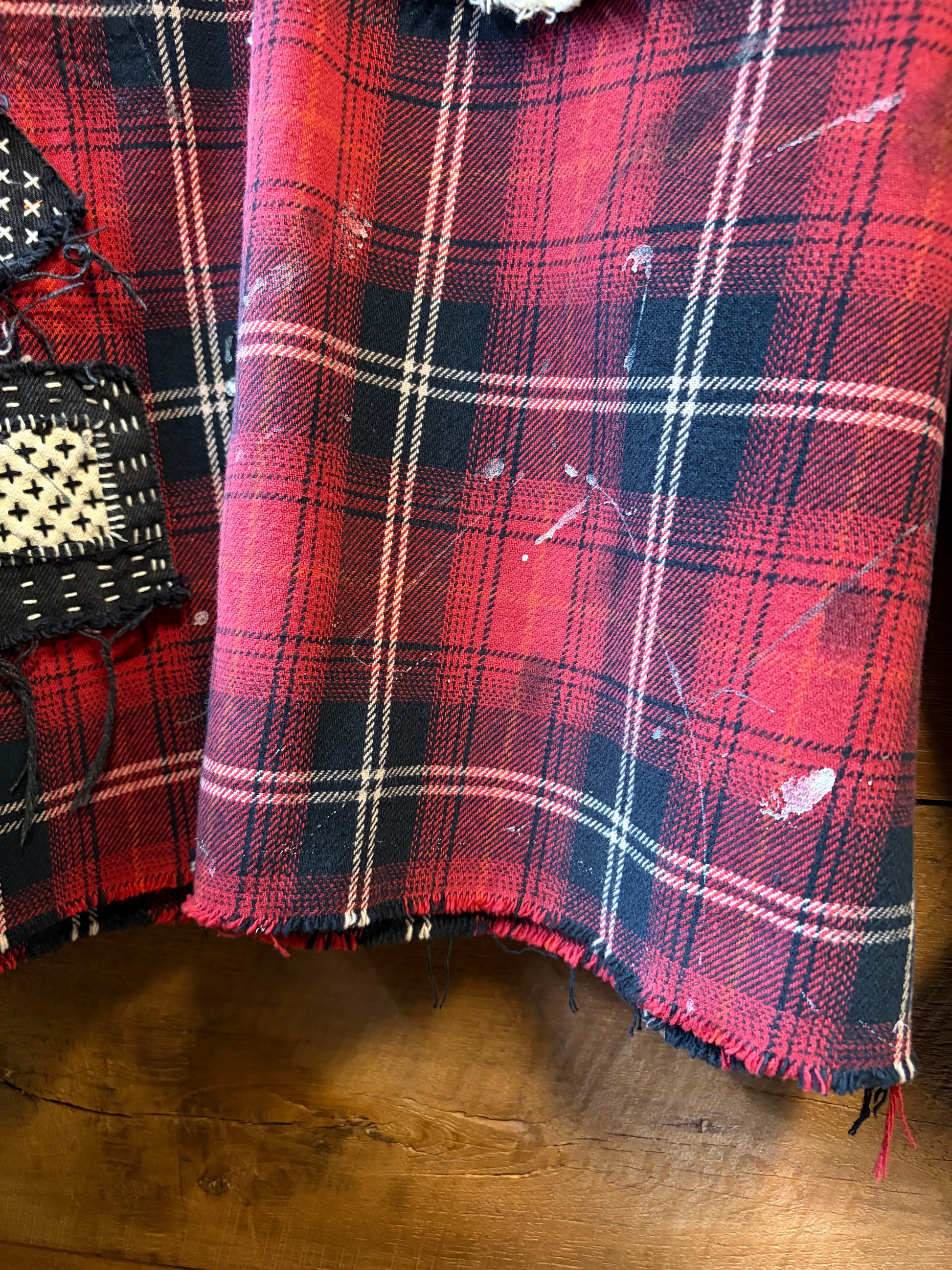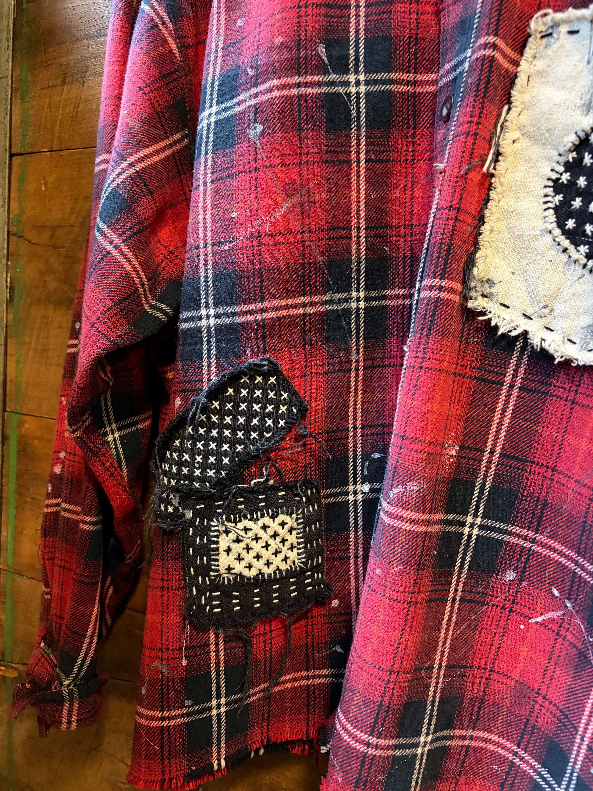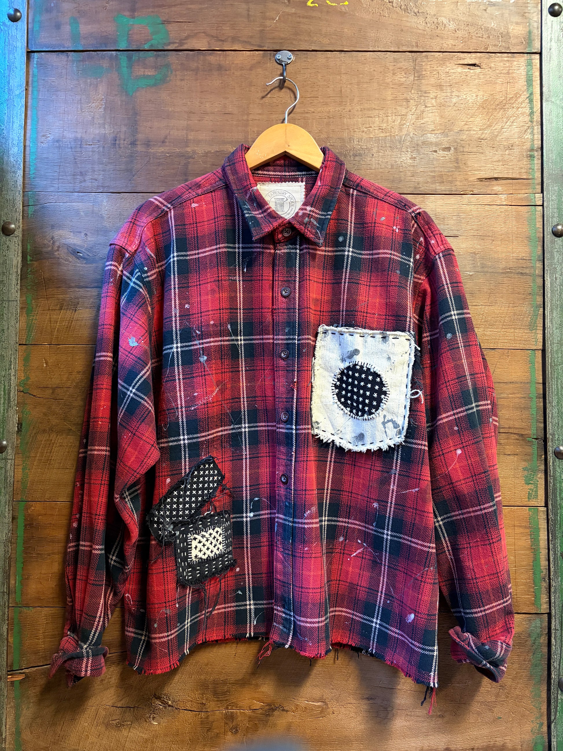 The Bruce brings cozy back with a twist! Crafted from upcycled heavyweight flannel, it features splatter paint details and a contrasting pocket that pops. Sashiko stitching adds a unique touch, while the oversized fit and raw edge hemline keep things relaxed and effortlessly cool. Perfect for those who love comfort with a splash of creativity!