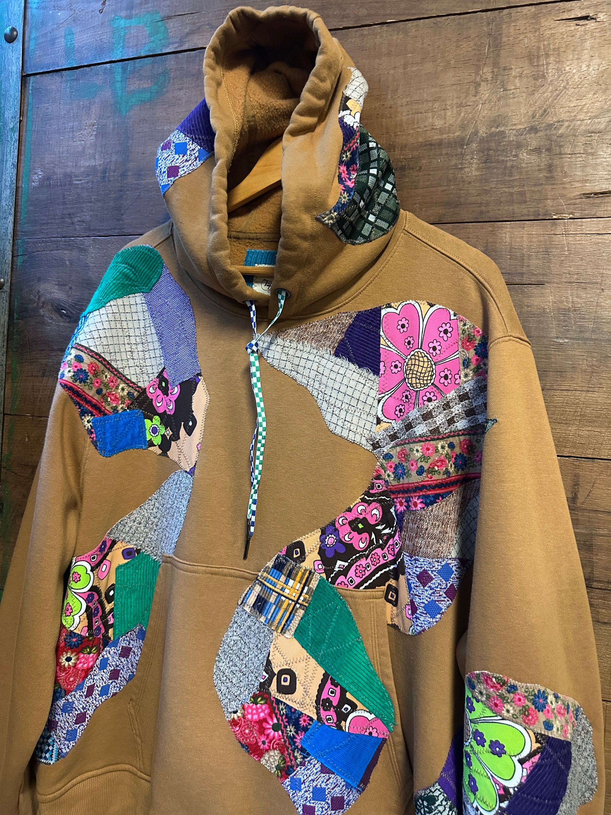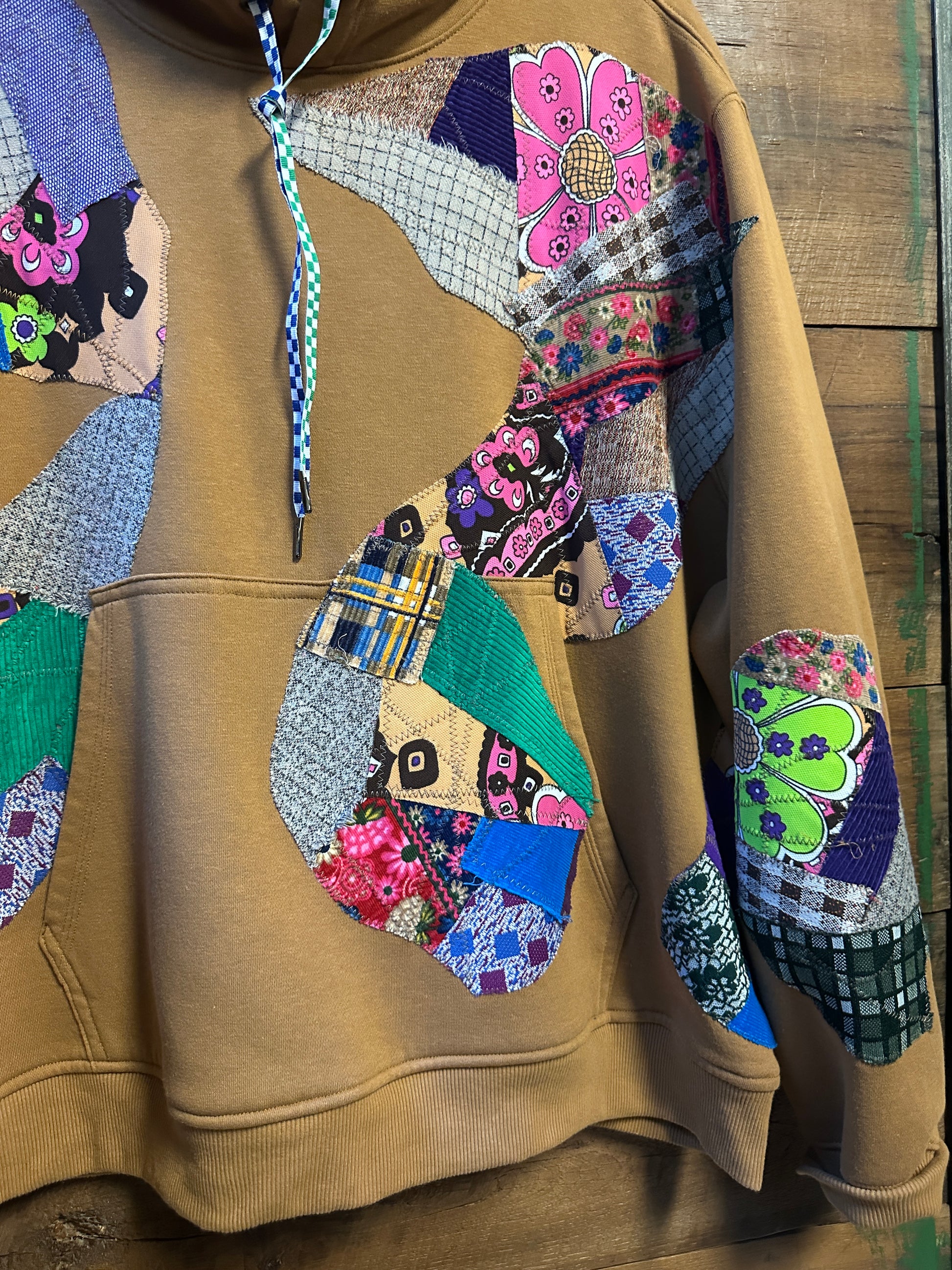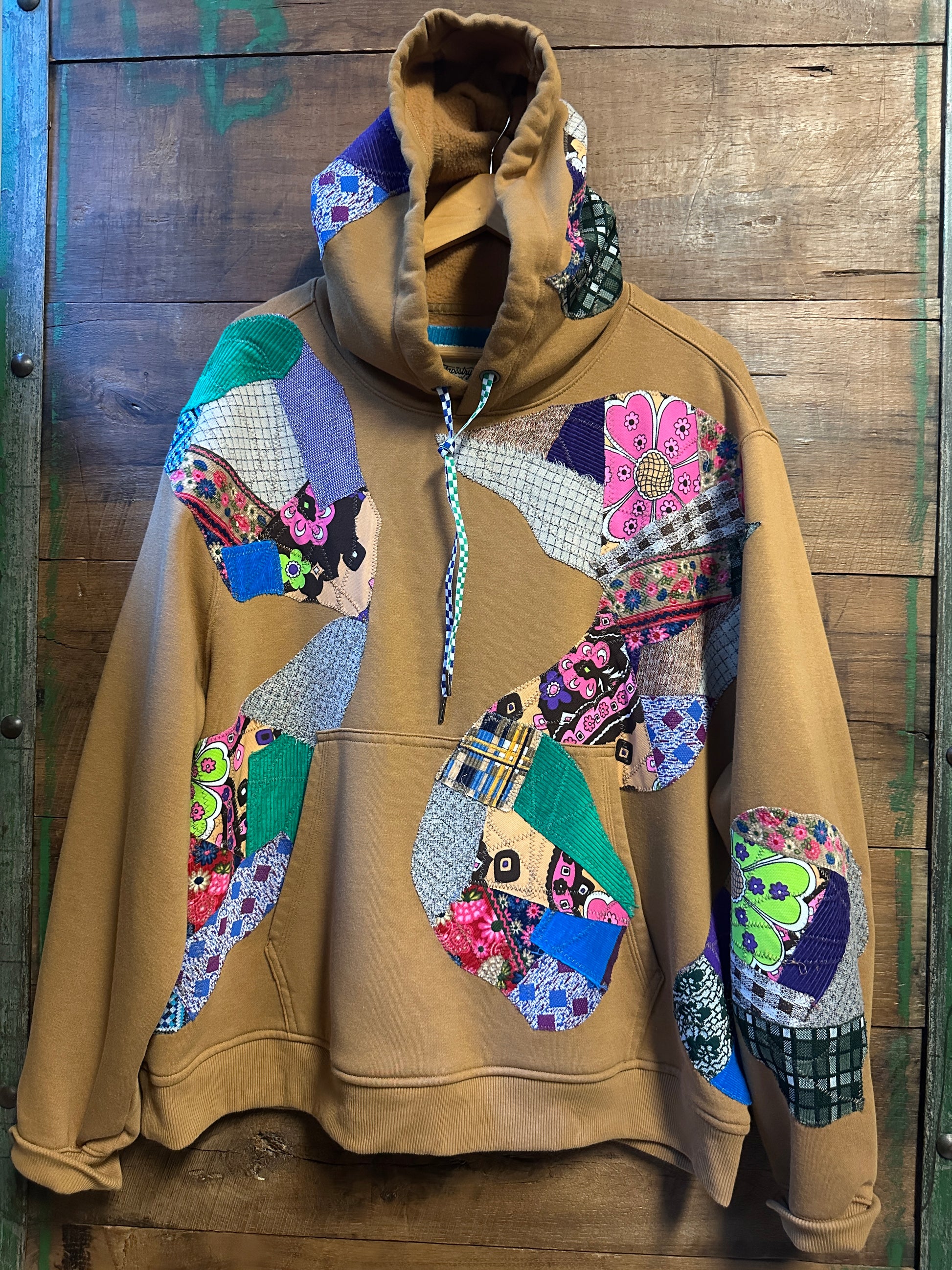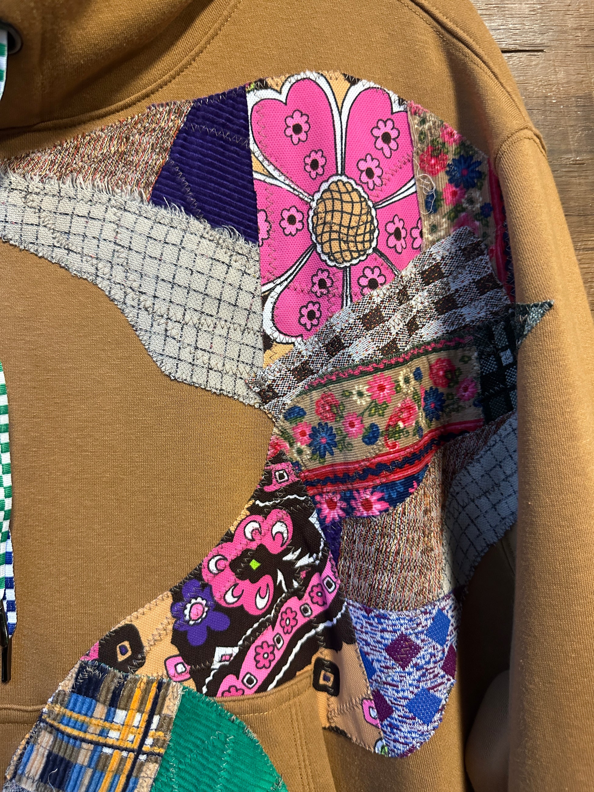 Get cozy and colorful with The Calliope, an oversized hoodie bursting with personality! Featuring large, vibrant patches made from vintage fabric scraps, The Calliope gives your wardrobe a playful, one-of-a-kind look. Perfect for layering up in style while embracing sustainable fashion.