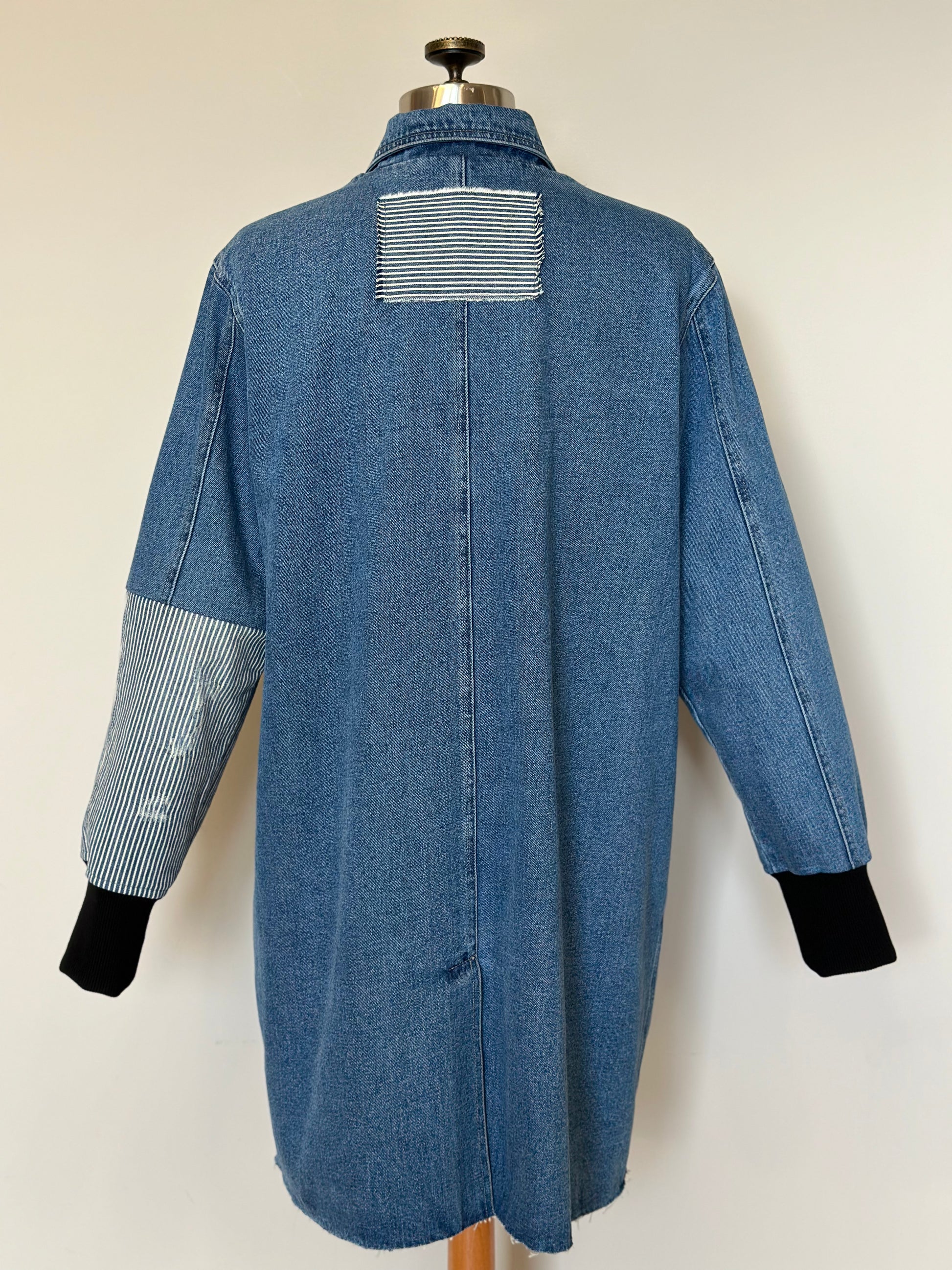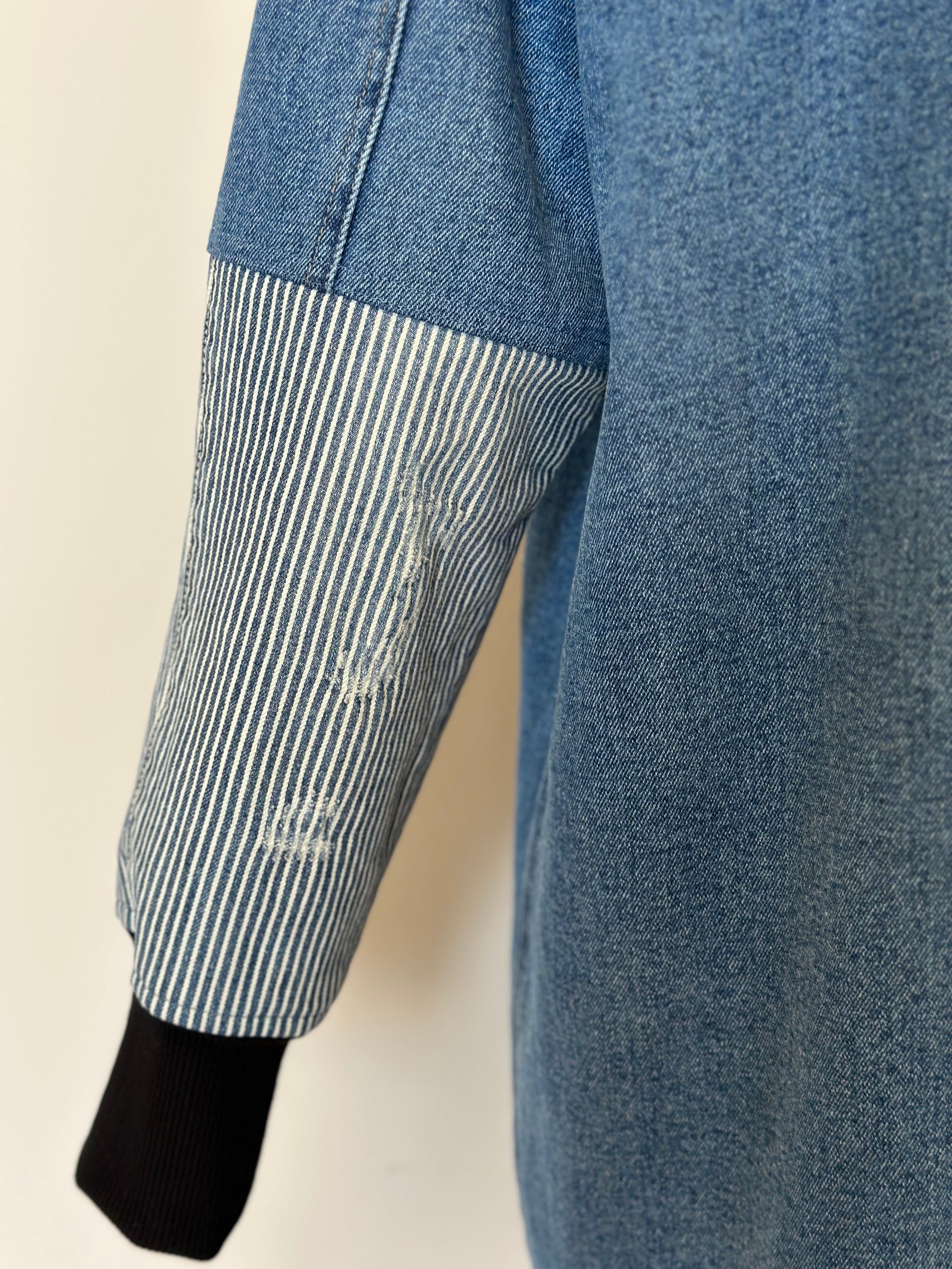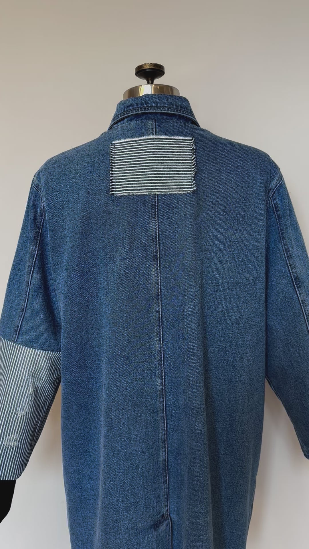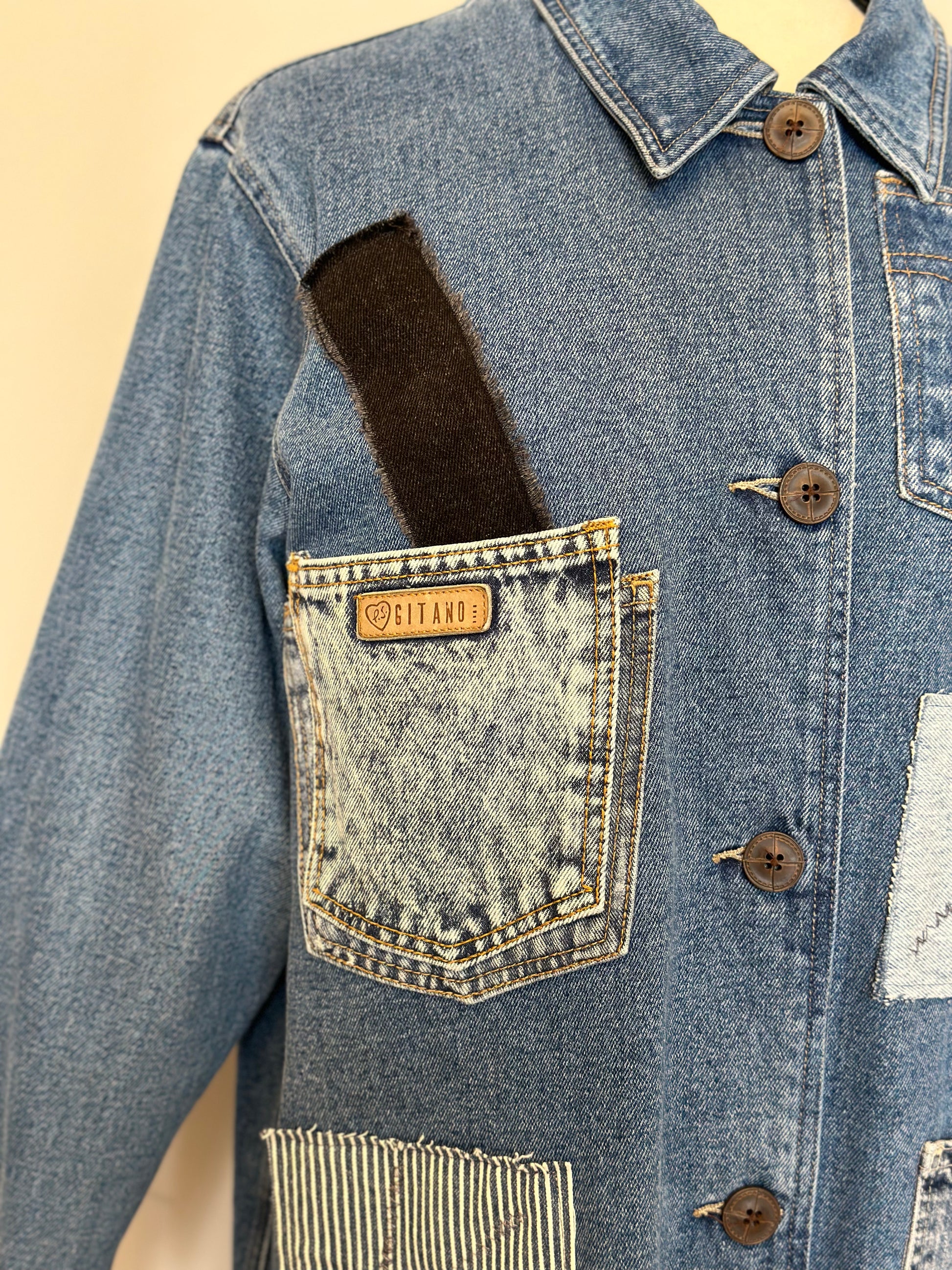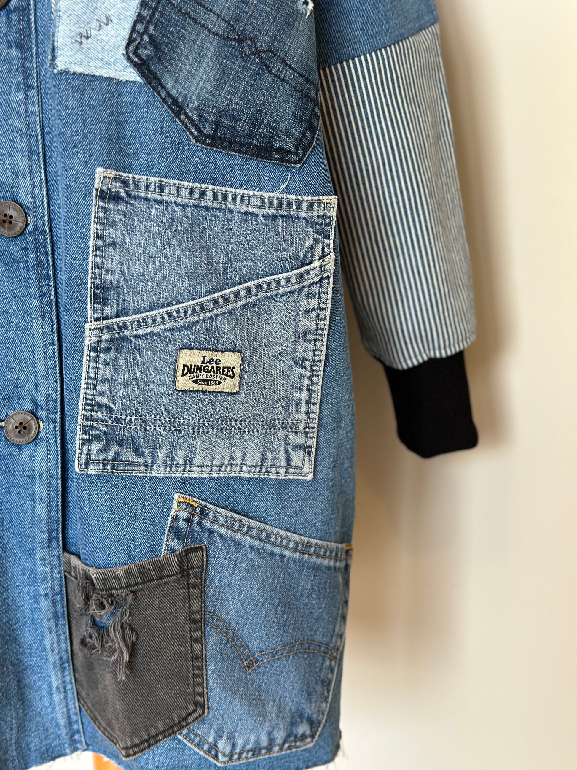 Rock a unique style with The Coat of Many Pockets. This upcycled, vintage denim jacket features multiple vintage pockets, making it perfect for carrying your essentials in a fashionable and sustainable way. Loose fit, perfect for layering with a hoodie or sweater. Say goodbye to boring jackets and hello to functional fashion!