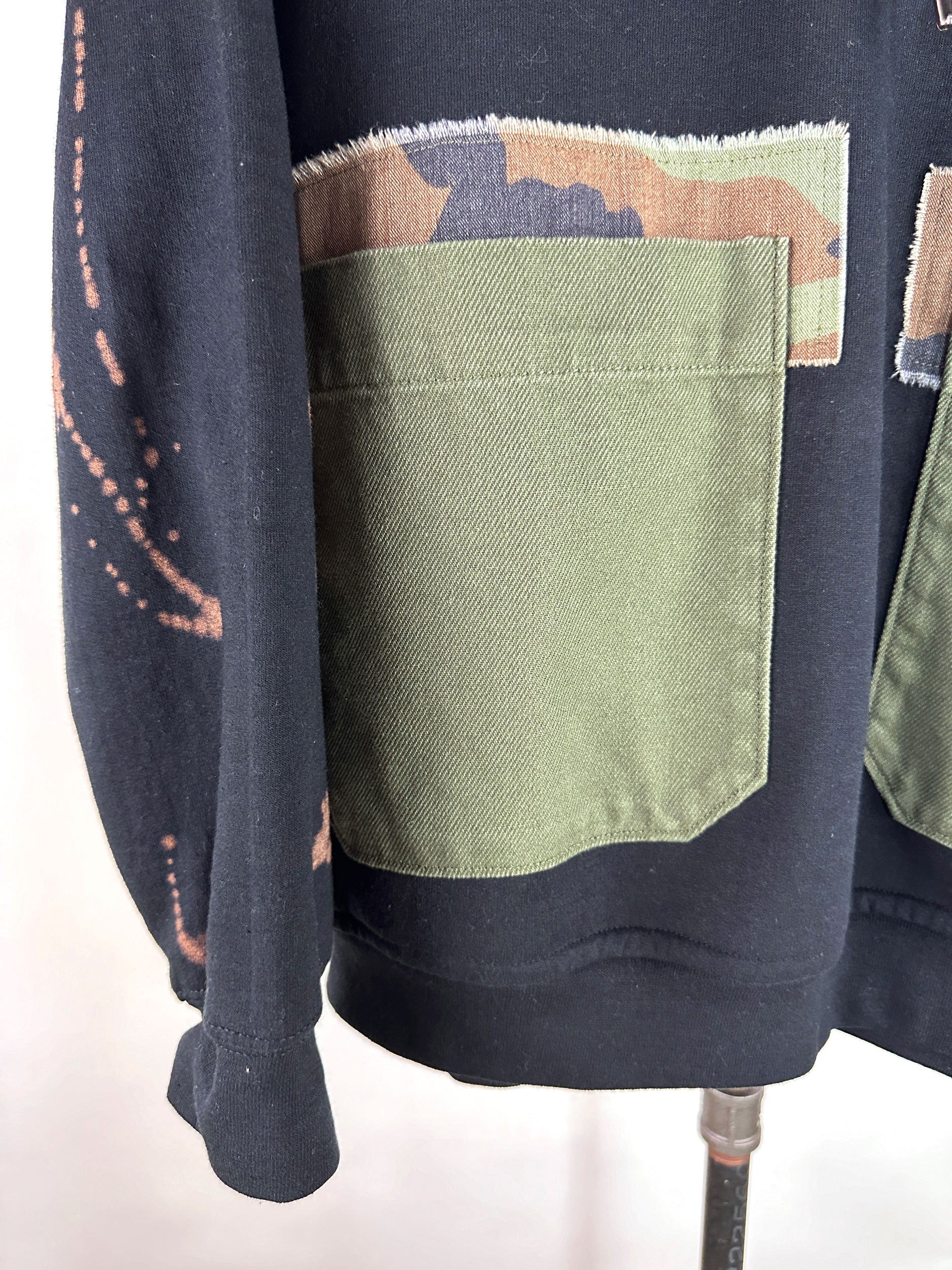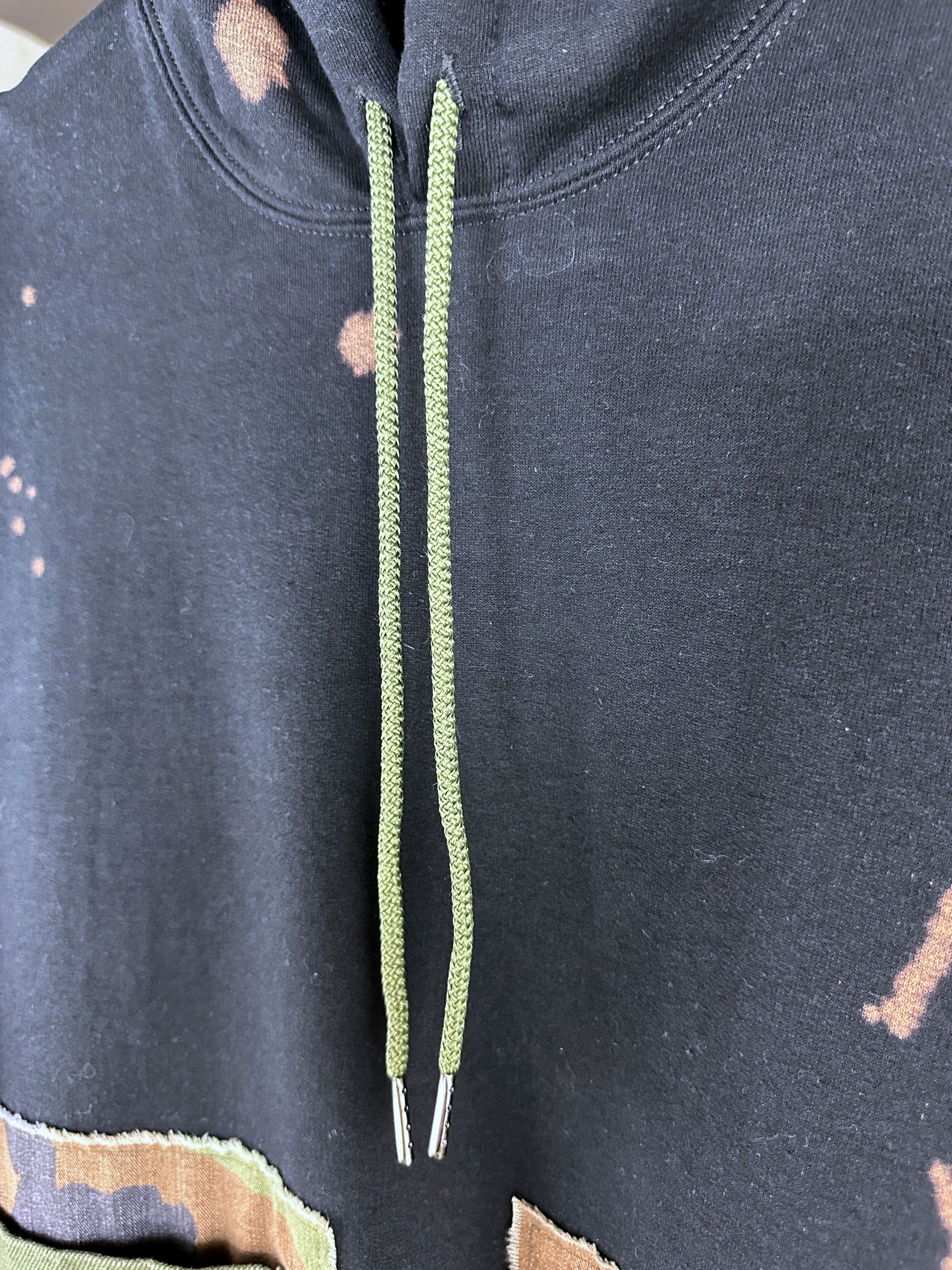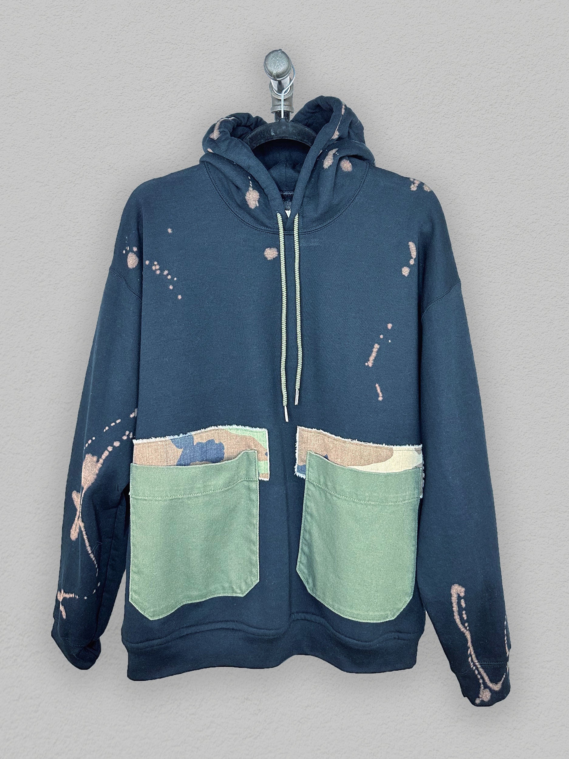 The Finn: A hoodie that's anything but basic. Made from upcycled materials and featuring unique camo pockets. Stand out from the crowd with the bleach design detail. Comfortable, fashionable, and sustainable!