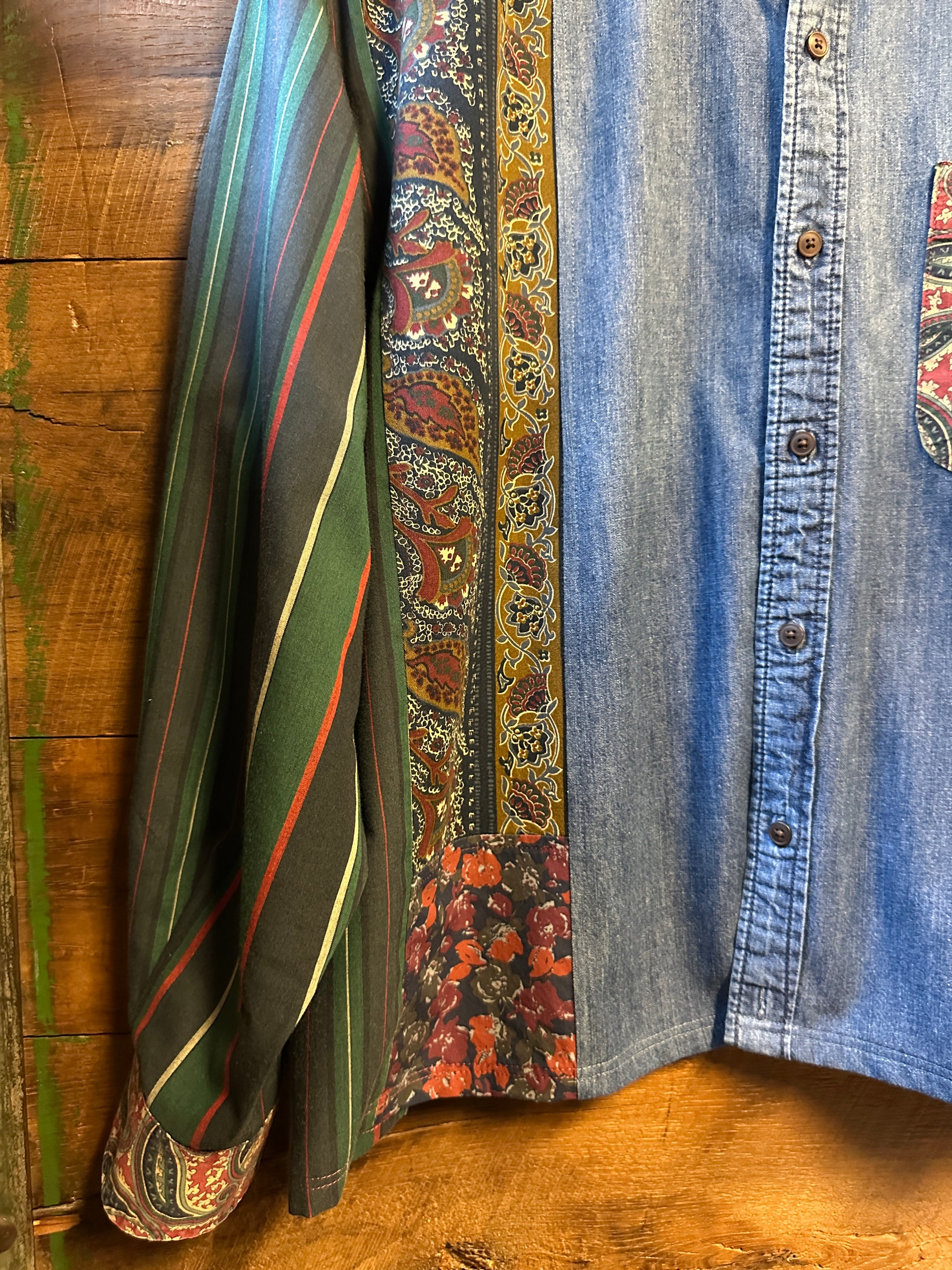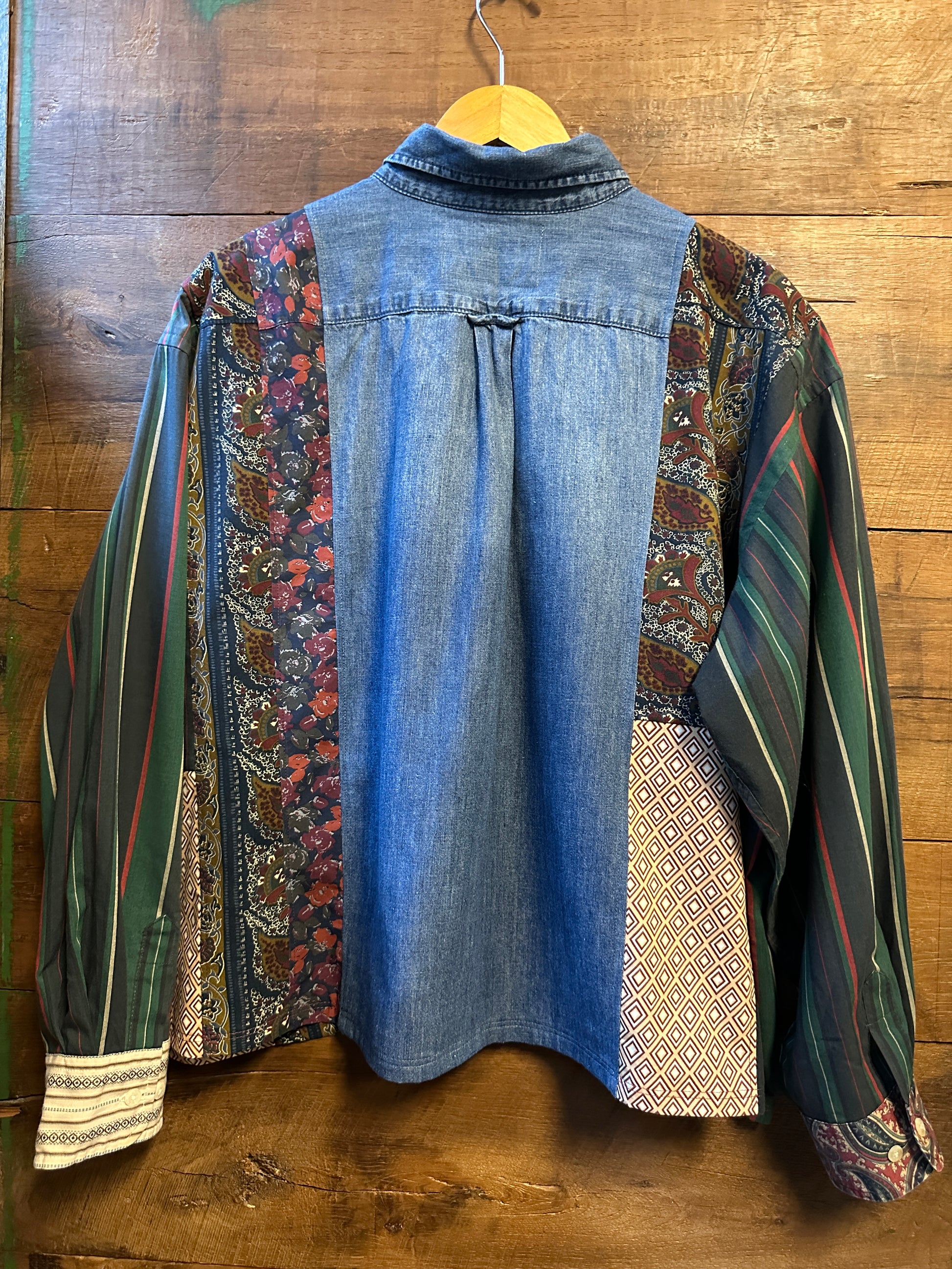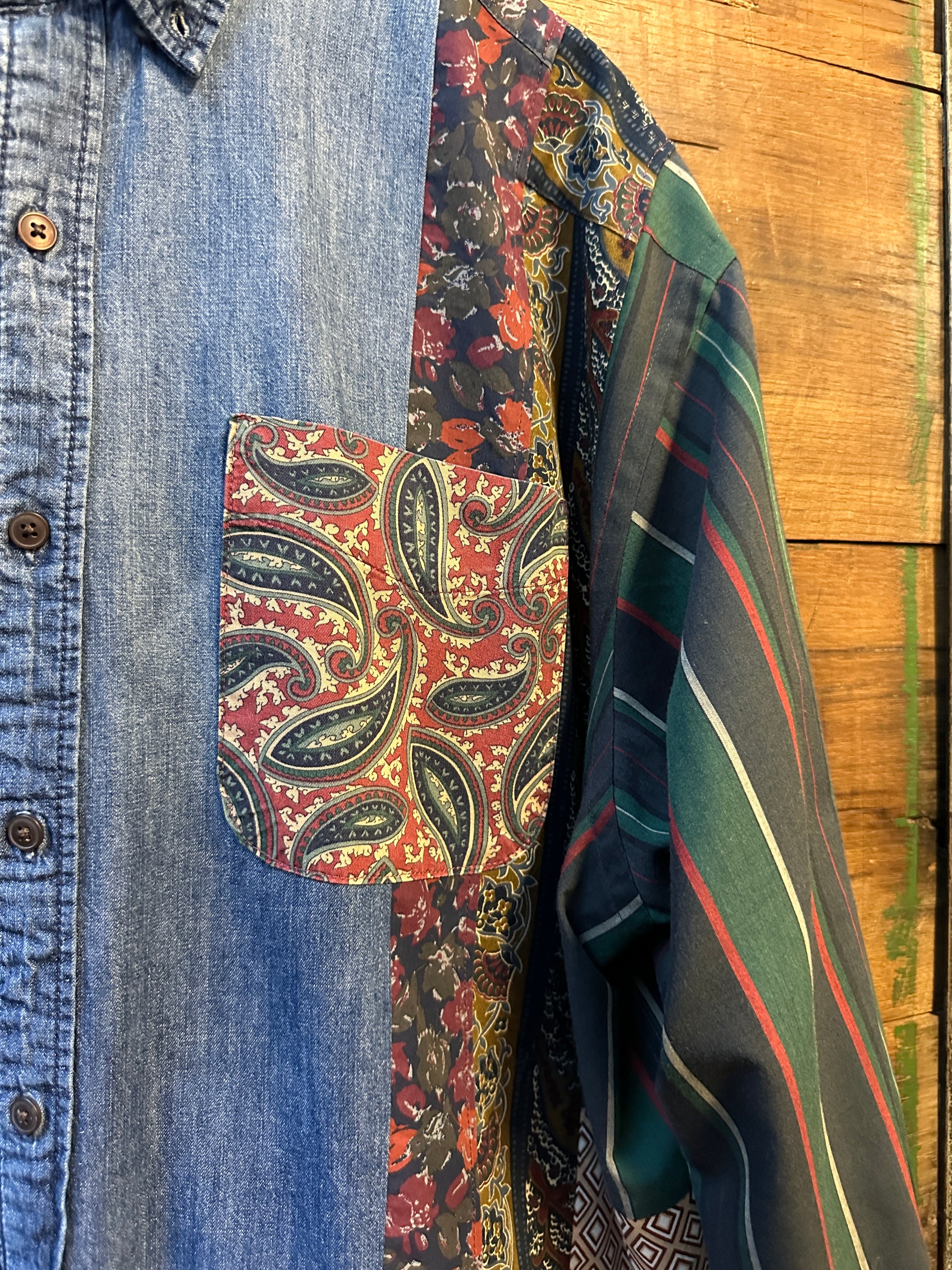 The Florence is an intentionally oversized shirt crafted from upcycled pieces of seven different shirts, creating a playful patchwork of contrasting prints. Lightweight and soft, it offers a relaxed fit that’s perfect for layering or making a bold statement on its own. Embrace unique style with this one-of-a-kind, eco-friendly favorite.