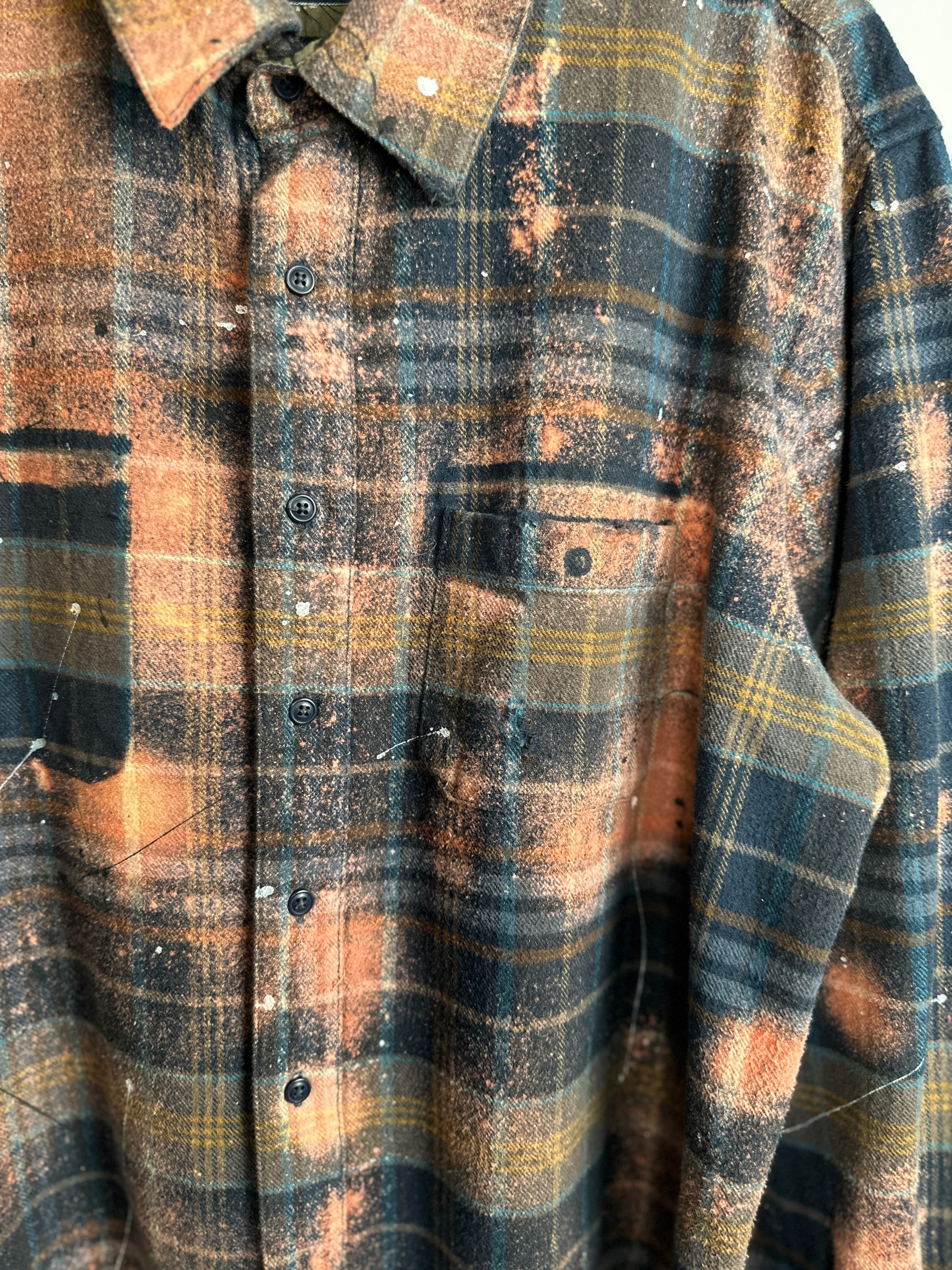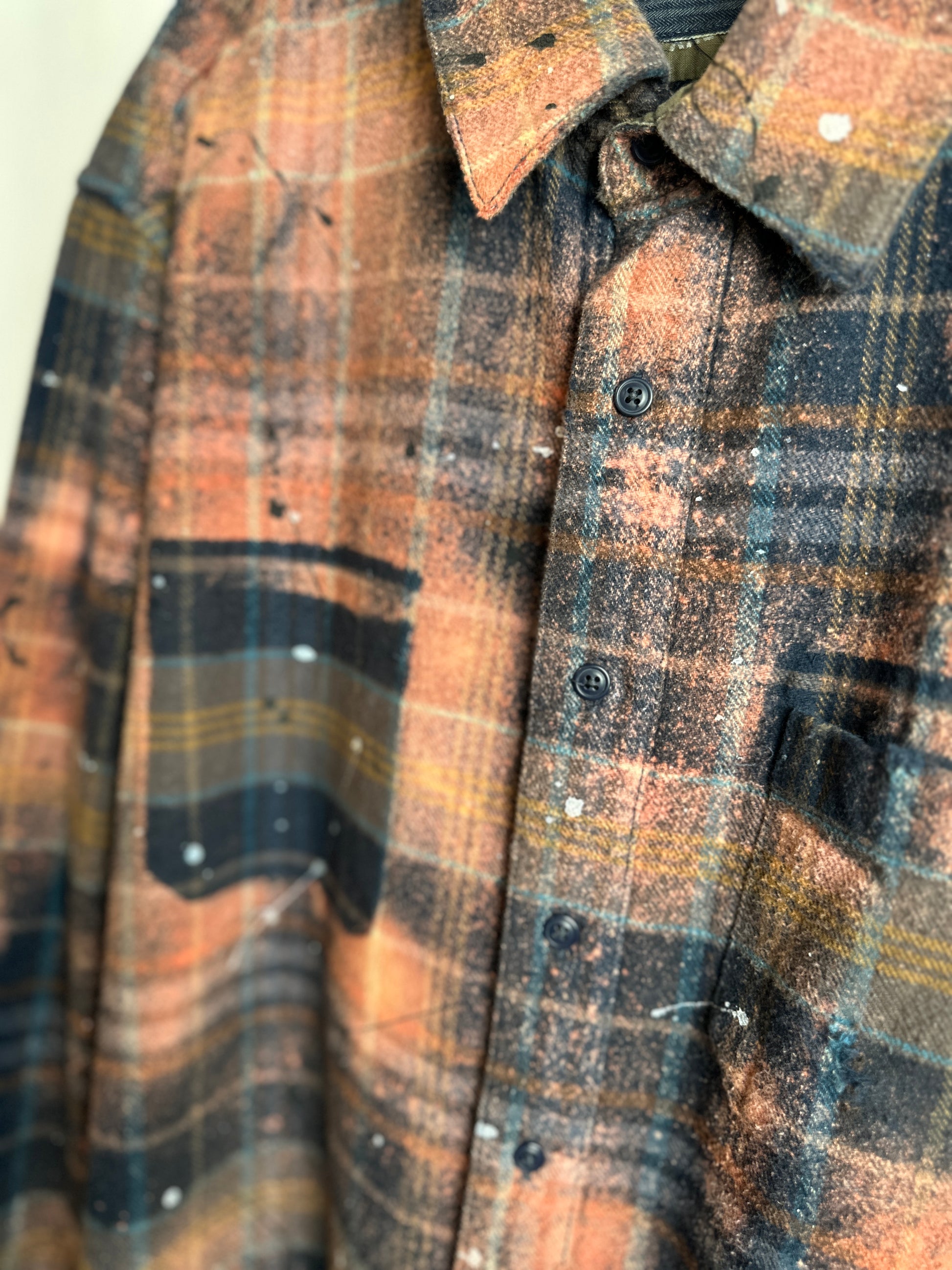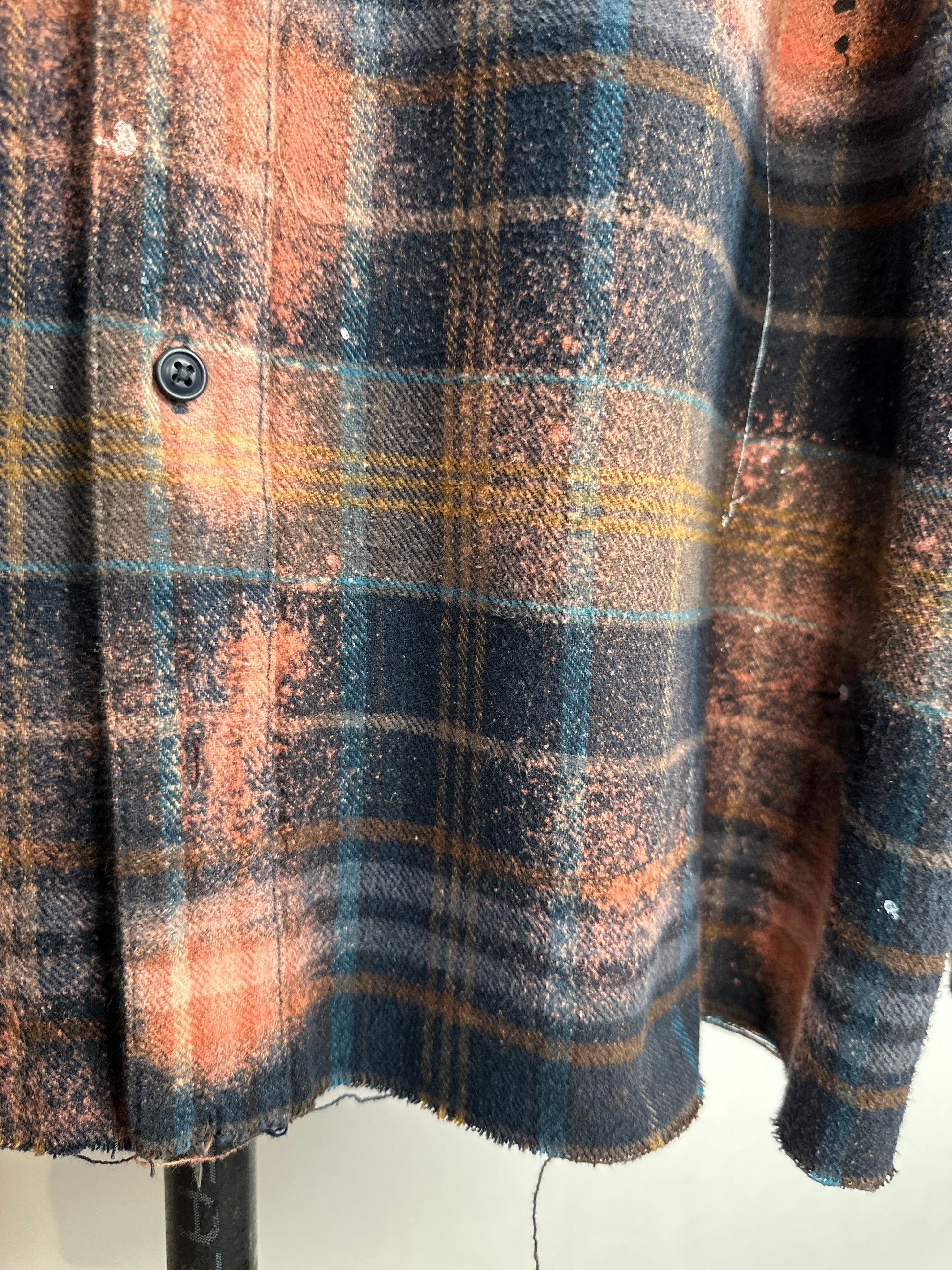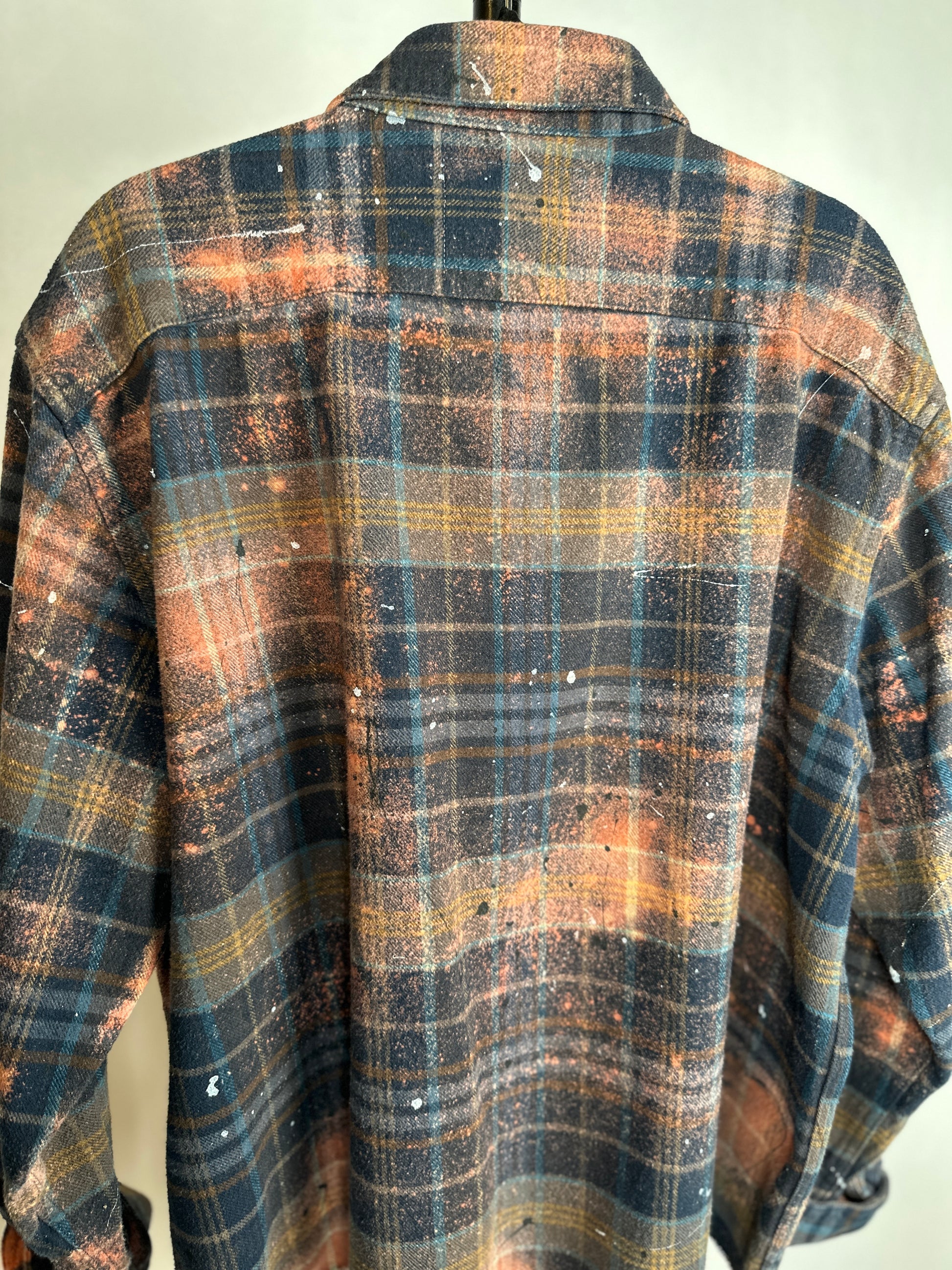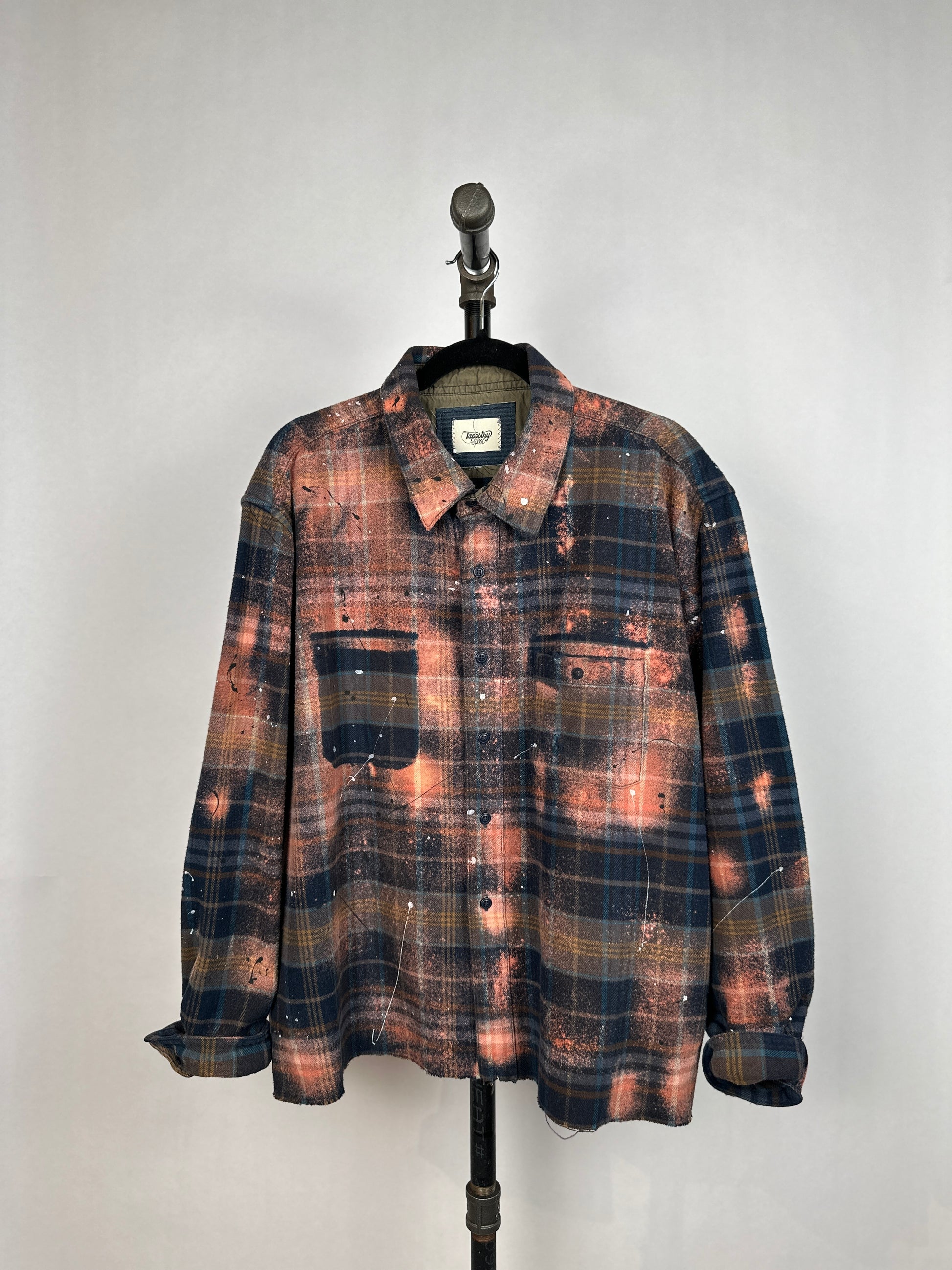 Introducing The Garfunkle, the oversized flannel shirt that breaks all the rules. Made from upcycled heavyweight fabric, uniquely bleached and splatter painted for a one-of-a-kind design. The raw edge hemline and slight distressing add to its edgy charm. Fashion with a conscience never looked so good!