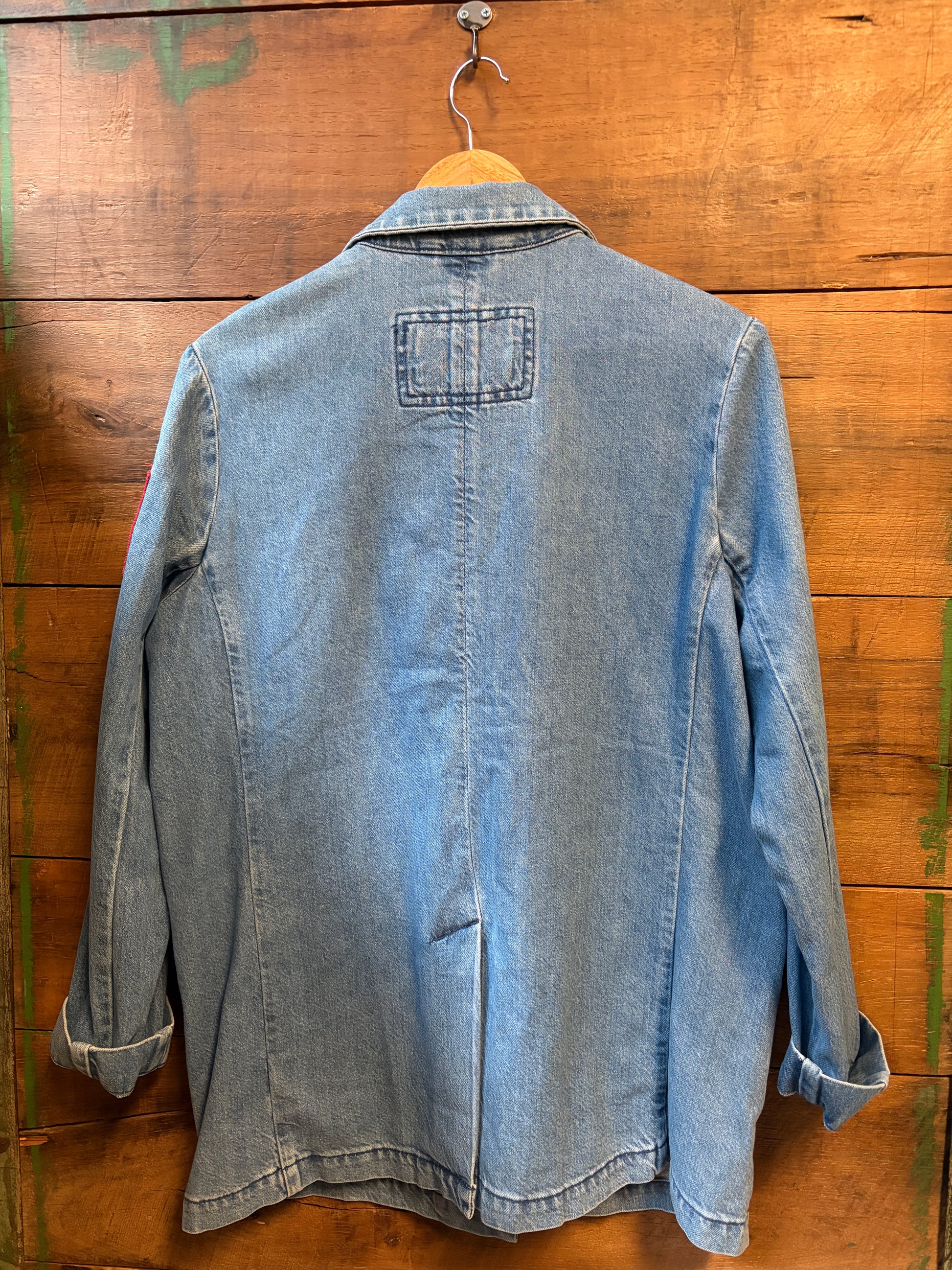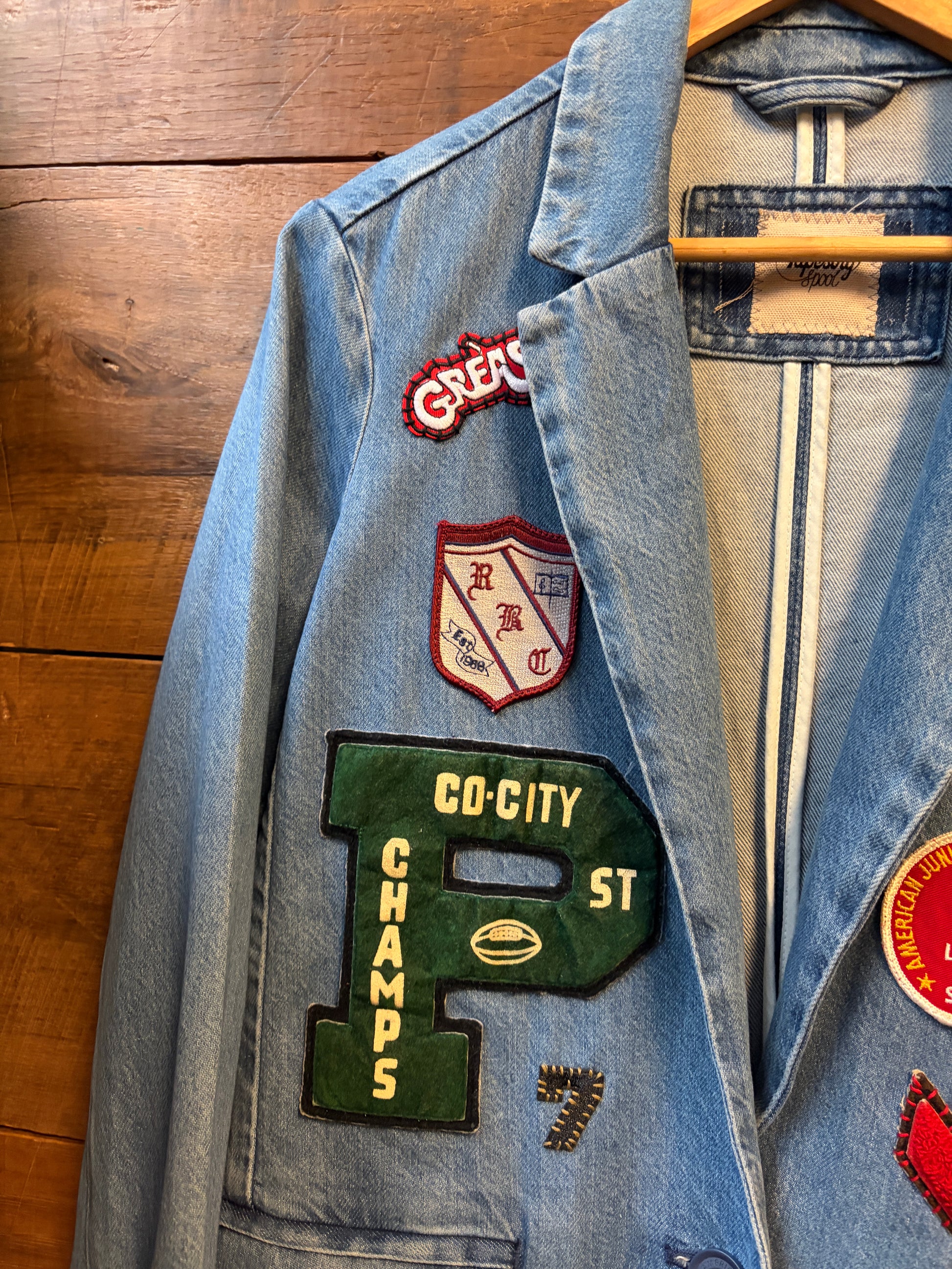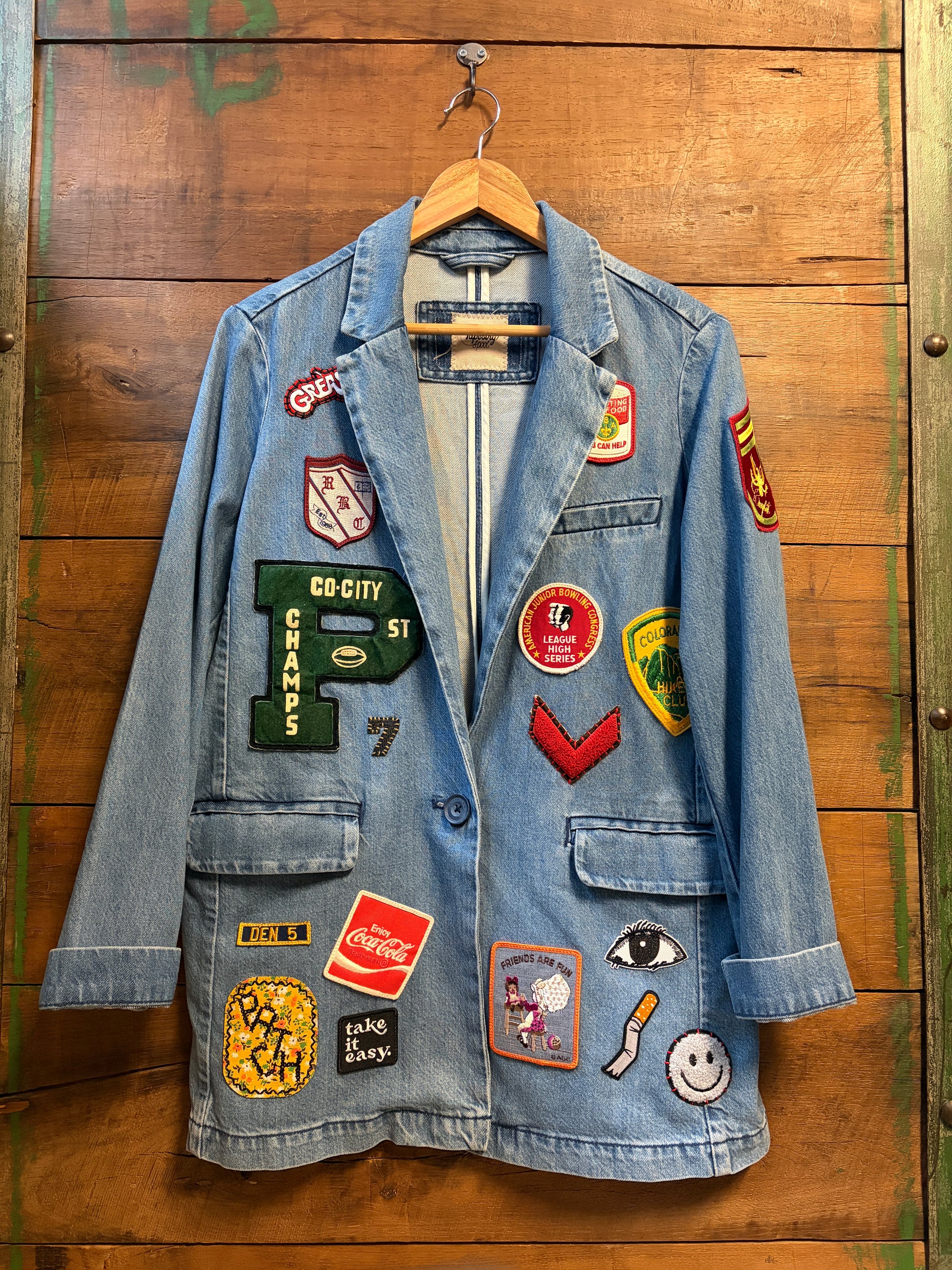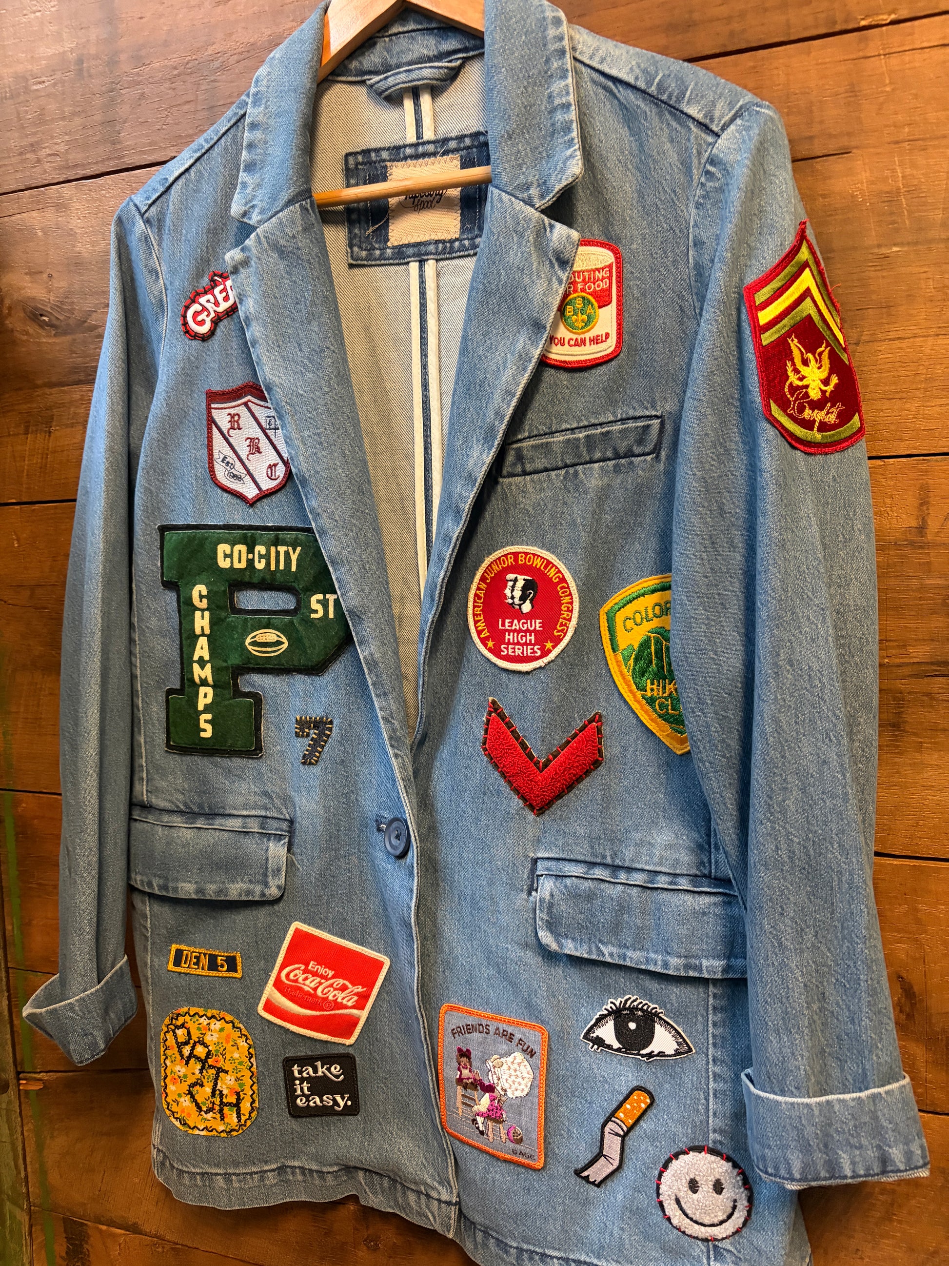 Meet The Georgie, your new favorite thrifted-meets-modern blazer. This relaxed-fit layer feels buttery soft against your skin while the subtle stretch keeps you comfy all day long. Stitched patches (many vintage) across the front add personality and charm, making each piece totally one-of-a-kind. Throw it over anything for instant cool-vibes that feel effortlessly put-together.