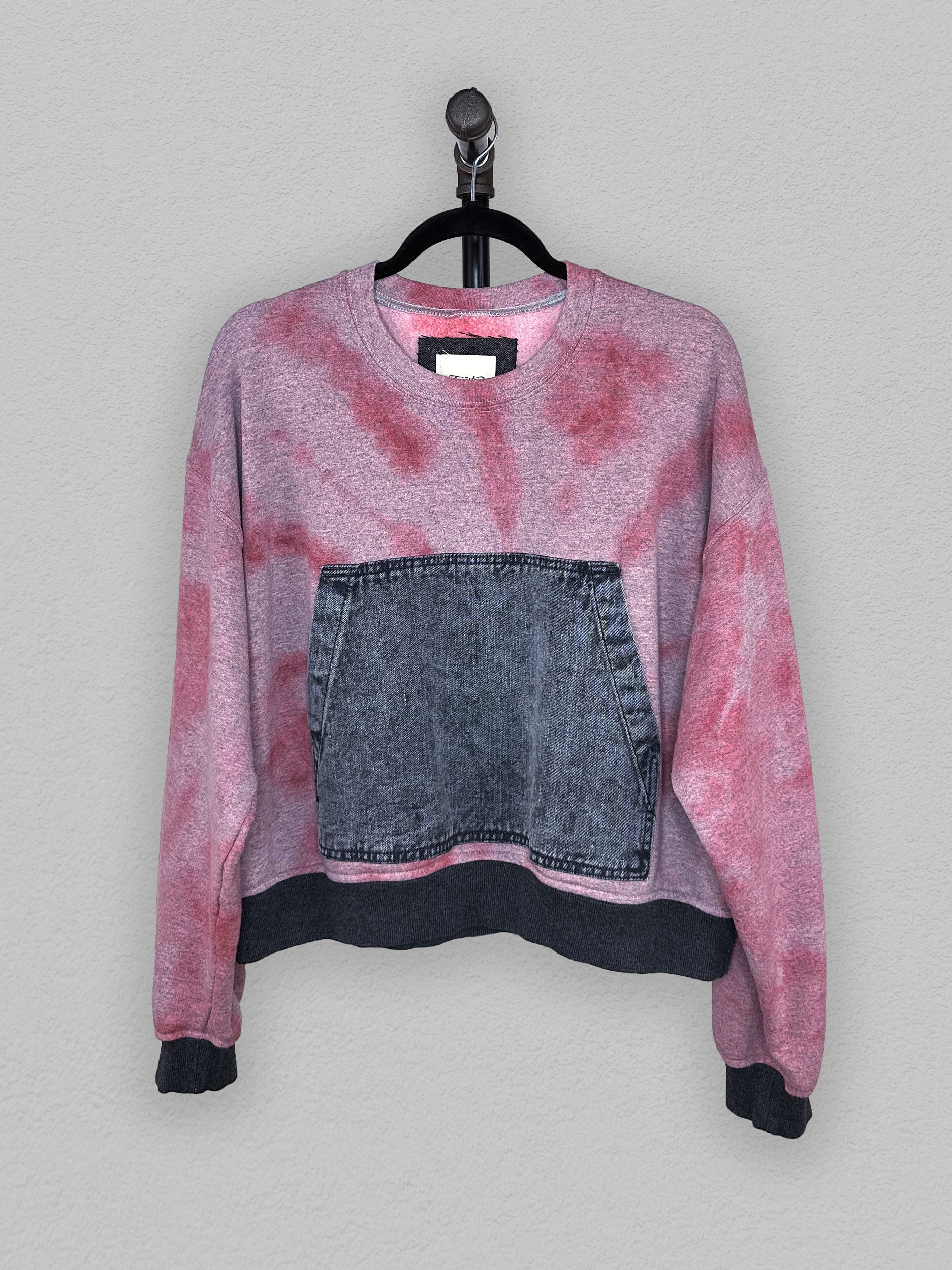 Introducing The Kylo, the ultimate sustainable fashion statement! Made with an upcycled tie dye sweatshirt, this slightly cropped crewneck will add a pop of color to any outfit. Plus, the denim kanga pocket adds a unique touch for all your essentials. Stand out with The Kylo!