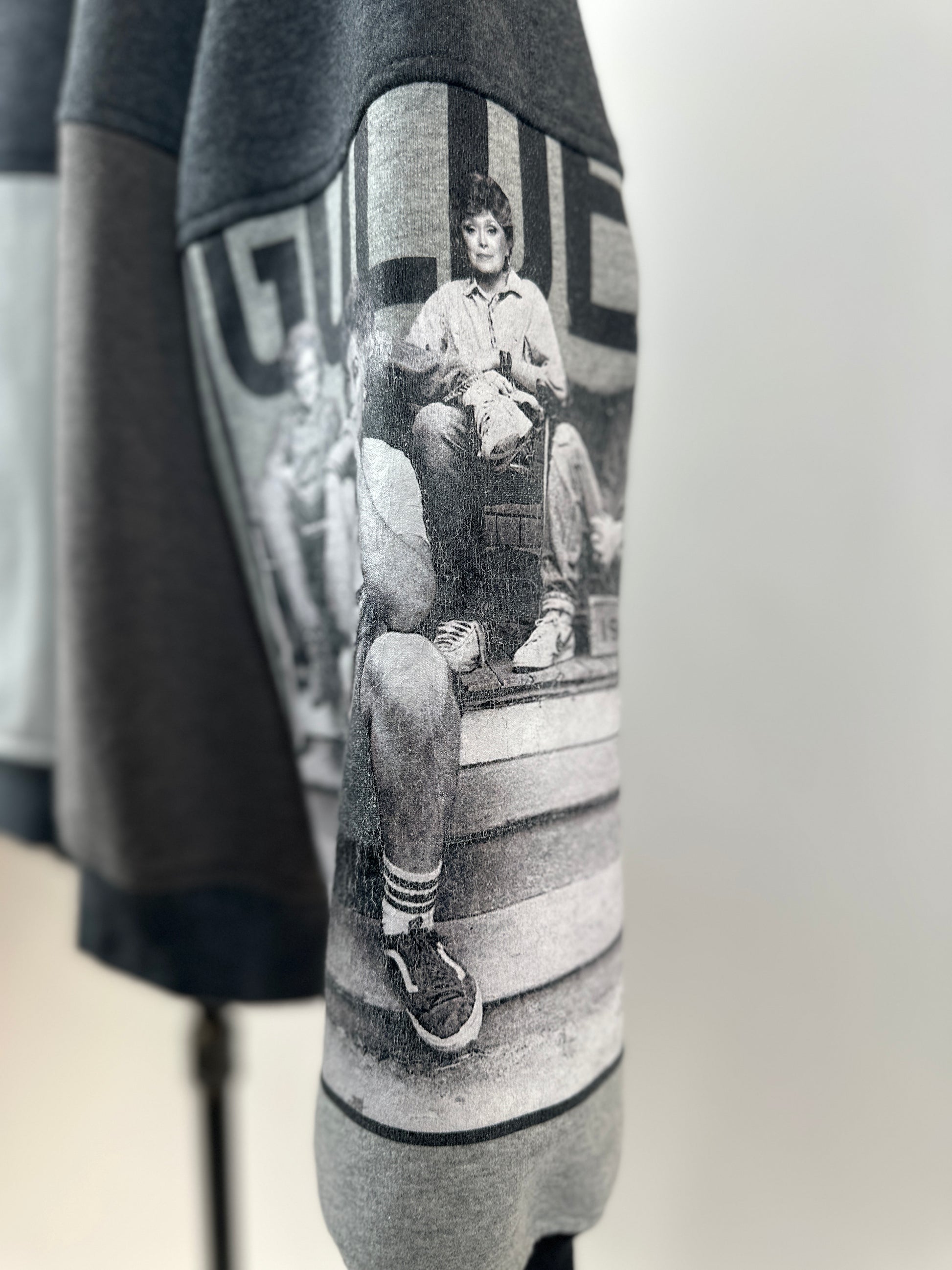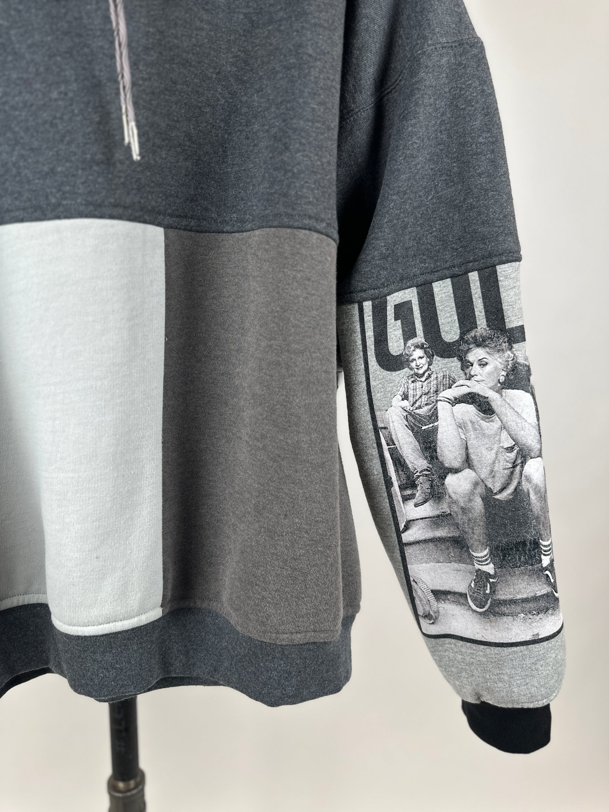 Introducing The Maude, the quirkiest hoodie around! Made from upcycled materials, it features a bold color block design and a Golden Girls graphic on the sleeve (perfect for all you Blanche, Rose, Dorothy, and Sophia fans out there!) Oversized and soft, sure to be one of your favorites.