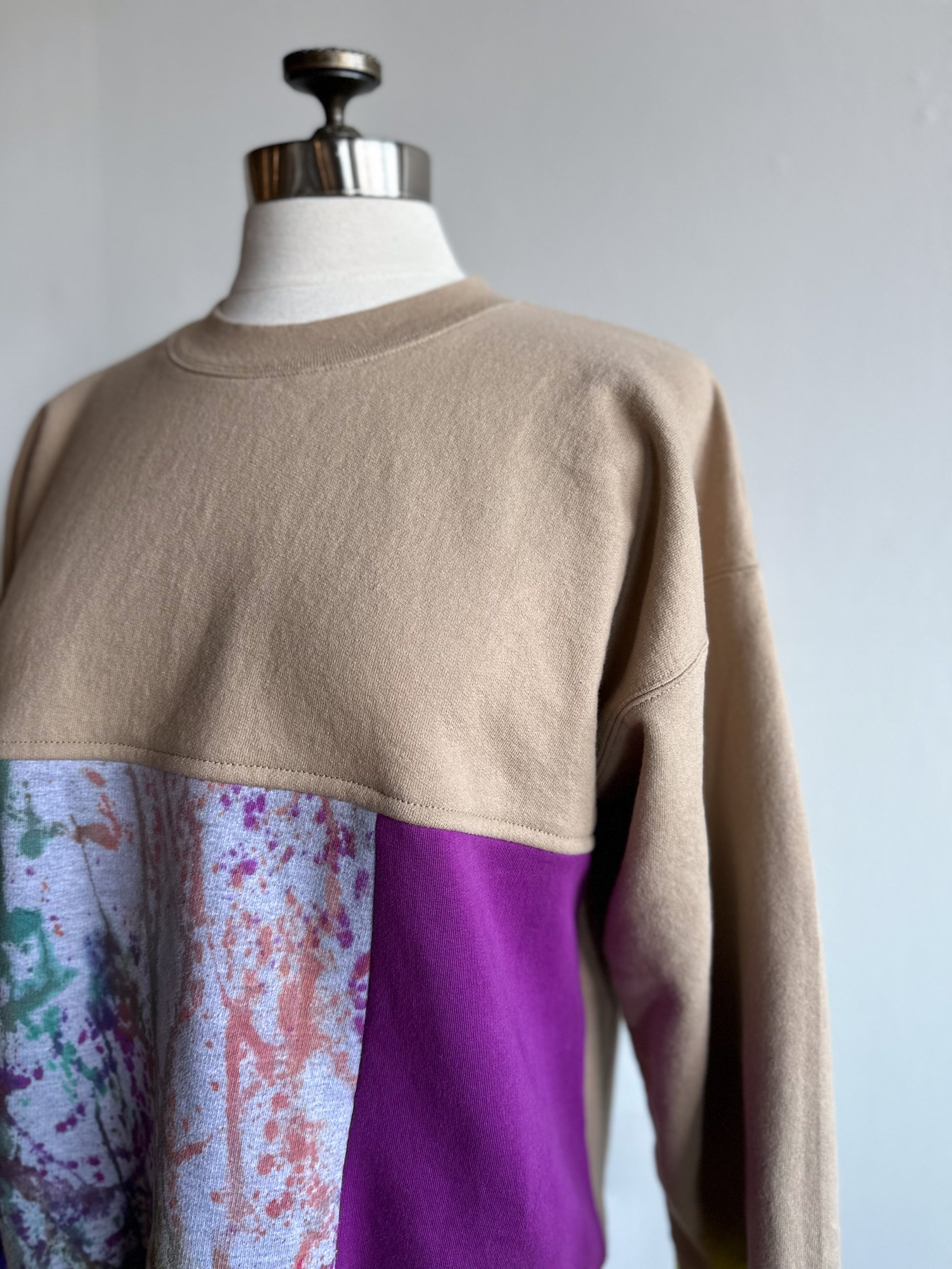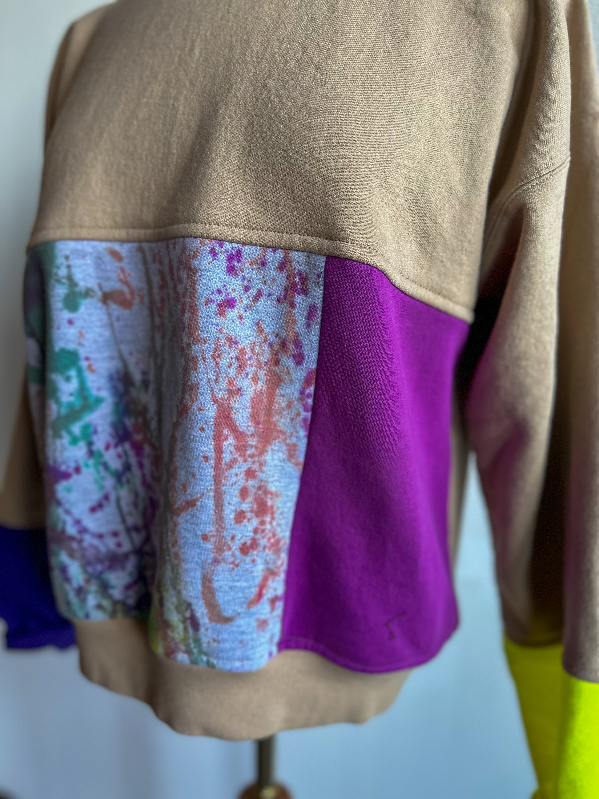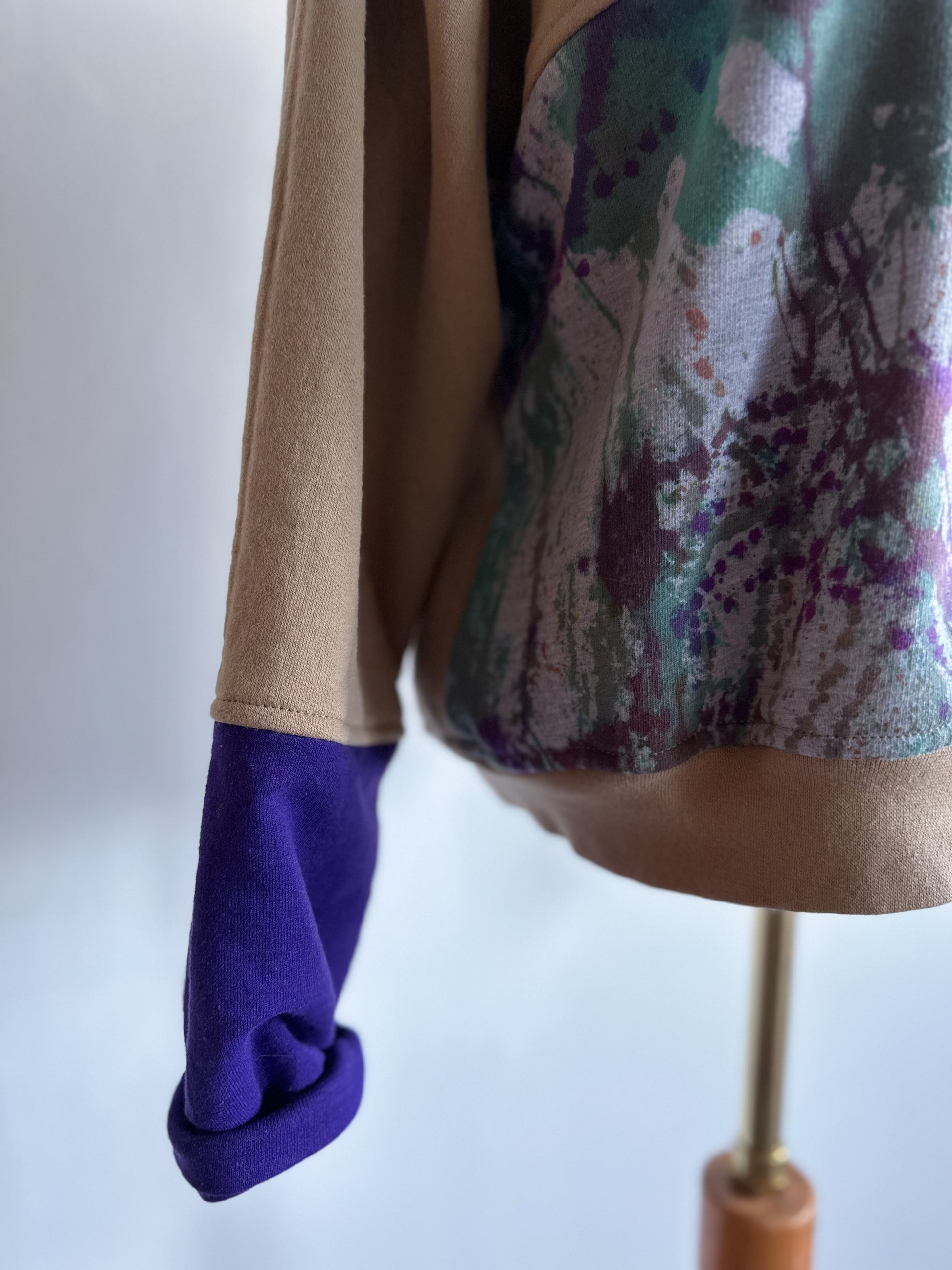 Get ready to rock The Misha, the ultimate upcycled crewneck sweatshirt! With a playful color block design and unique tie dye pattern, this sweatshirt is sure to turn heads. Slightly cropped, relaxed fit in a medium weight knit.