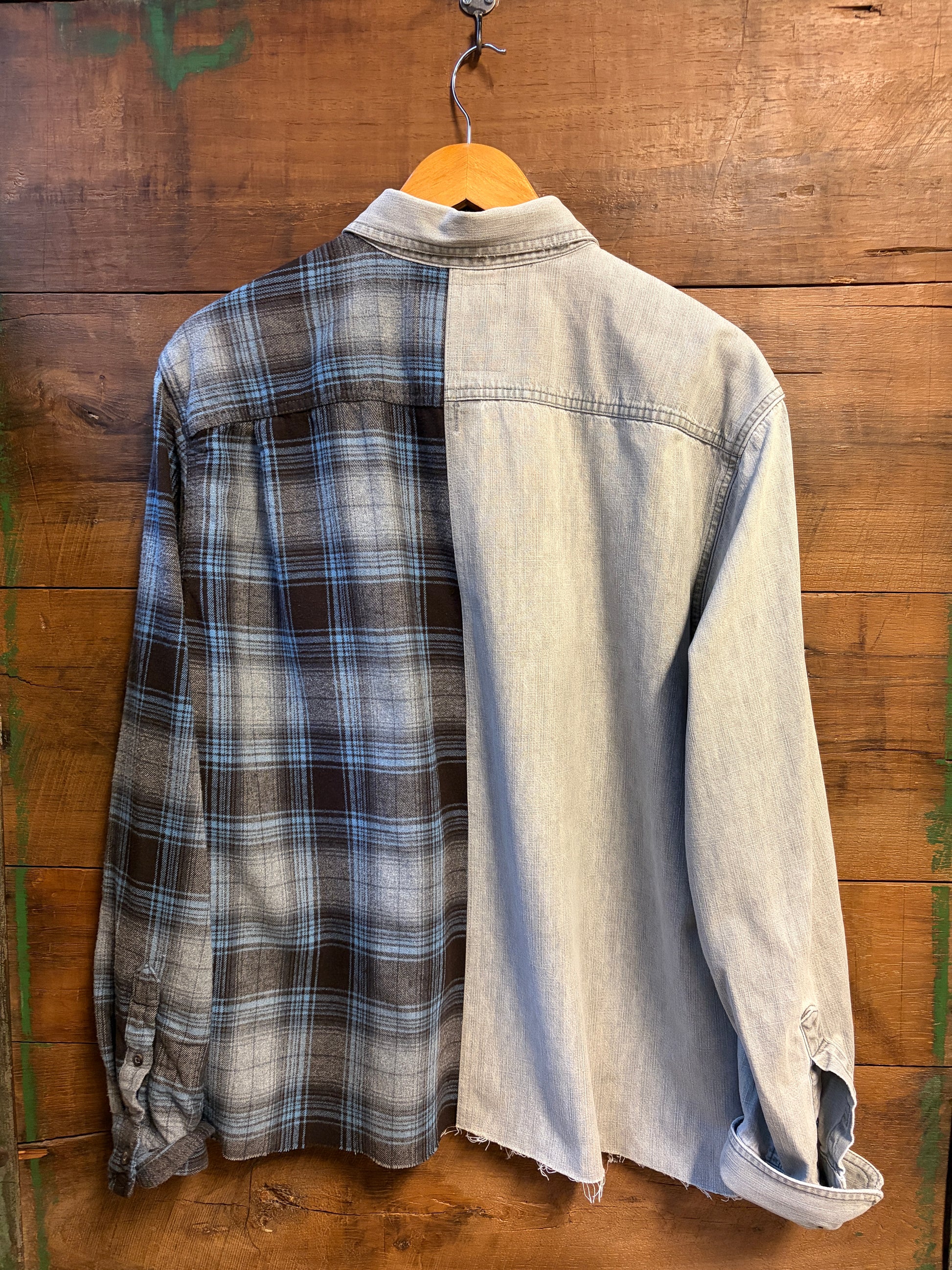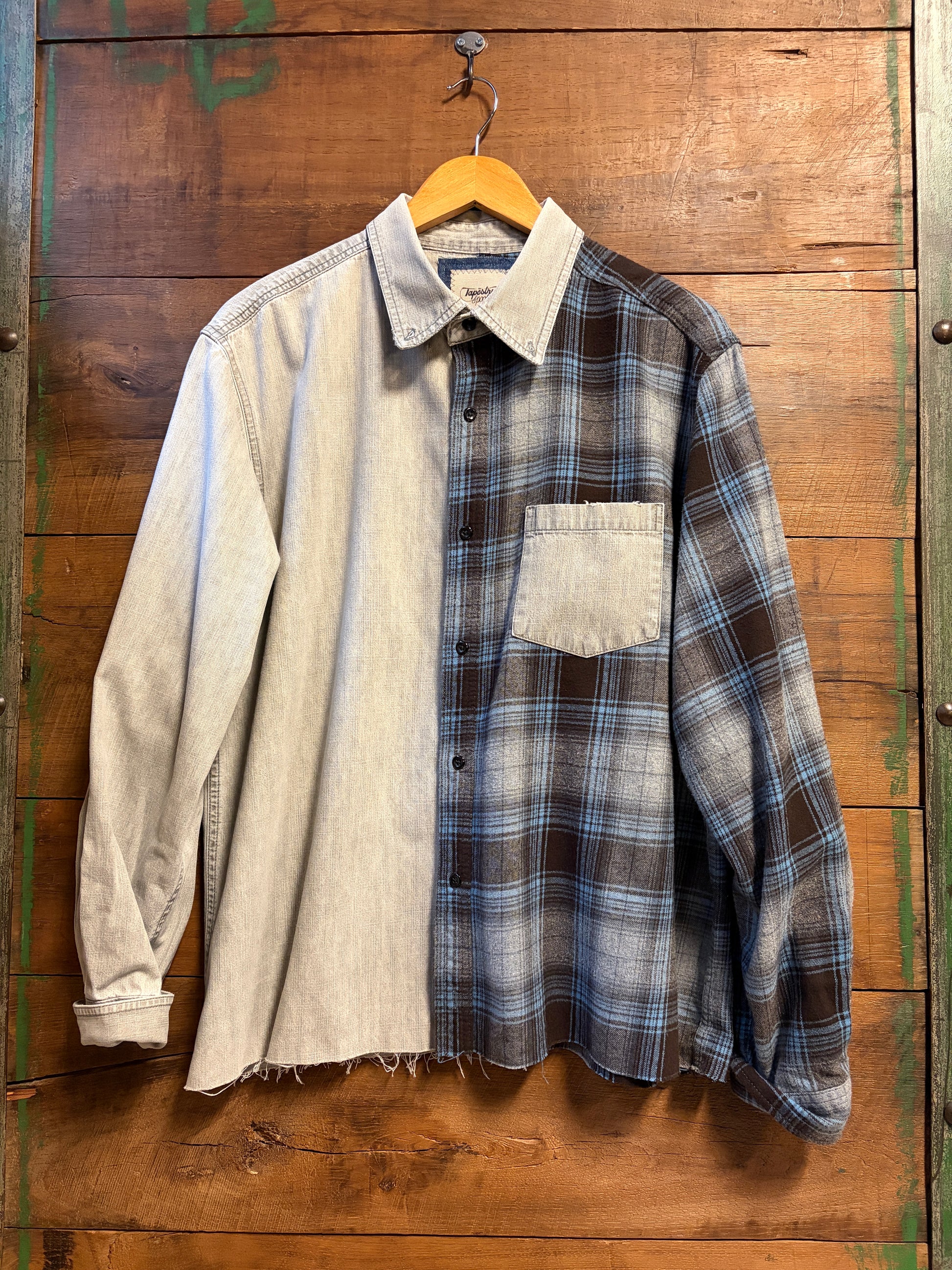 The Nevada is your new favorite thrift-store find—except we made it for you. This oversized beauty splits the difference between classic denim and cozy flannel, each side bringing its own vibe to the party. Raw edges keep things intentionally undone, while the generous fit means you can layer it, tie it, or just let it hang loose. Upcycled from quality materials, it's a piece that proves sustainable style doesn't mean sacrificing personality.
