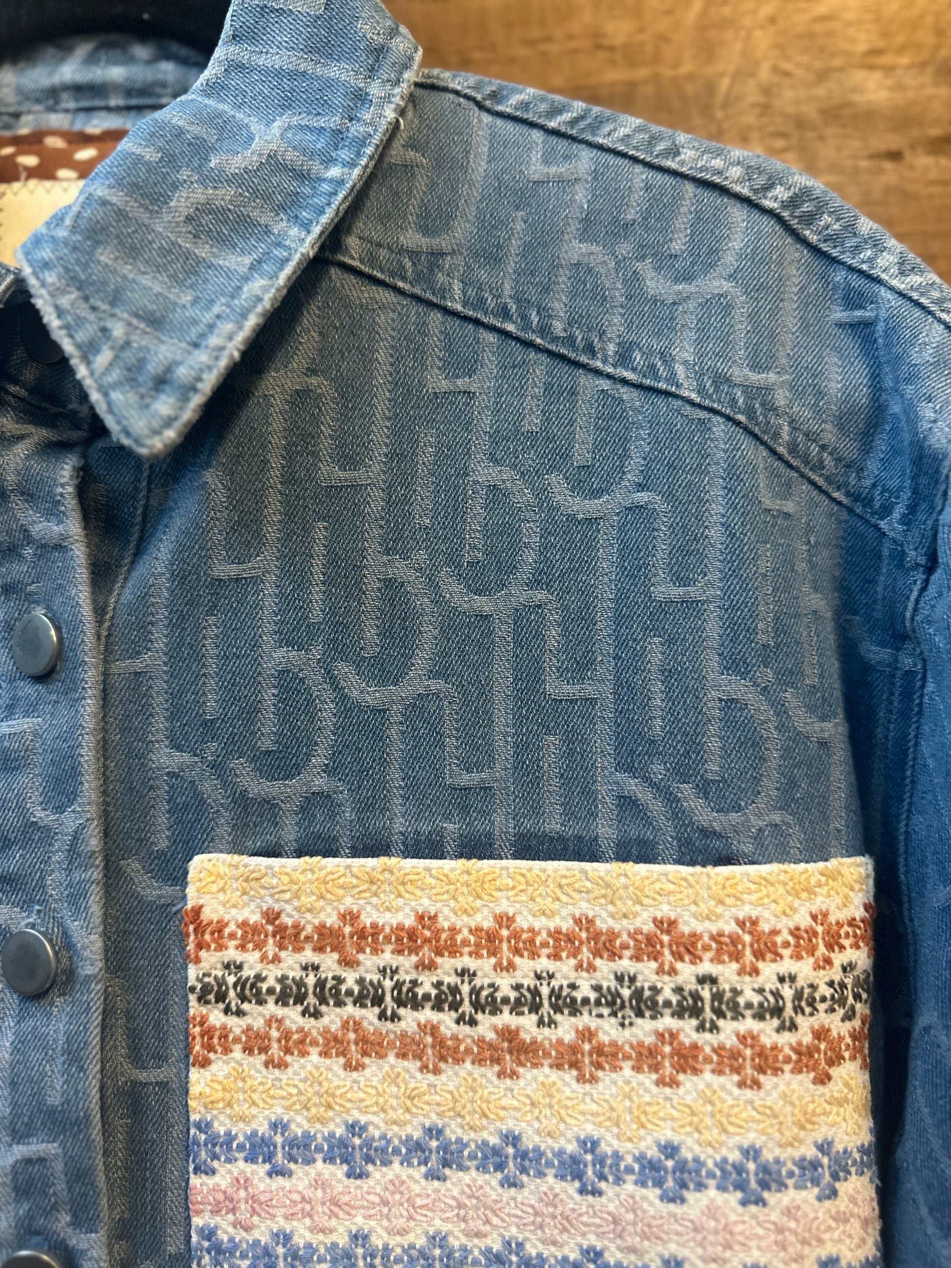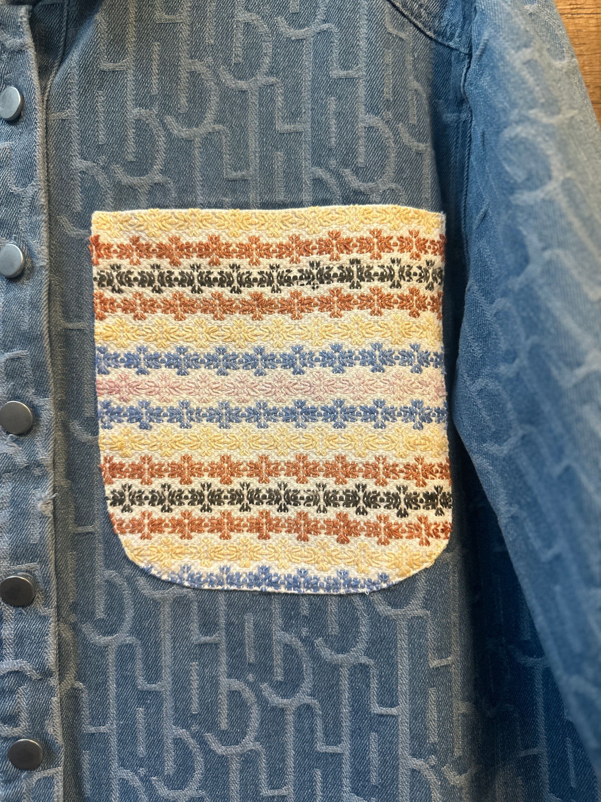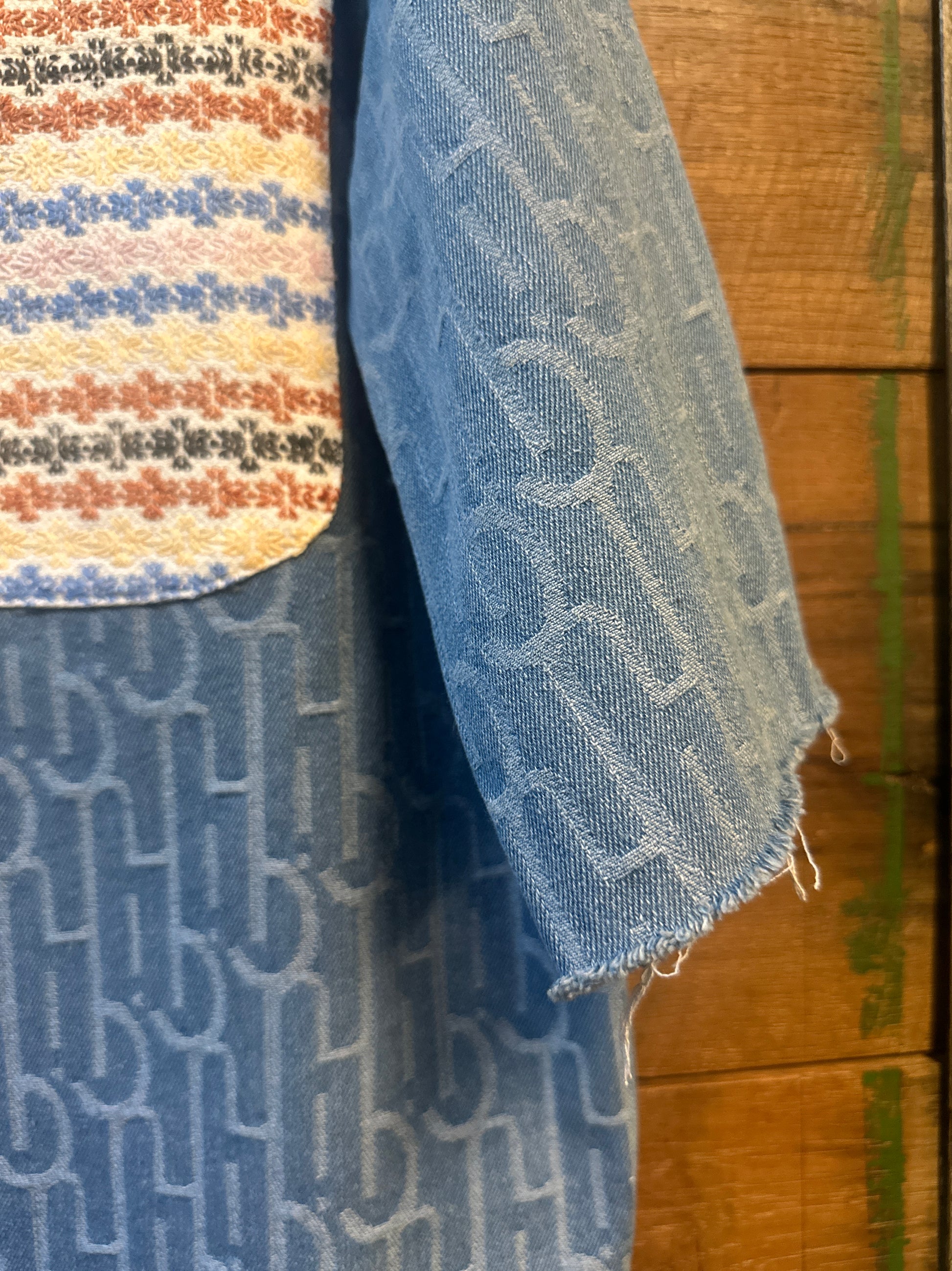 Introducing The Opie - a one-of-a-kind shacket made from an upcycled medium weight denim shirt. The textured fabric adds an extra touch of uniqueness, while the vintage towel pockets provide ample storage. With an oversized fit and raw hemlines, The Opie is the perfect blend of style and sustainability.