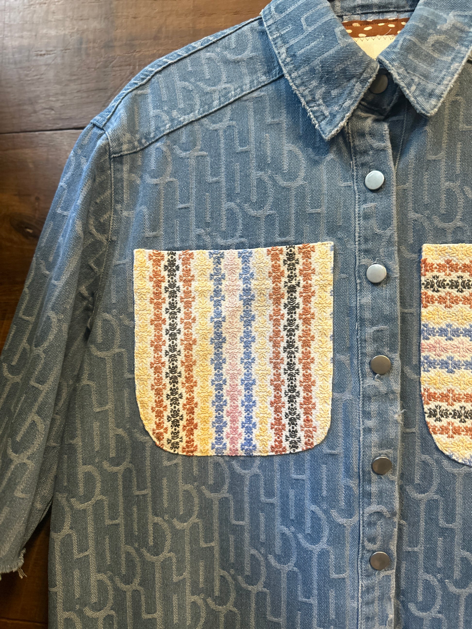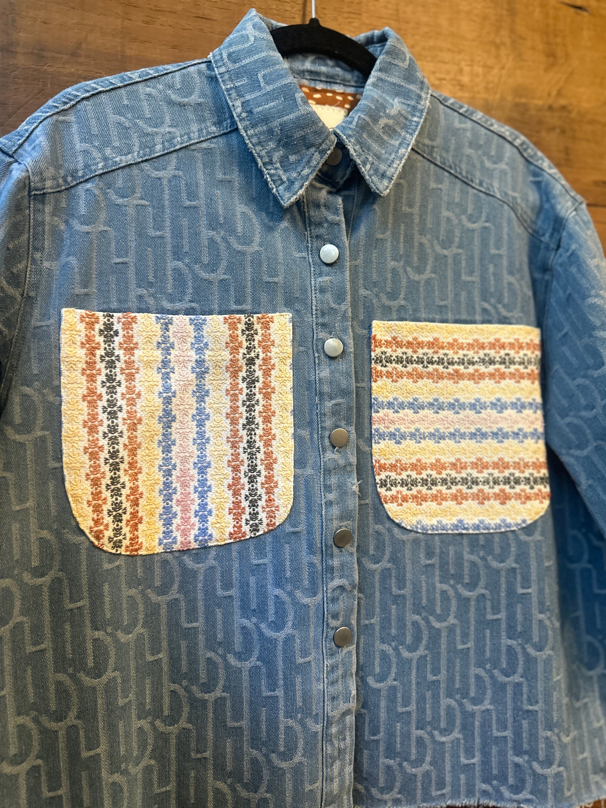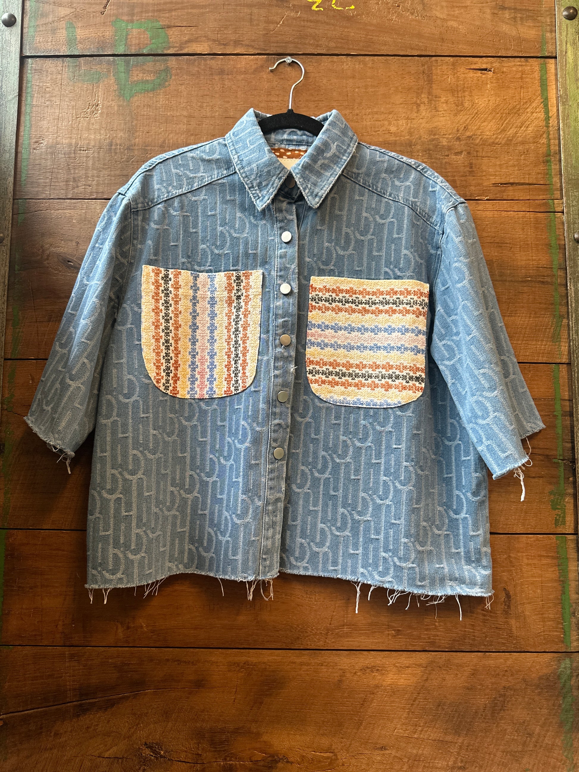 Introducing The Opie - a one-of-a-kind shacket made from an upcycled medium weight denim shirt. The textured fabric adds an extra touch of uniqueness, while the vintage towel pockets provide ample storage. With an oversized fit and raw hemlines, The Opie is the perfect blend of style and sustainability.
