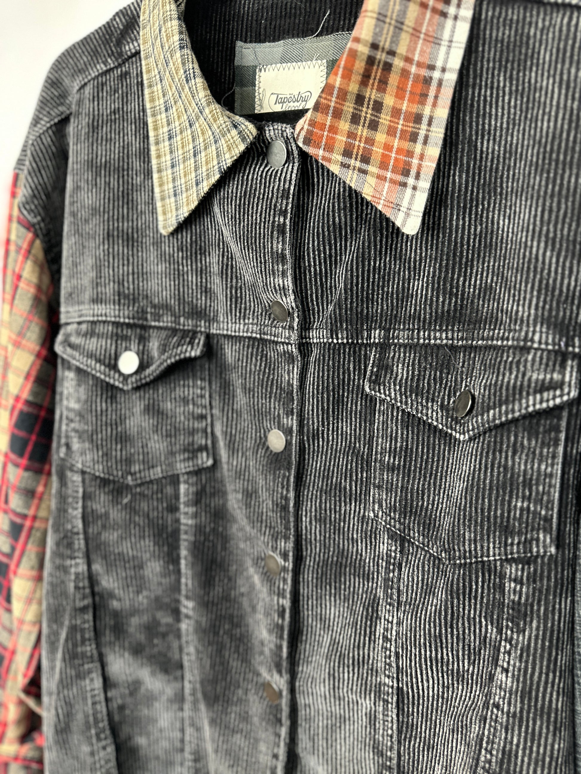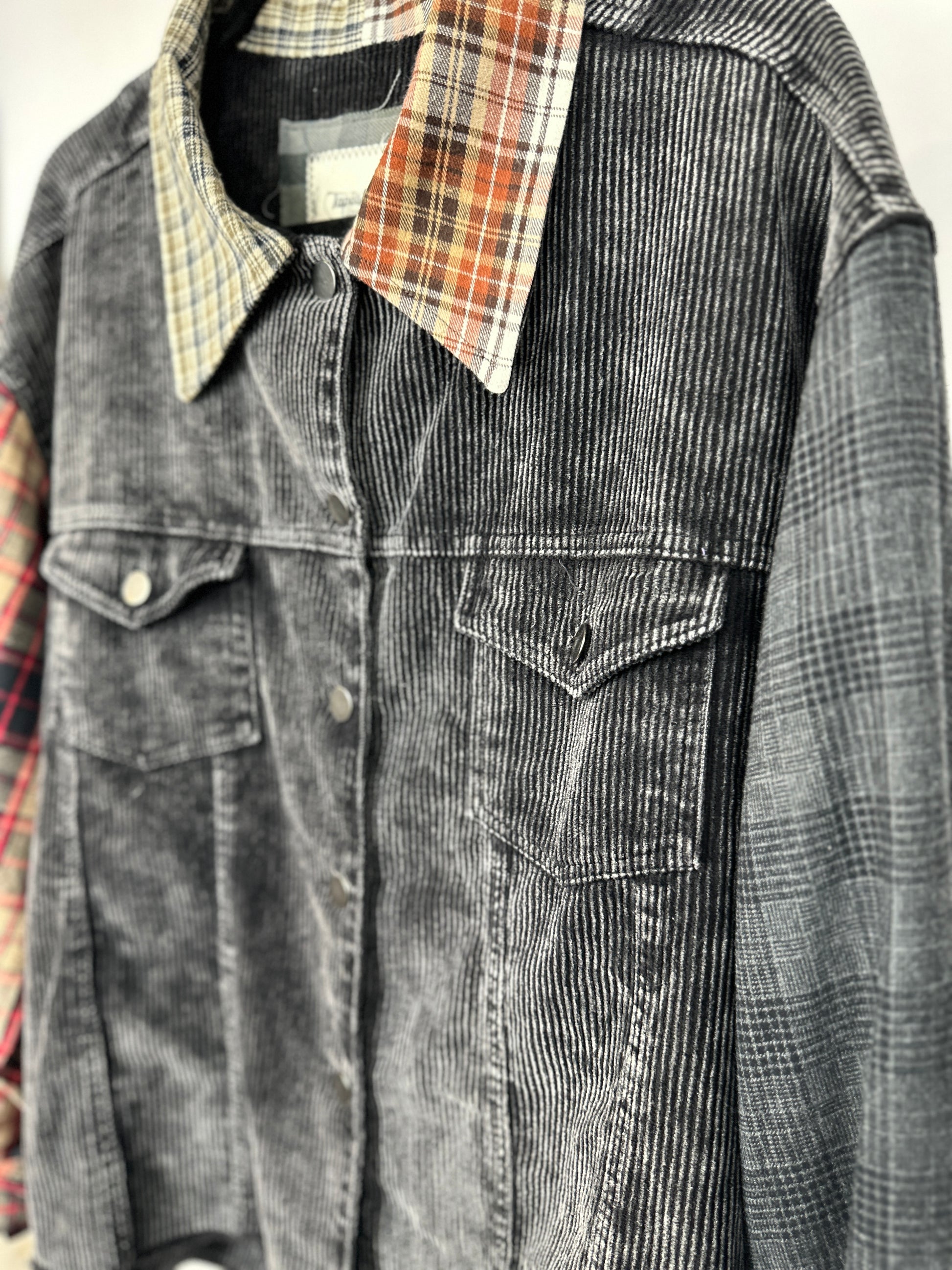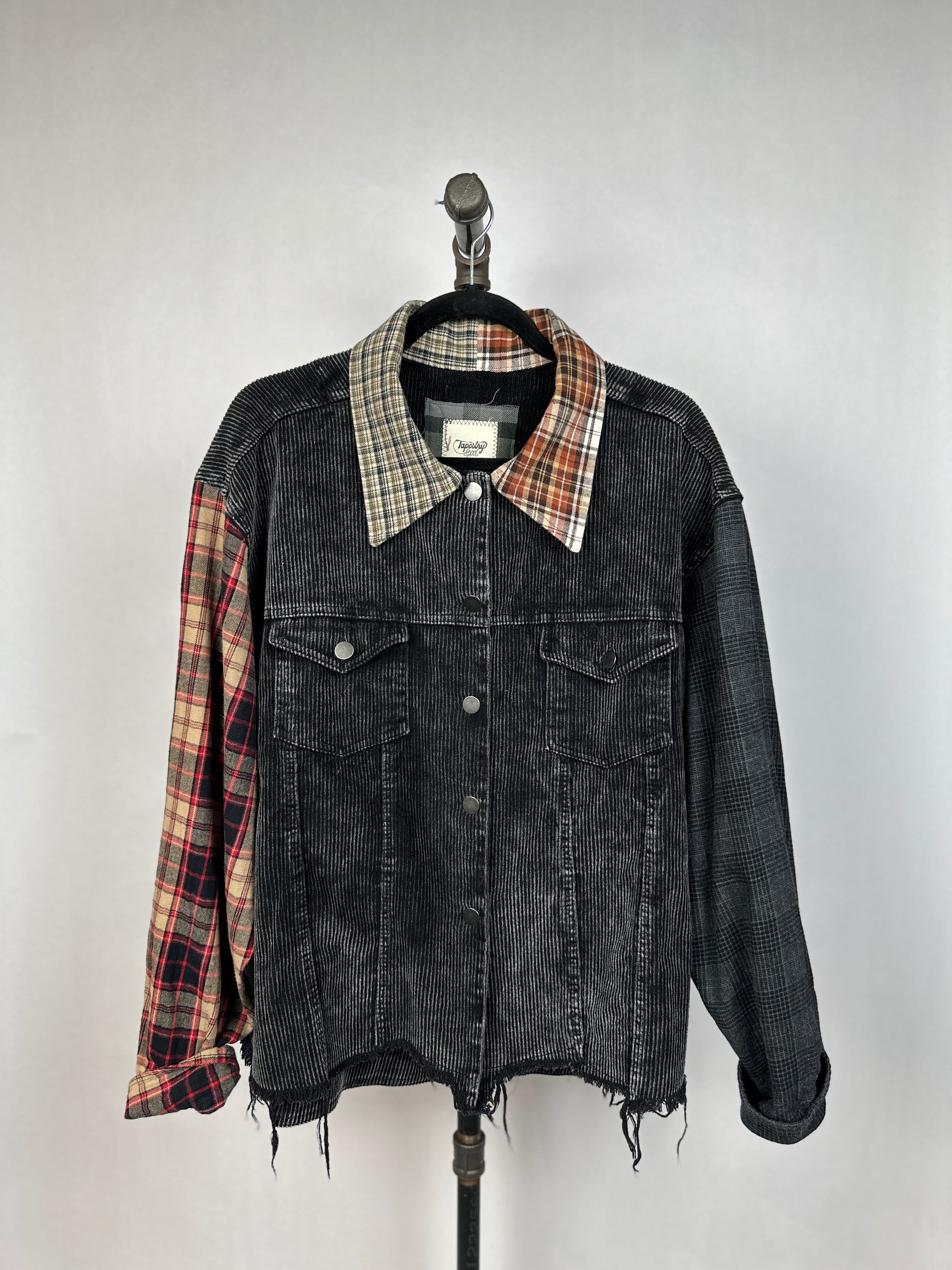 The Owen jacket: eco-friendly, uber cozy, and perfectly slouchy. Made from upcycled corduroy and adorned with a playful twist of contrasting plaid flannels on the collar and sleeves. Who says sustainable fashion can't also be stylish?