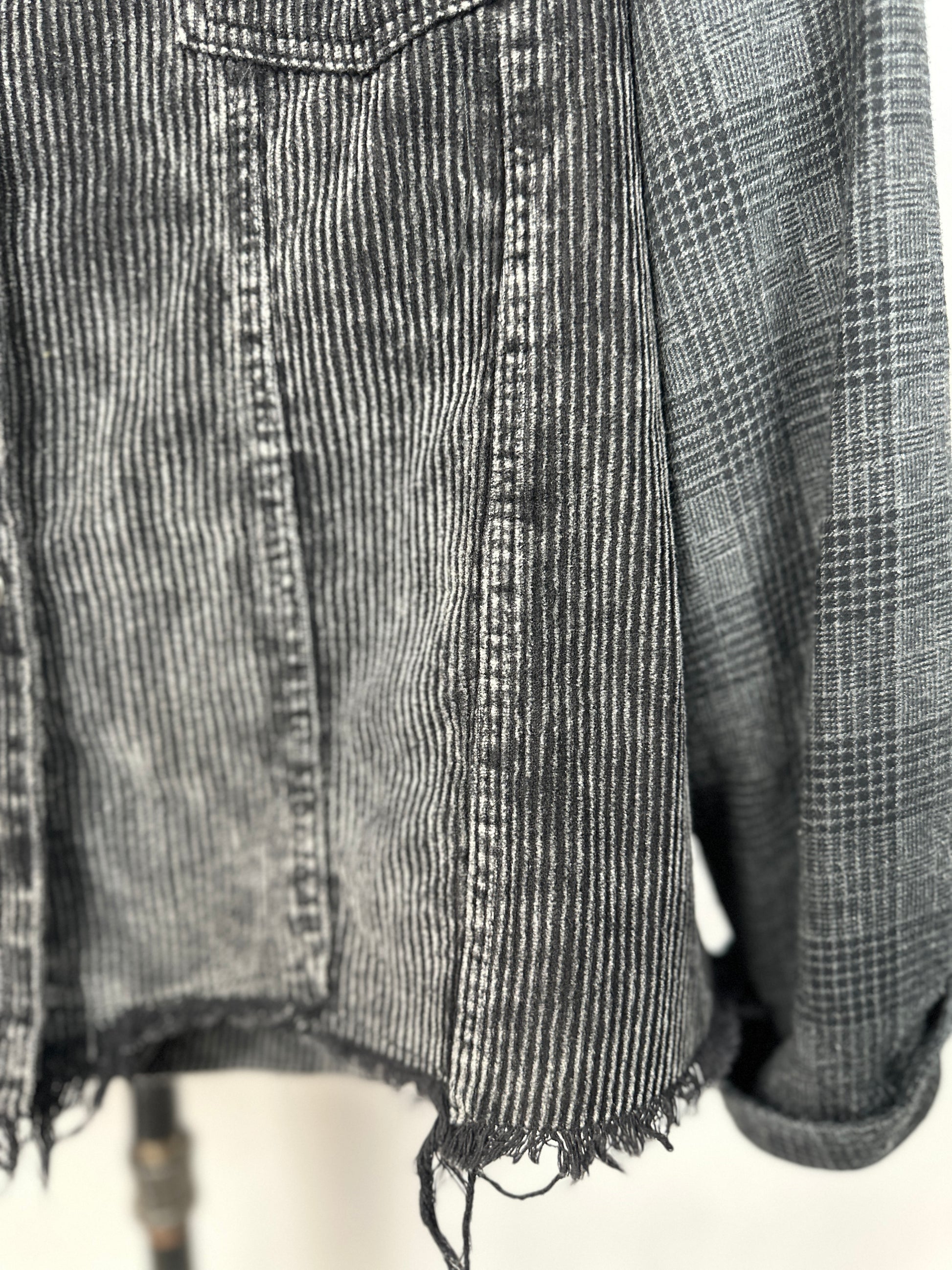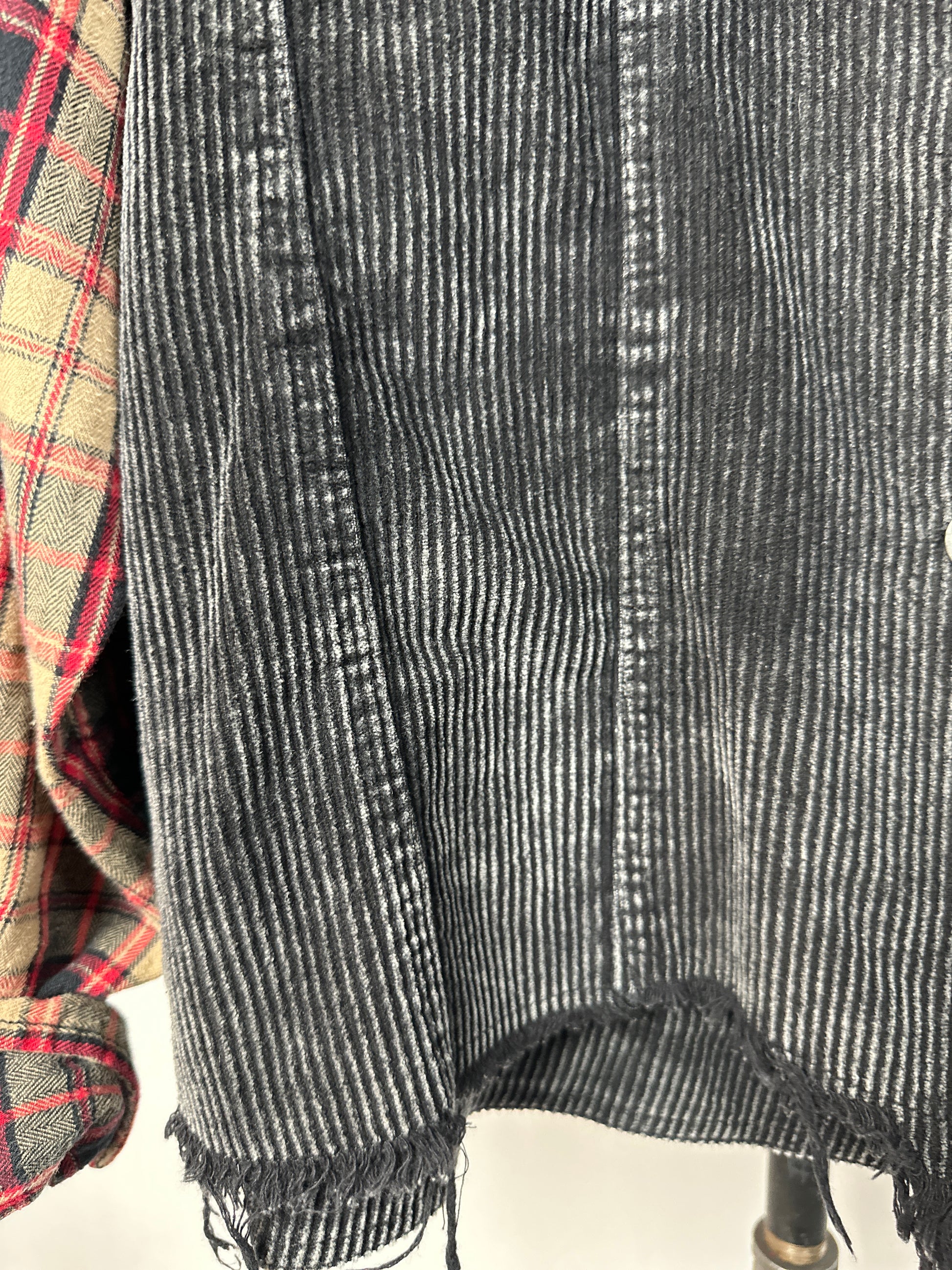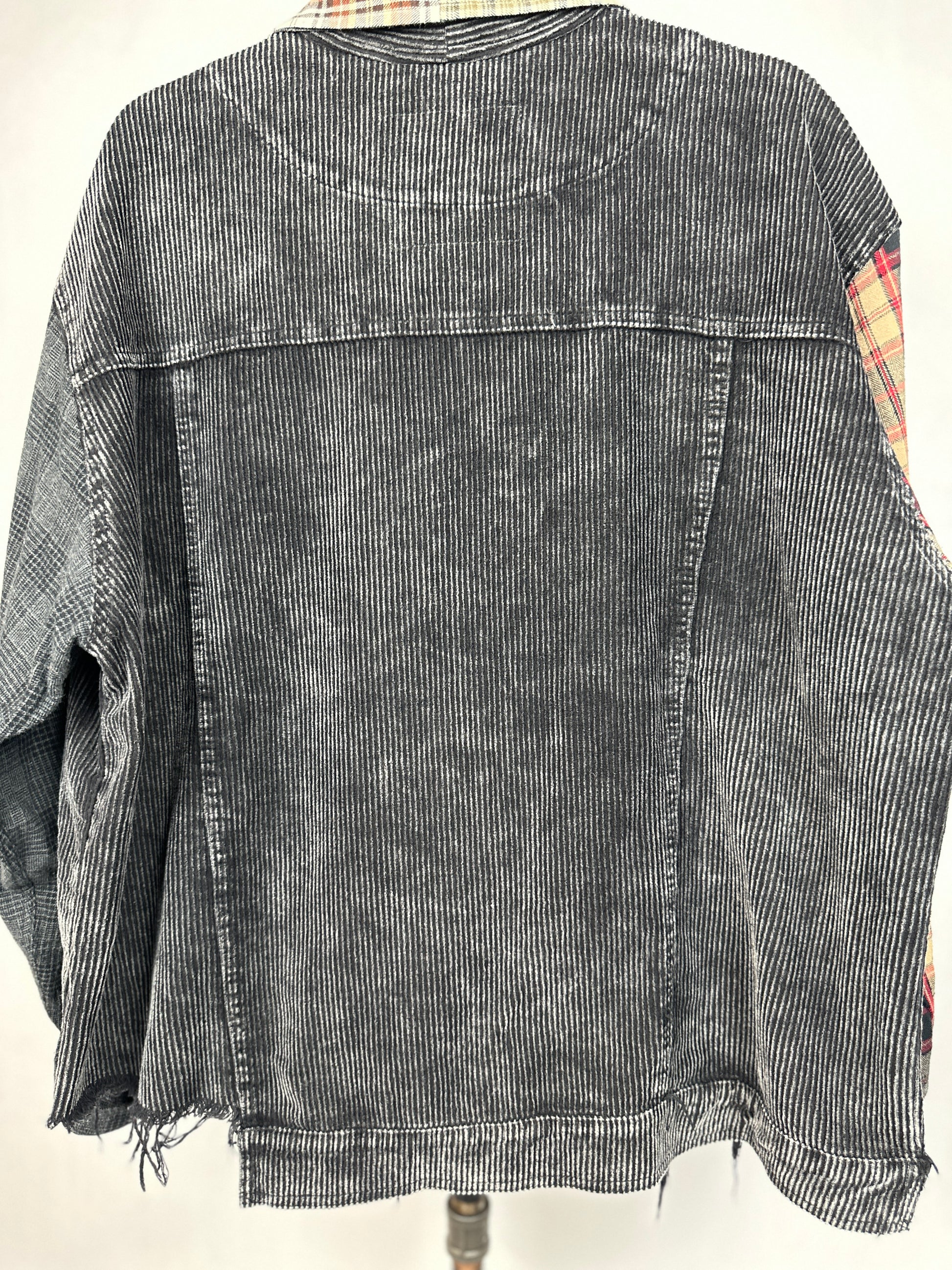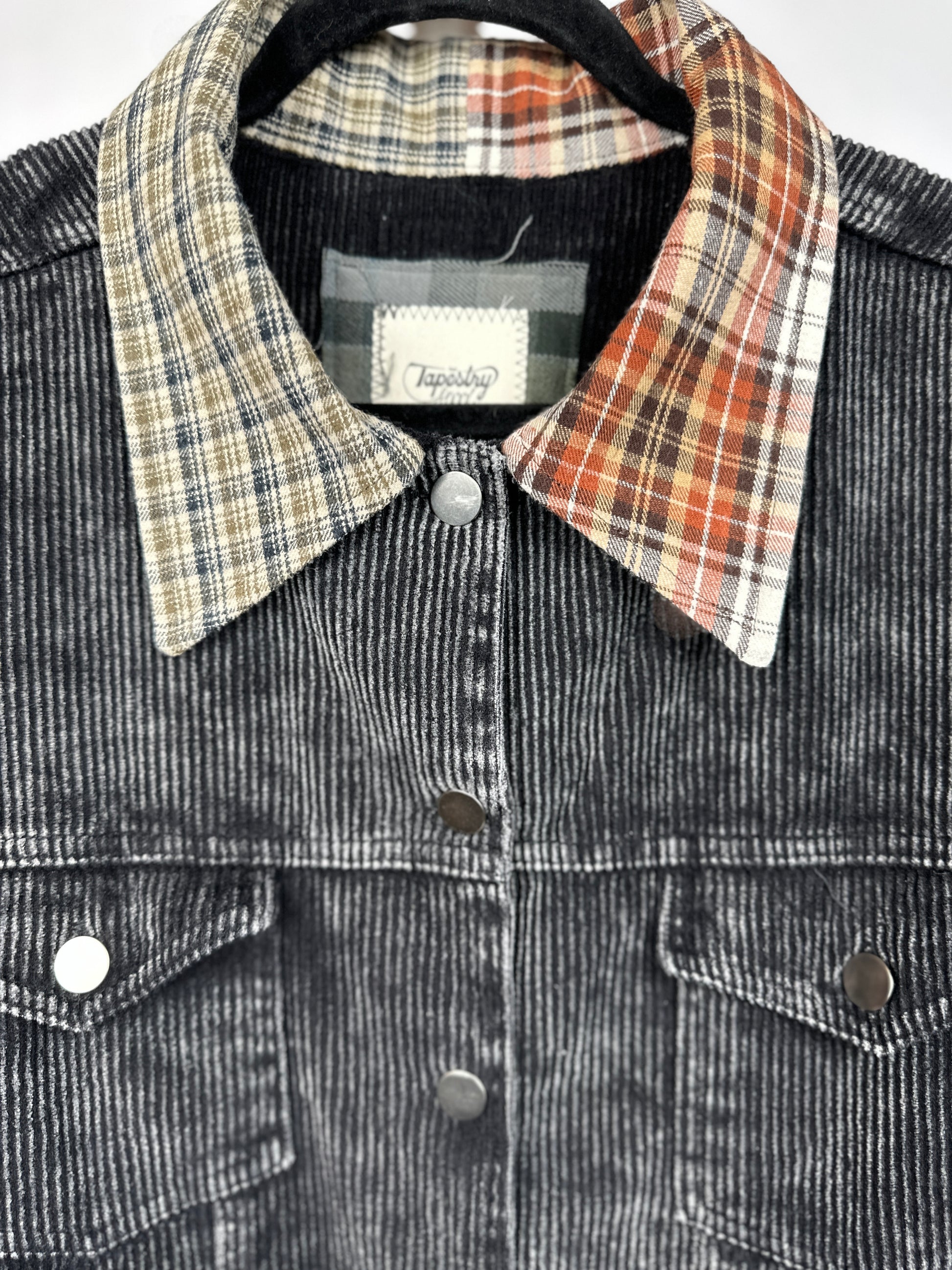 The Owen jacket: eco-friendly, uber cozy, and perfectly slouchy. Made from upcycled corduroy and adorned with a playful twist of contrasting plaid flannels on the collar and sleeves. Who says sustainable fashion can't also be stylish?