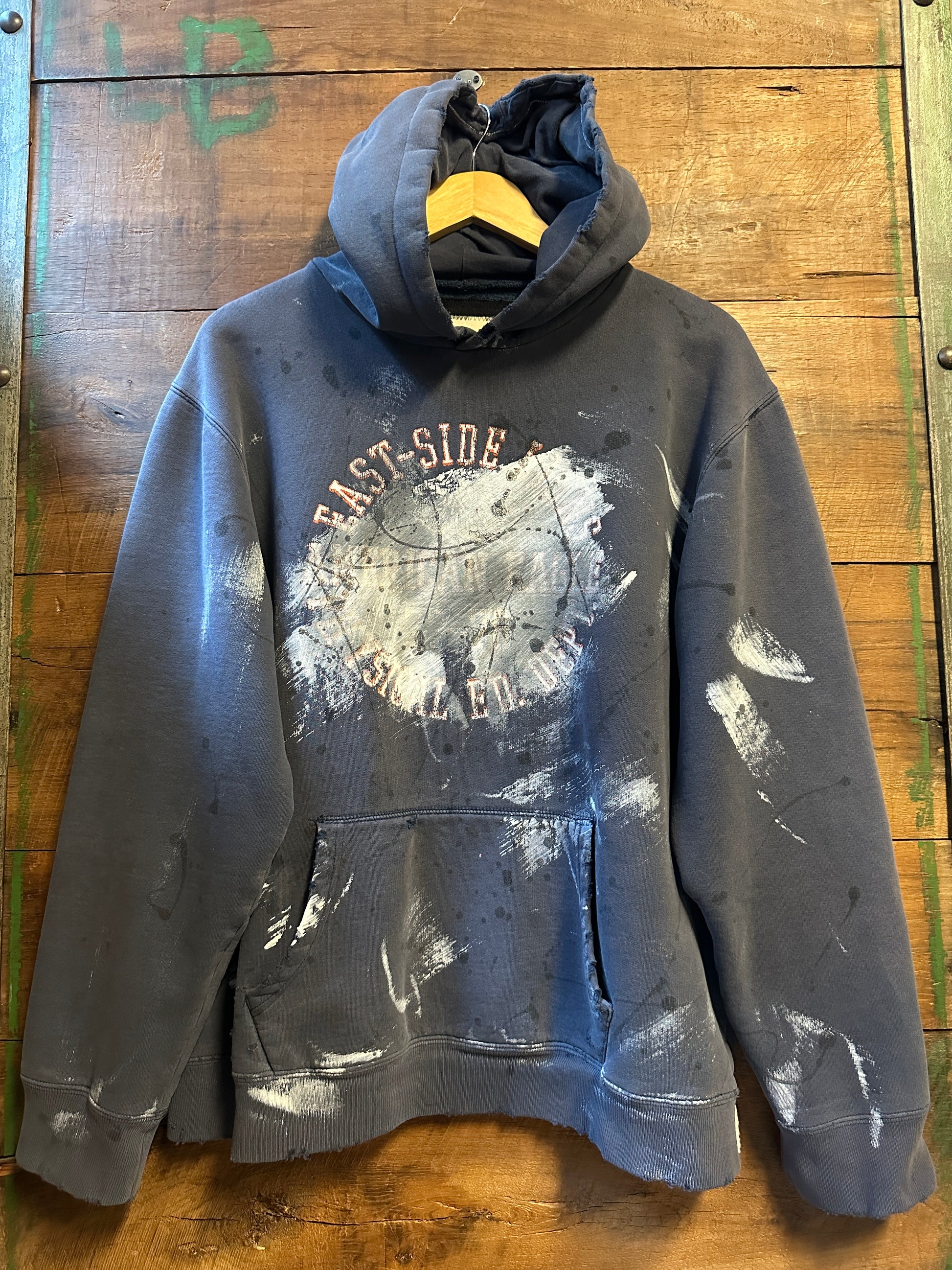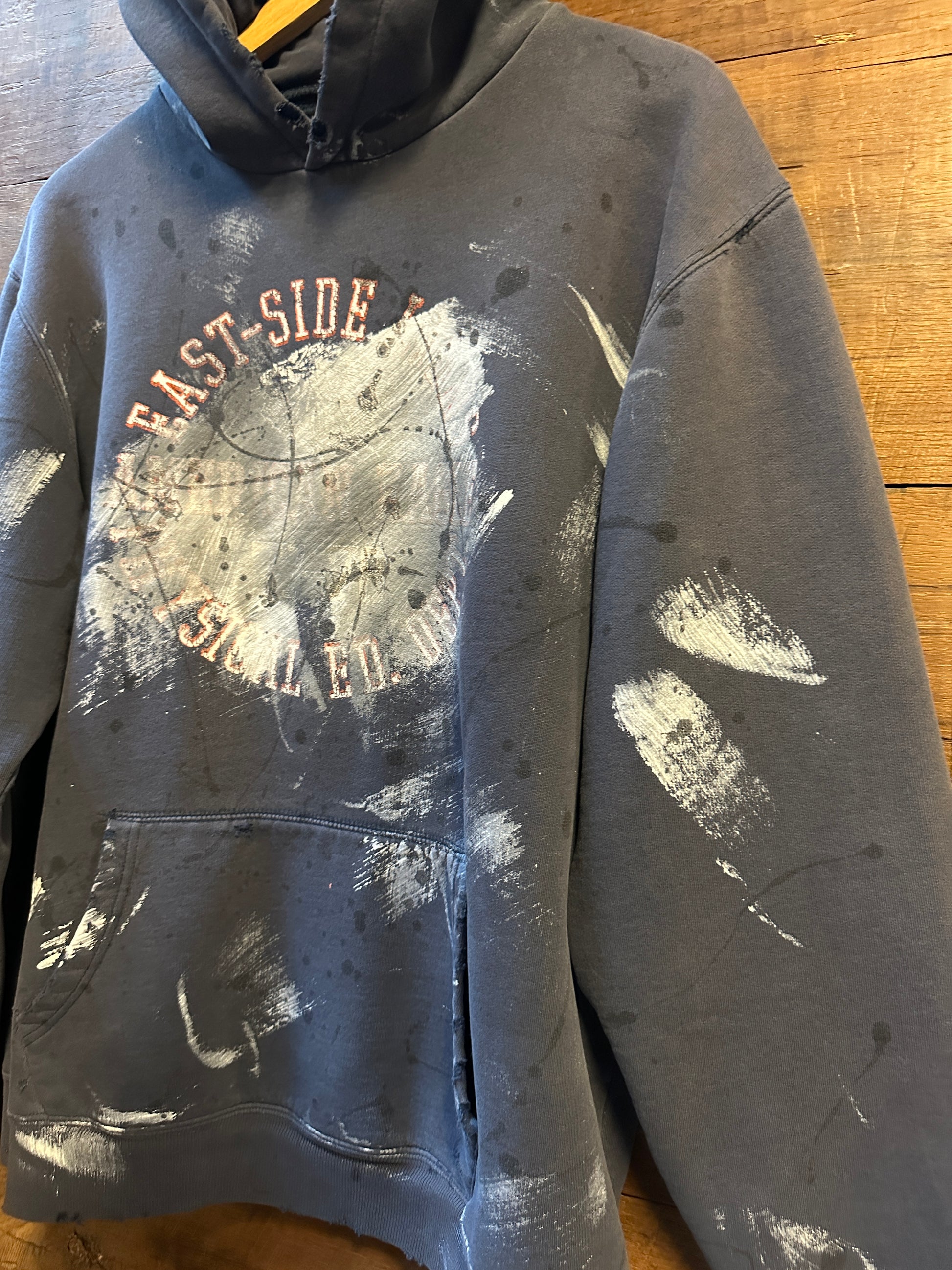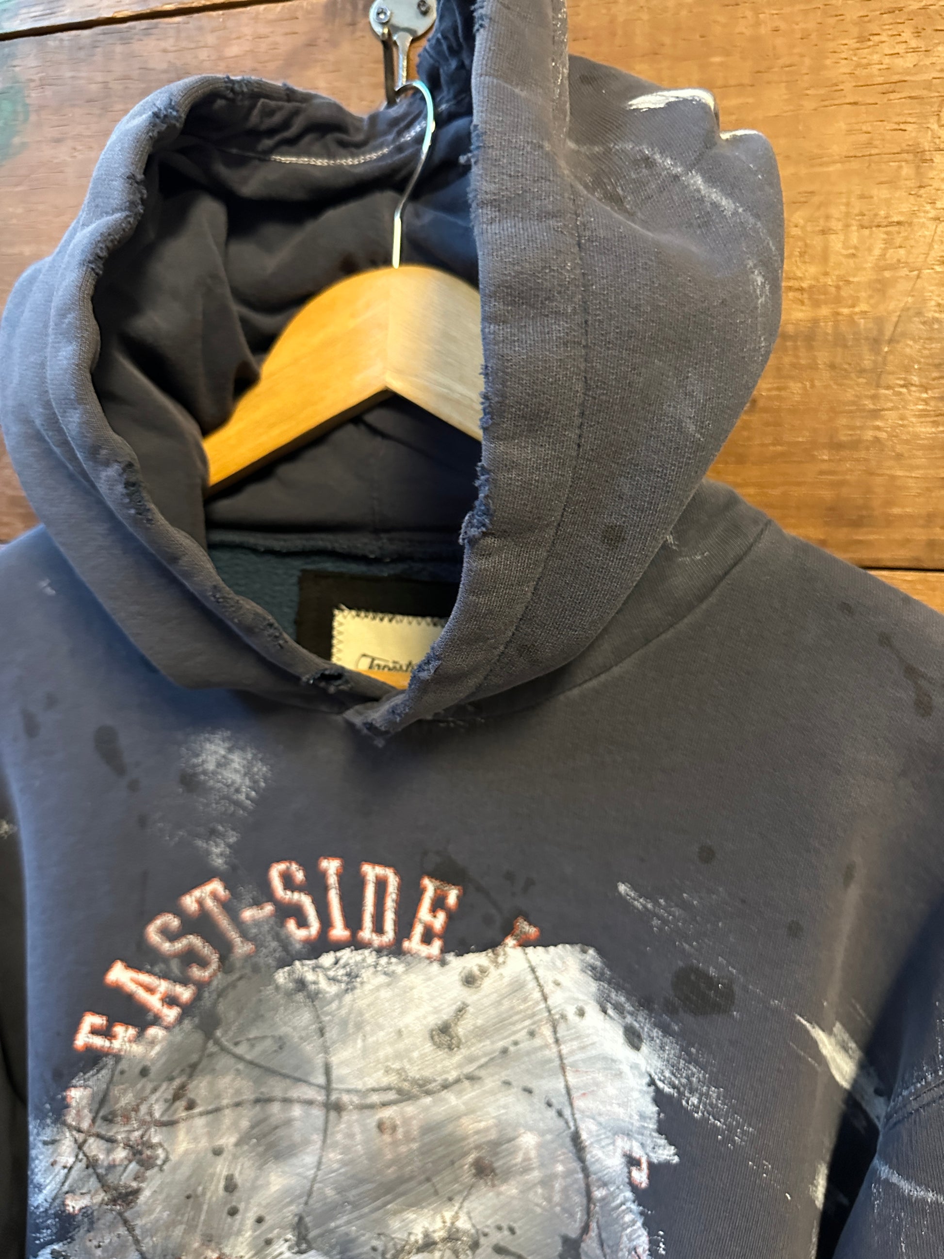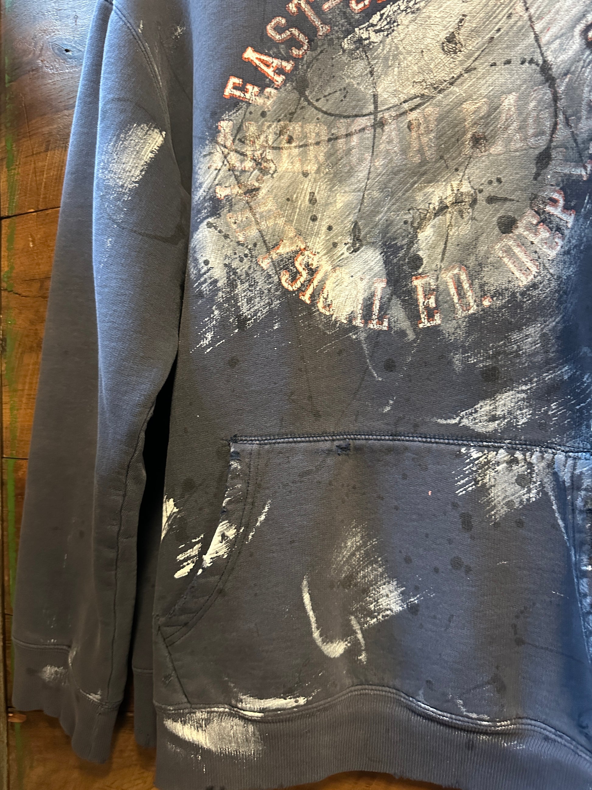 Step into a world where retro meets rebellion with this upcycled vintage hoodie. Featuring a fun oversized fit, distressed details, and unique splatter painting throughout, this piece tells its own story. Perfect for cozy days and creative vibes, this hoodie adds an artistic edge to your casual wardrobe. Embrace comfort and individuality in one splashy look!