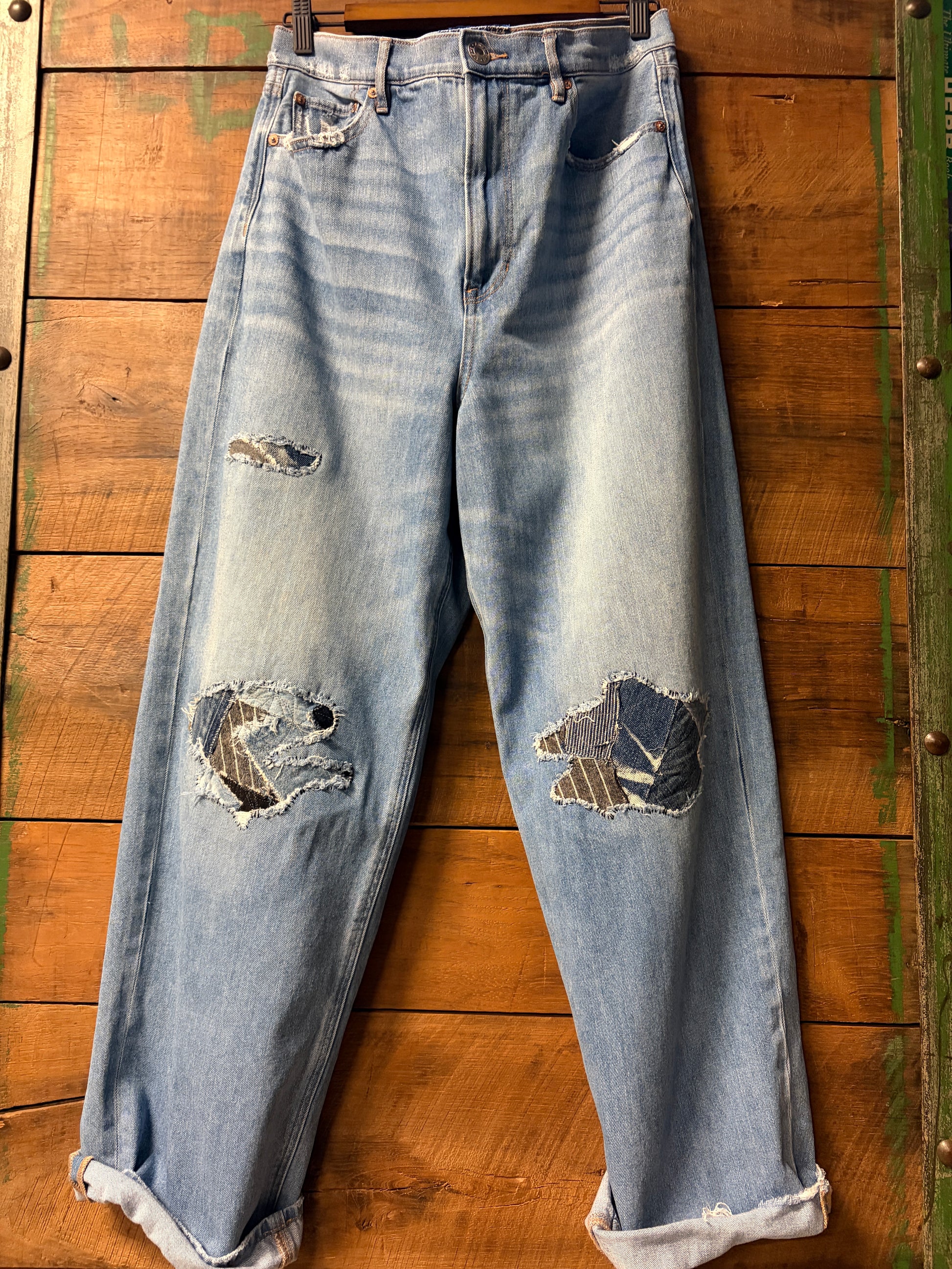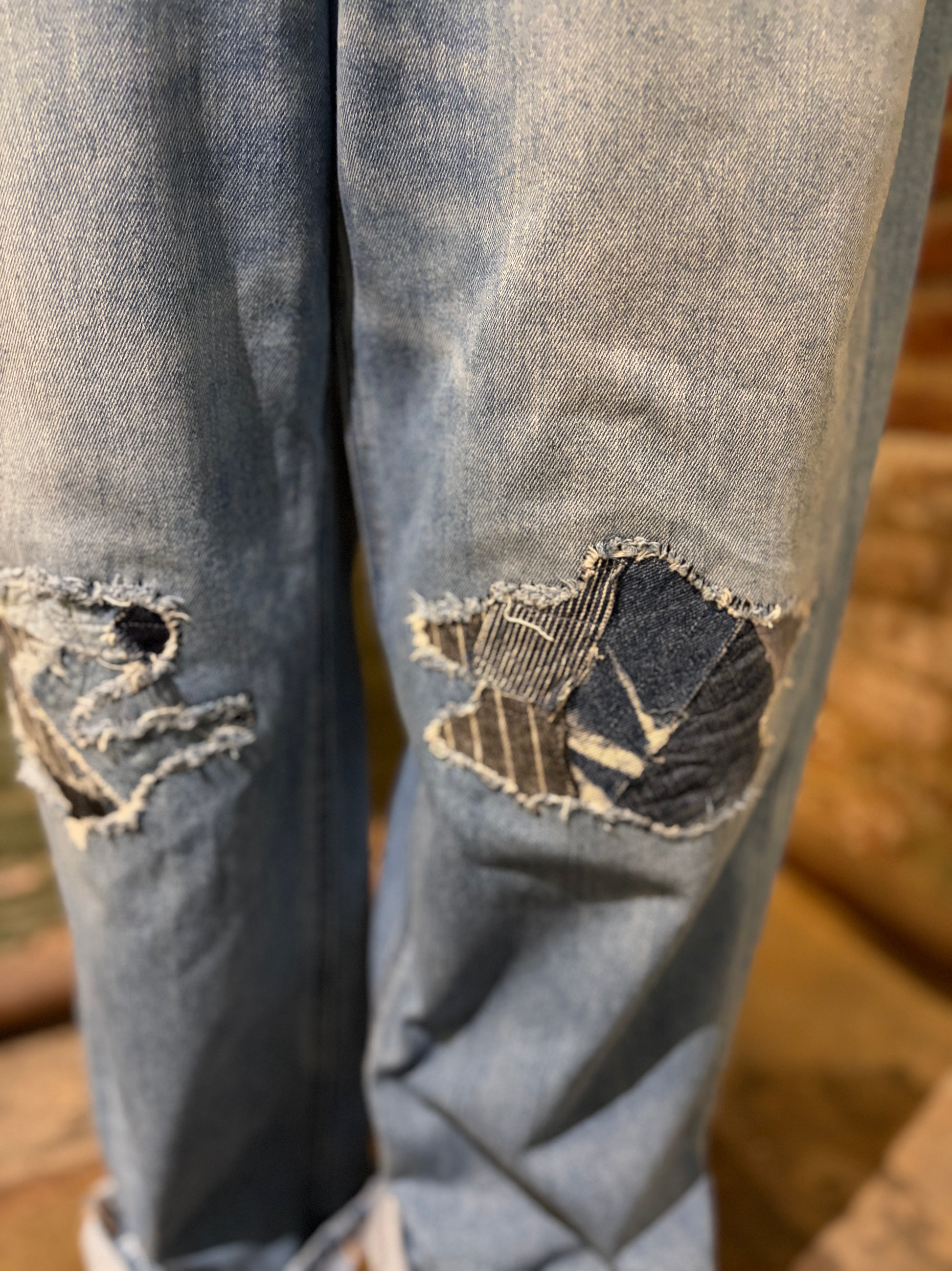 Meet The Penny, your new favorite thrifted-with-a-twist denim. These upcycled baggy jeans feature a flattering high waist, distressed hem, and perfectly worn pockets that tell a story. The real magic? Hand-embroidered patches crafted from reclaimed denim scraps adorning the front, making each pair completely one-of-a-kind. Sustainable style that actually looks cool.