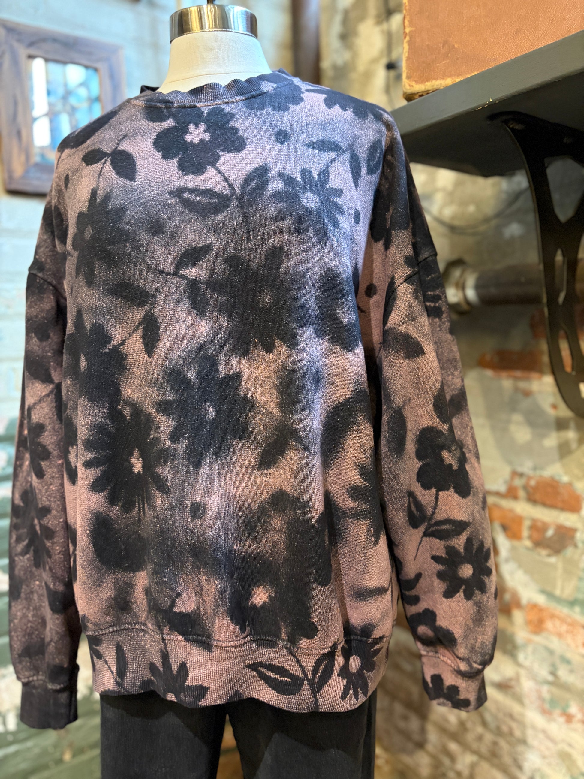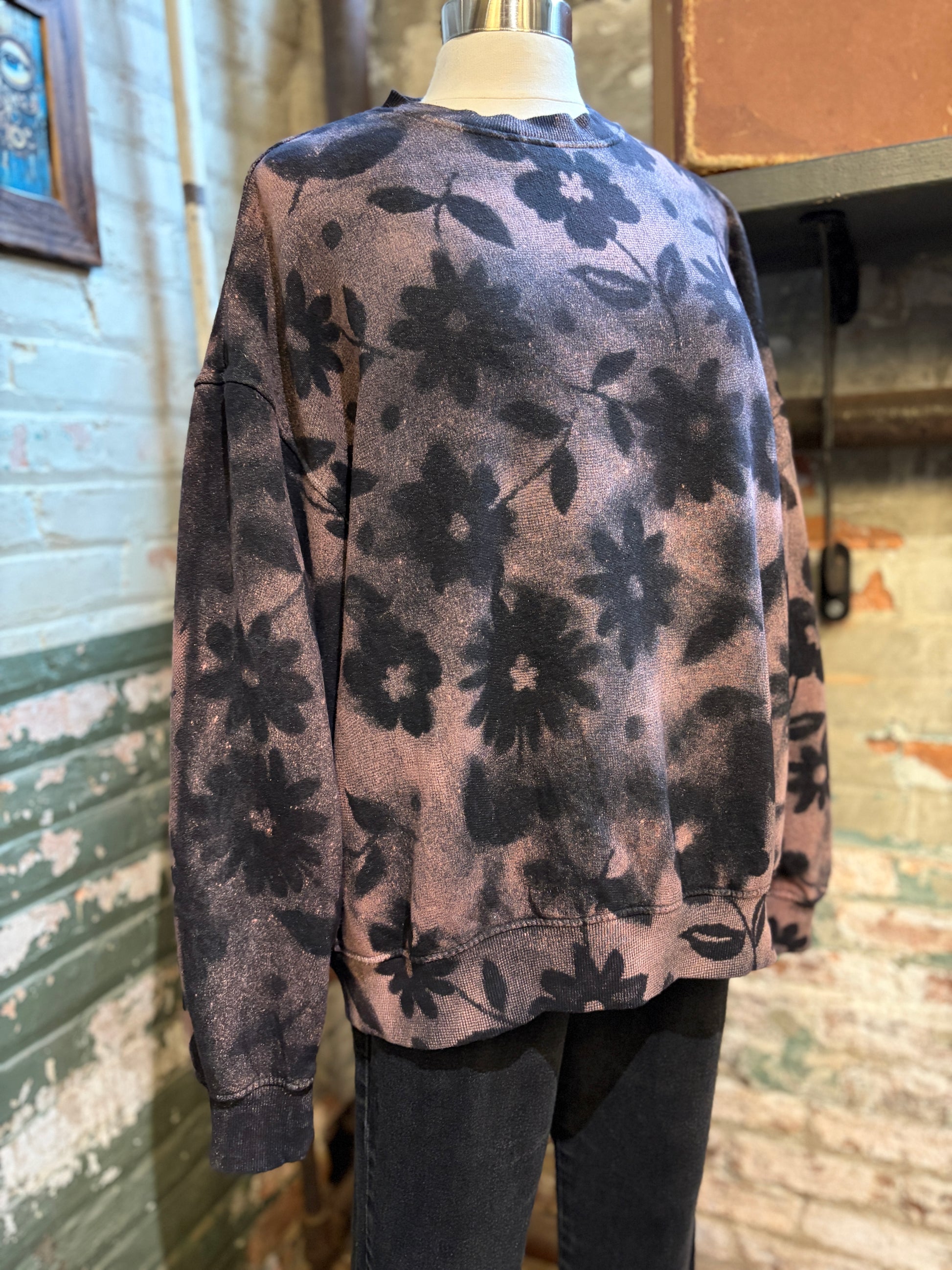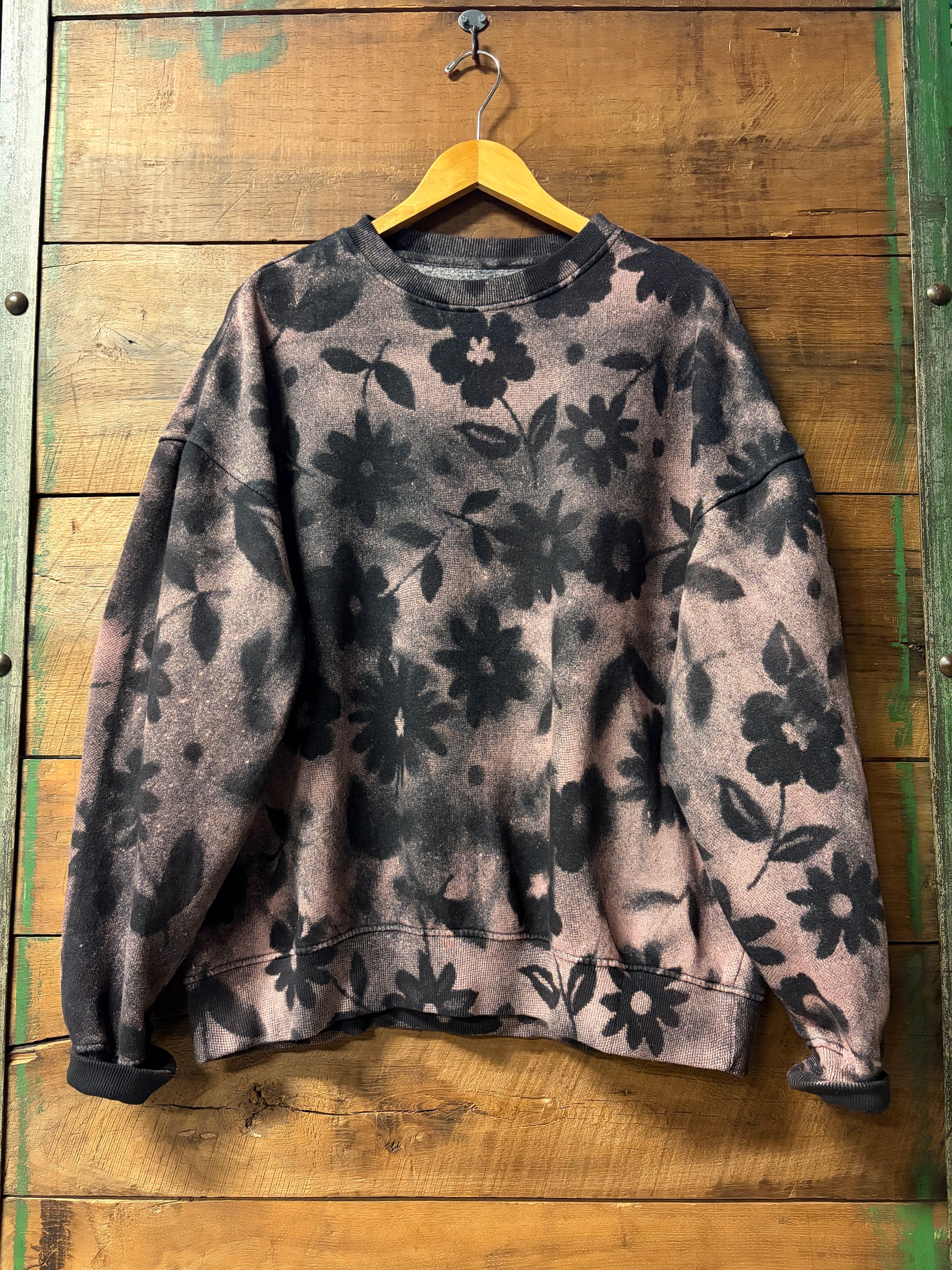 Wrap yourself in vintage vibes with The Petal, an oversized crewneck sweatshirt that's as kind to the planet as it is to your comfort. This upcycled beauty features a dreamy bleached floral pattern that dances across the entire piece, giving you that effortlessly cool, lived-in aesthetic. Perfect for lazy mornings, coffee runs, or whenever you need a cozy hug; all while giving pre-loved materials a fabulous second life. Sustainability never looked so good.