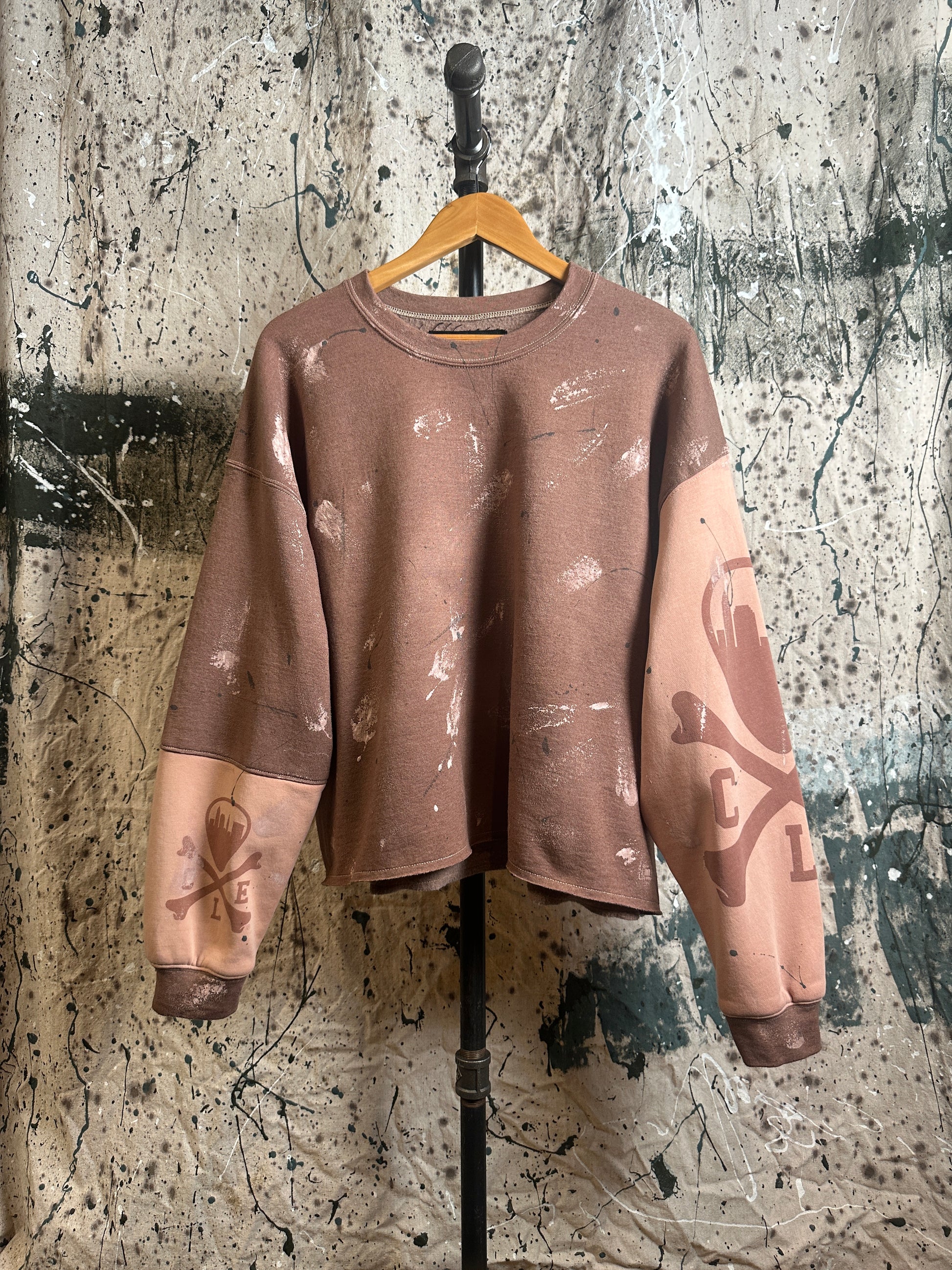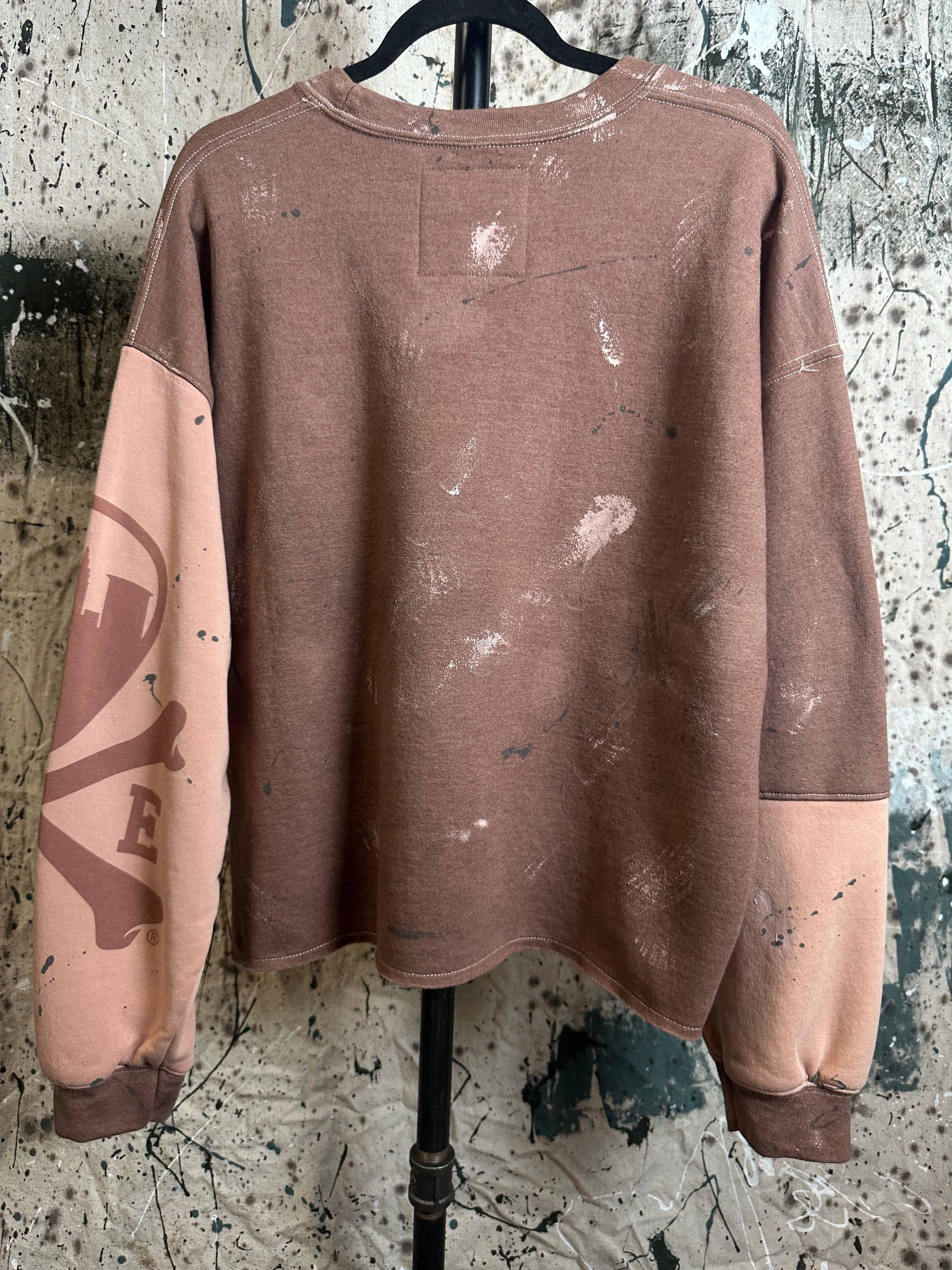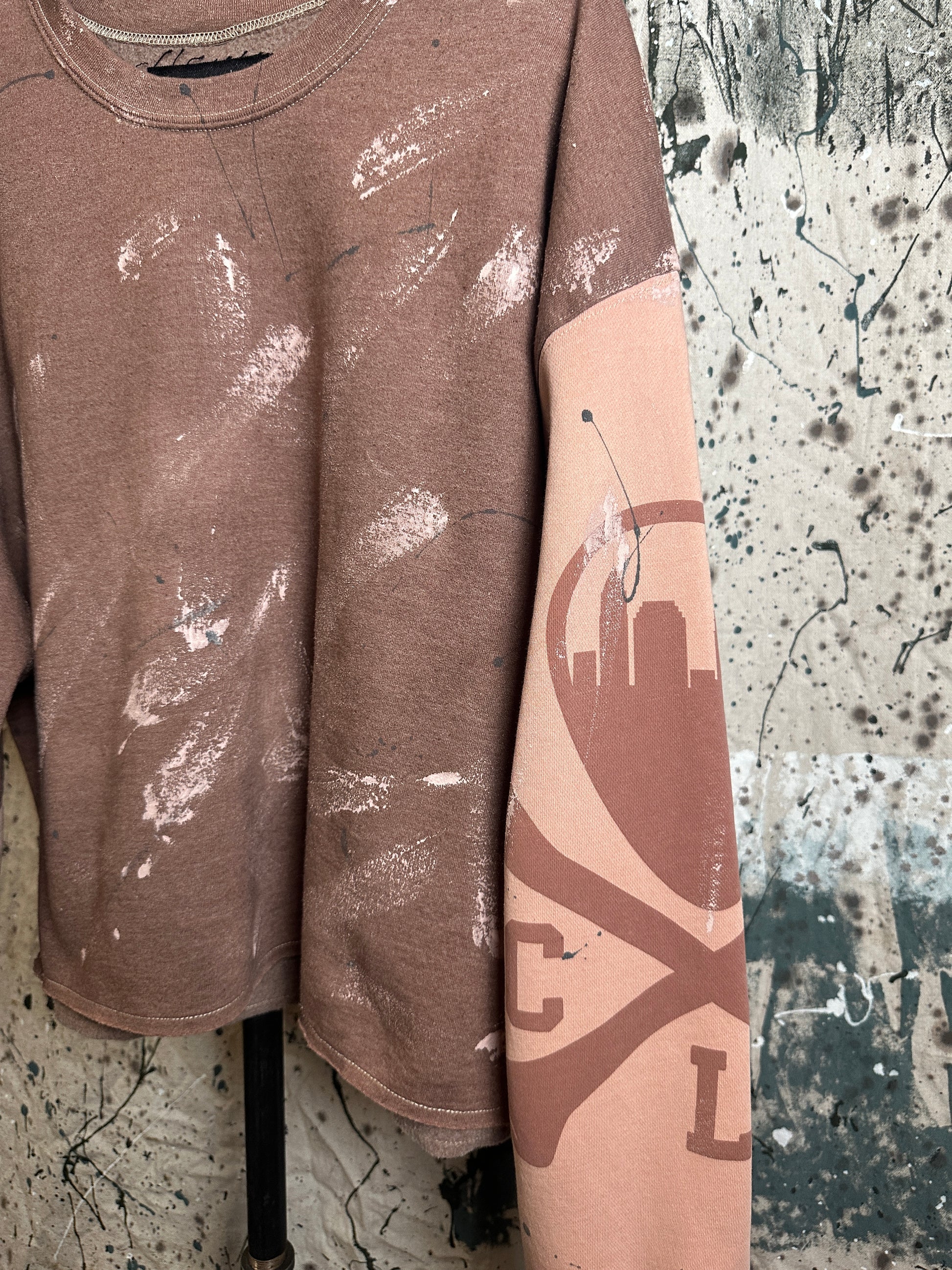The Rusty is an upcycled crewneck sweatshirt bursting with personality. With fun splatter paint details and contrasting sleeves featuring CLE logos, its loose fit invites cozy comfort with a splash of bold style. Perfect for adding a playful, one-of-a-kind twist to your casual wardrobe.