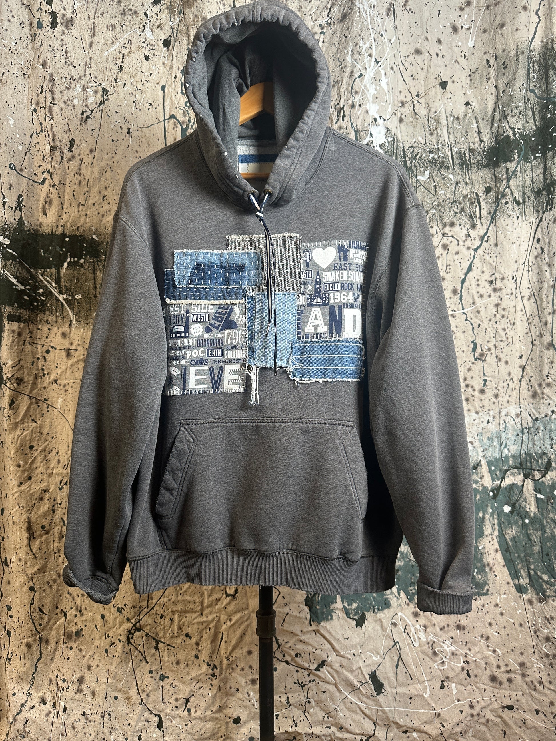 The Stitch is an upcycled hoodie with a relaxed fit crafted for effortless cool. Featuring subtle distressing and playful sashiko stitching, it’s accented with bold CLE logo and denim patches on the front for a unique, handcrafted vibe that’s ready to keep you cozy in style.