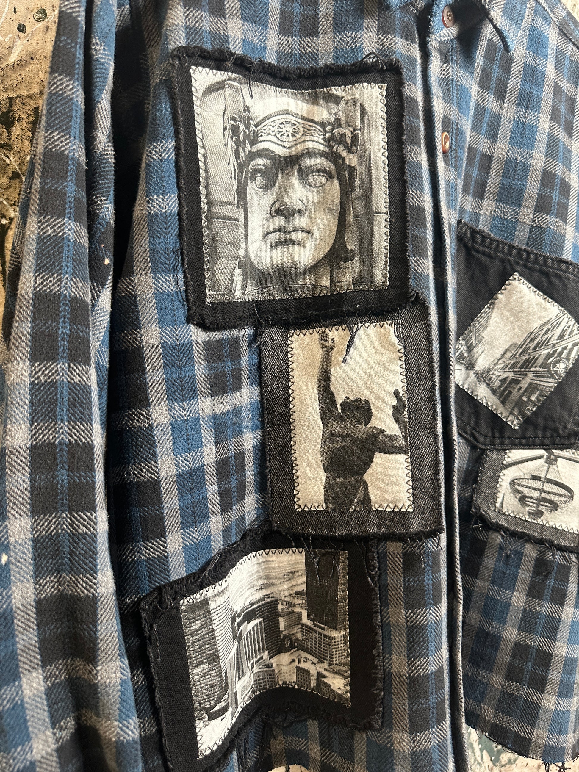 The Vault is an upcycled heavyweight flannel shirt that’s all about comfort. With a loose fit and a distressed hemline, it brings laid-back vibes, while CLE City patches stitched on the front add a fun, personalized touch to your everyday look.