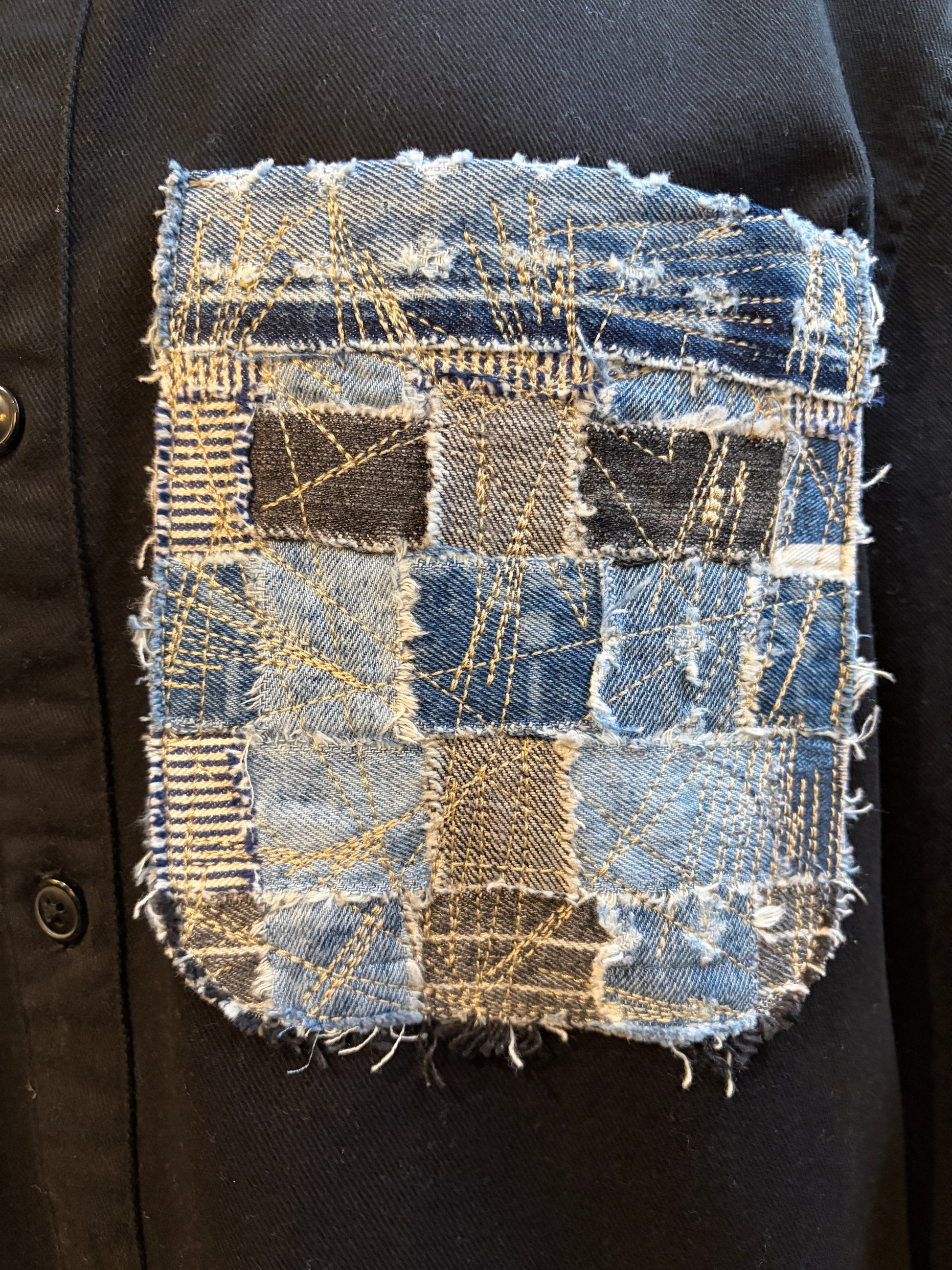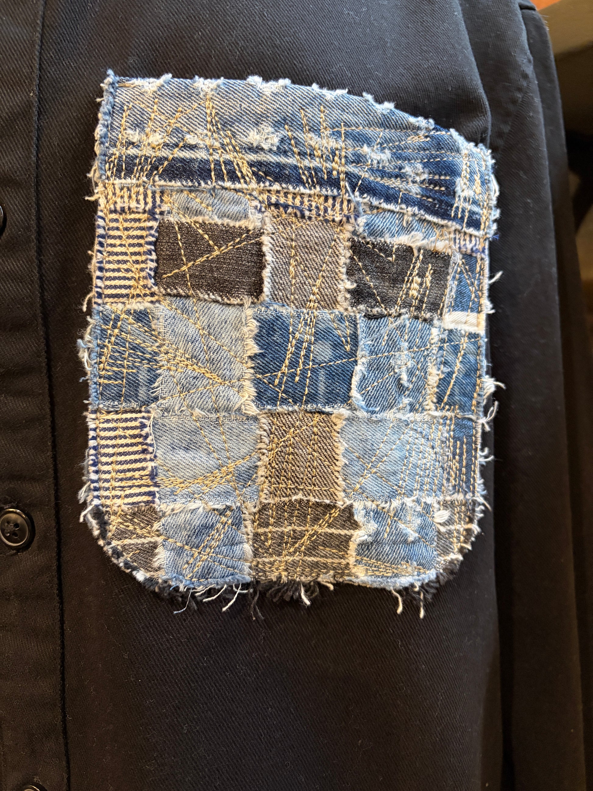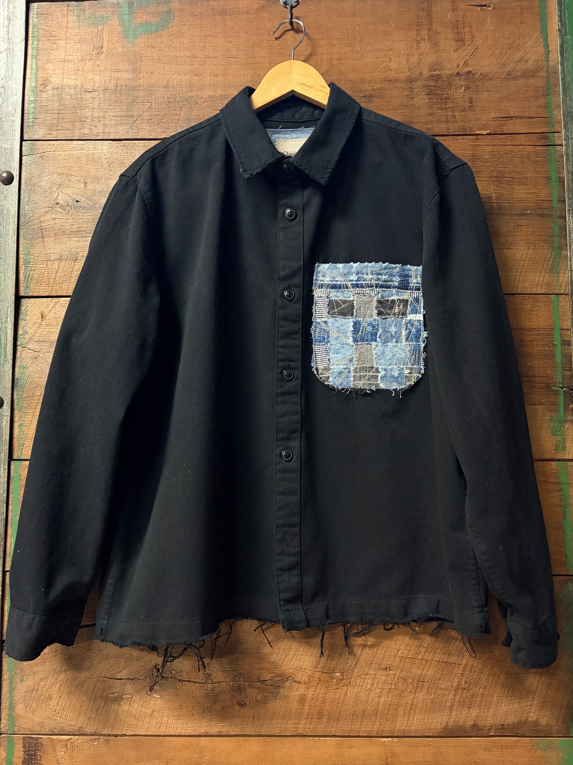 Meet The Weaver, a one-of-a-kind heavyweight woven shirt that celebrates imperfection. Crafted from upcycled materials with intentional distressing and raw hemlines, this oversized beauty features a standout front pocket pieced together from denim scraps in a patchwork weave. It's the kind of piece that tells a story with every thread, perfect for anyone who'd rather wear art than follow trends. Sustainably made, endlessly cool.