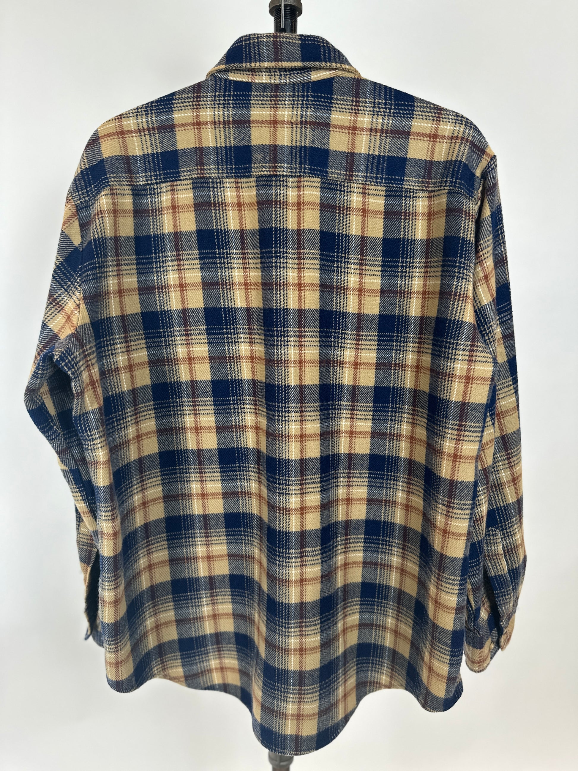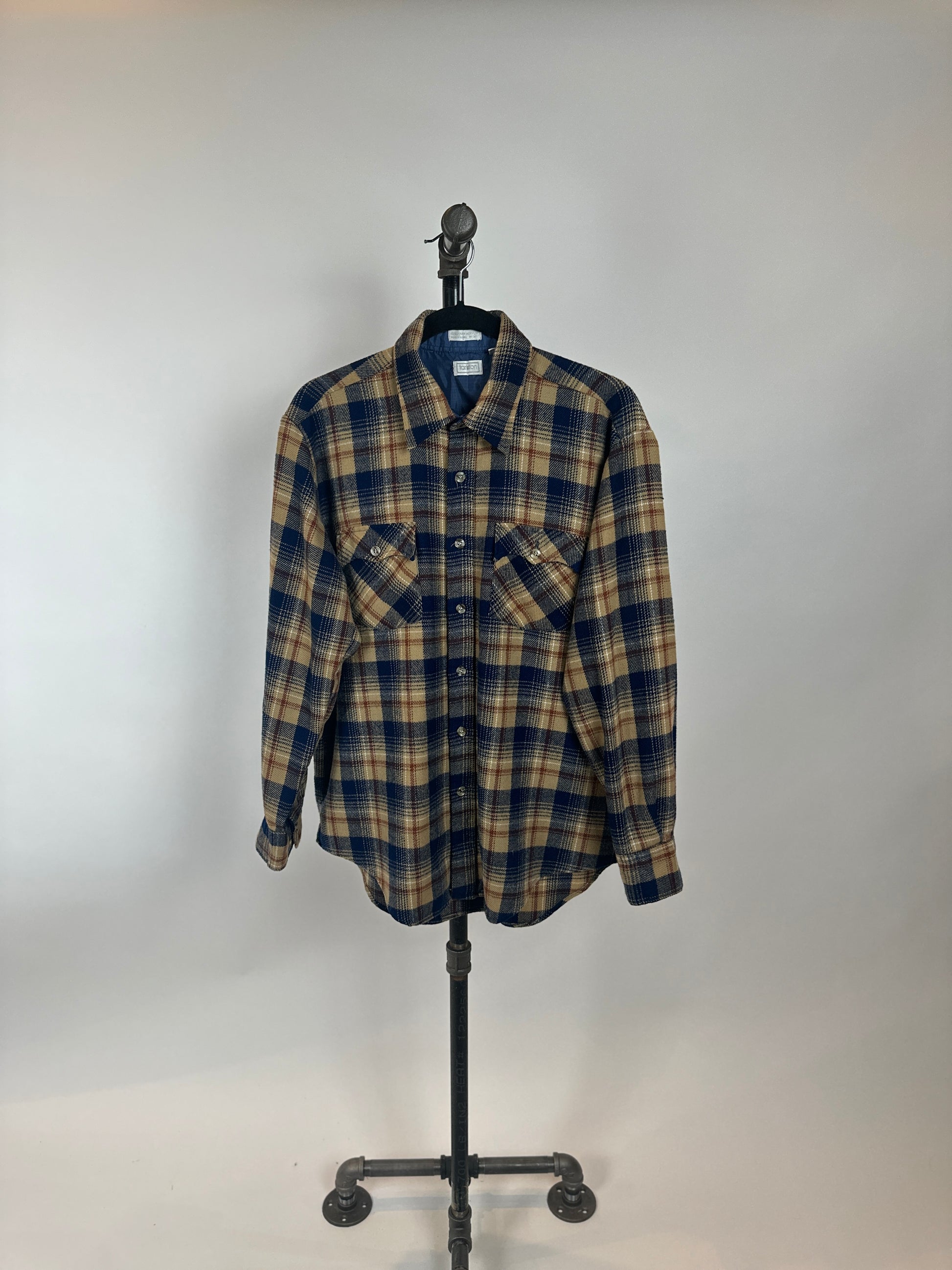 Vintage plaid shirt in 100% virgin acrylic. Feels like wool without the itch! Relaxed fit, 2 front pockets. Excellent condition, great worn in feeling.